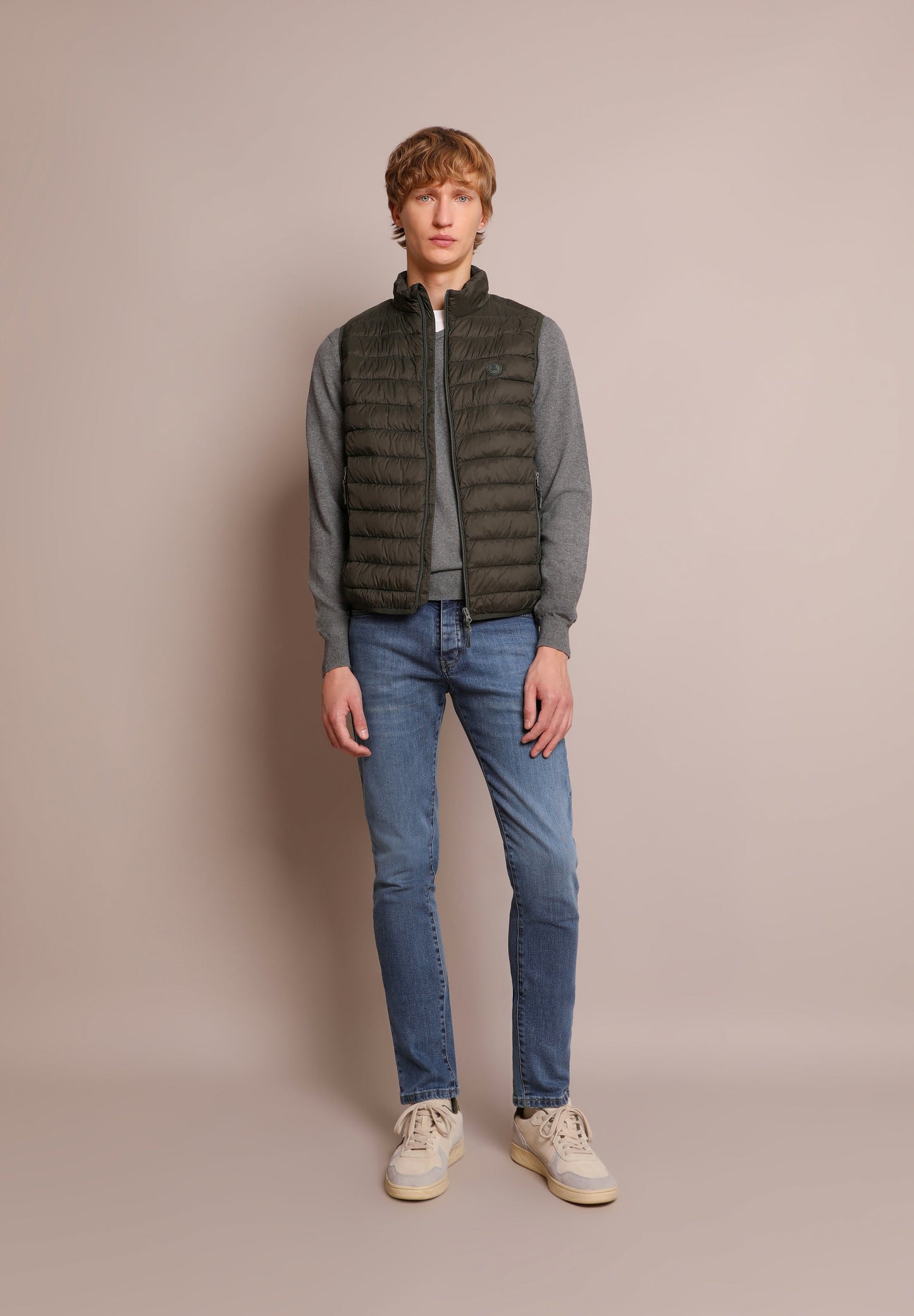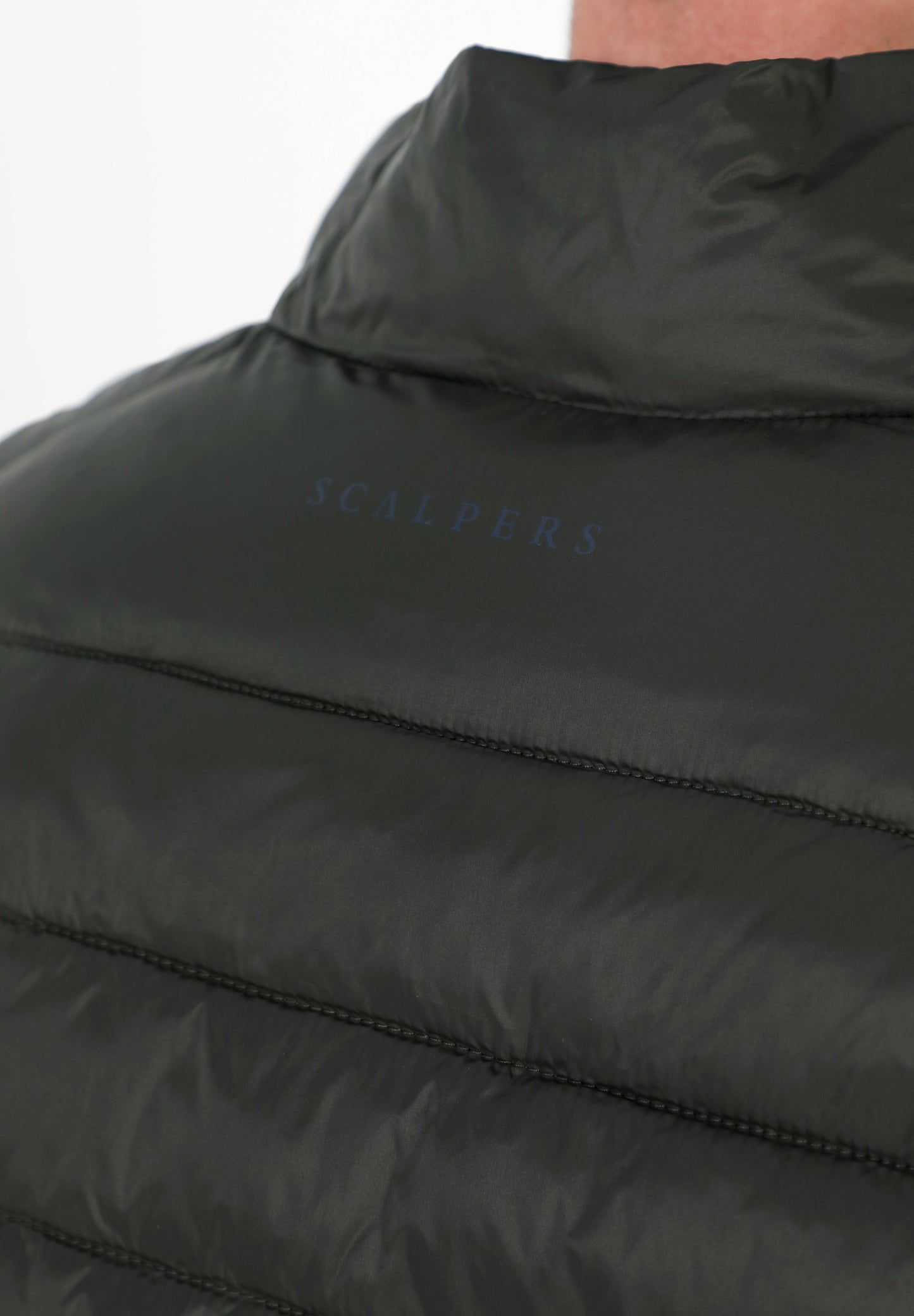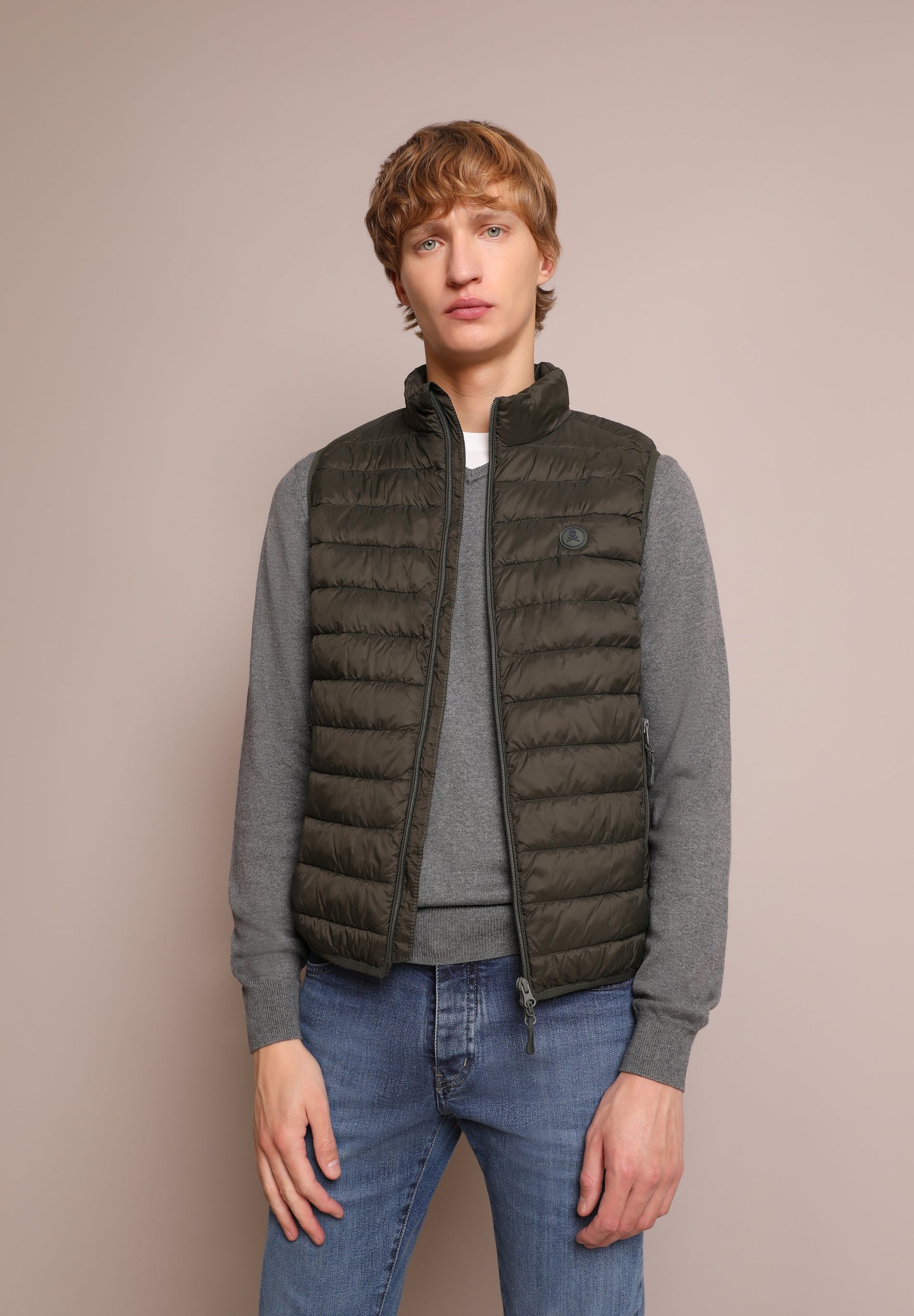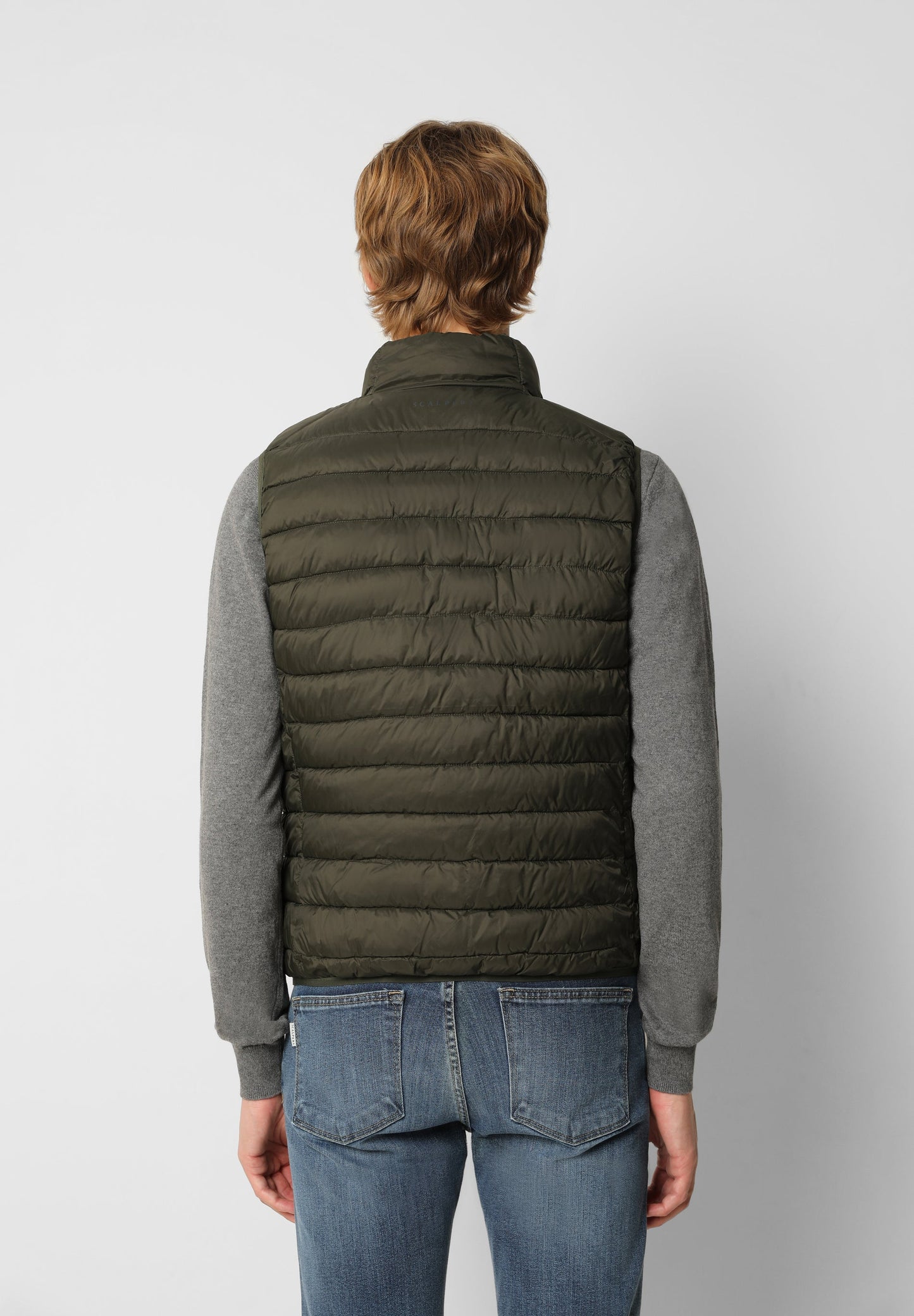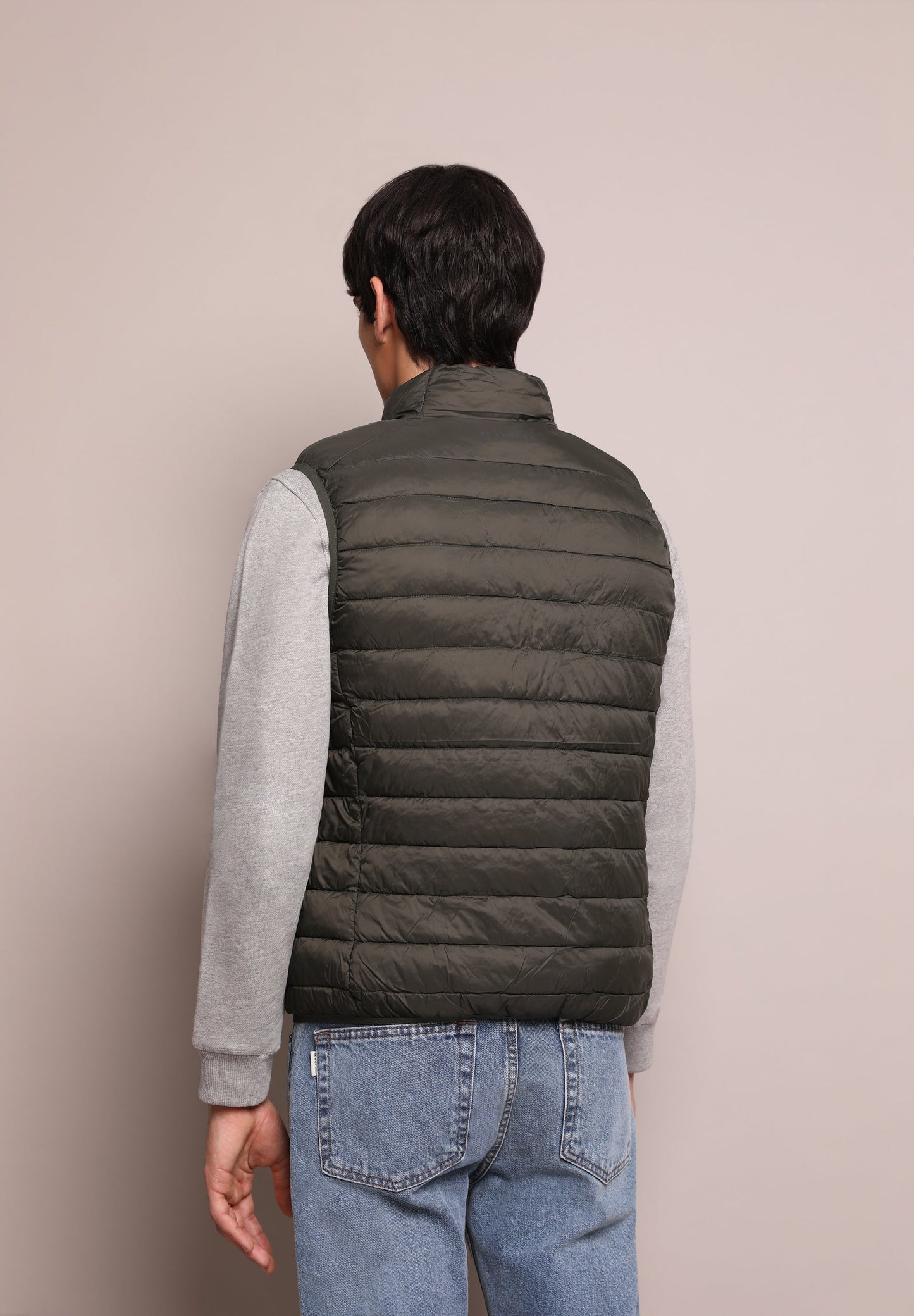 Parka acolchado confeccionado en tejido de nailon y poliéster reciclado water repellent. Corte Slim Fit, cuello subido y cierre con cremallera de doble carro. Sin mangas con sisa elástica. Bolsillos con cremallera y bolsillo interior. Detalle de parche de goma en pecho.