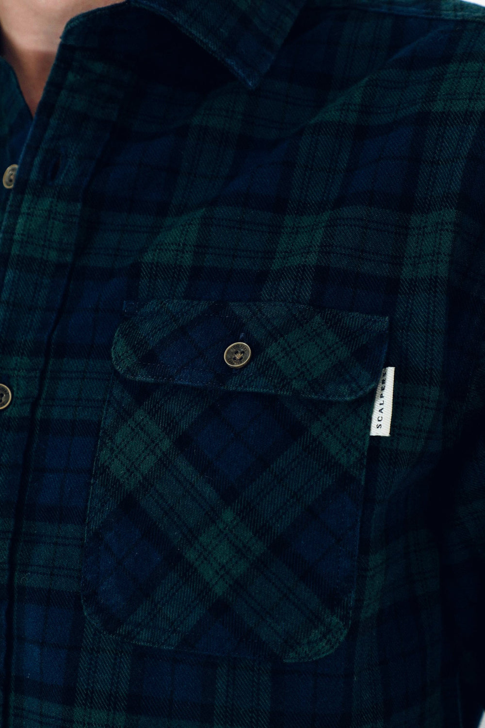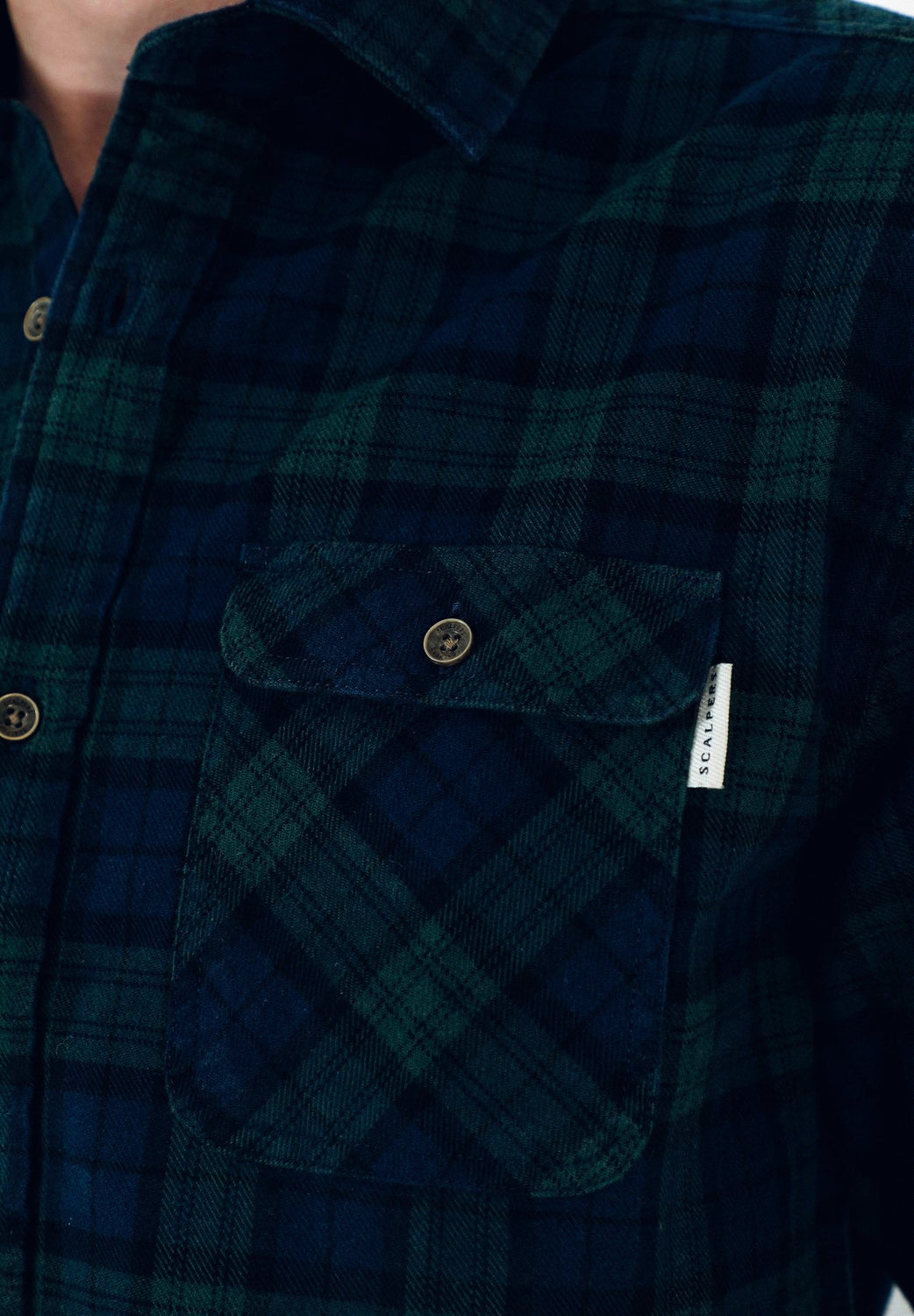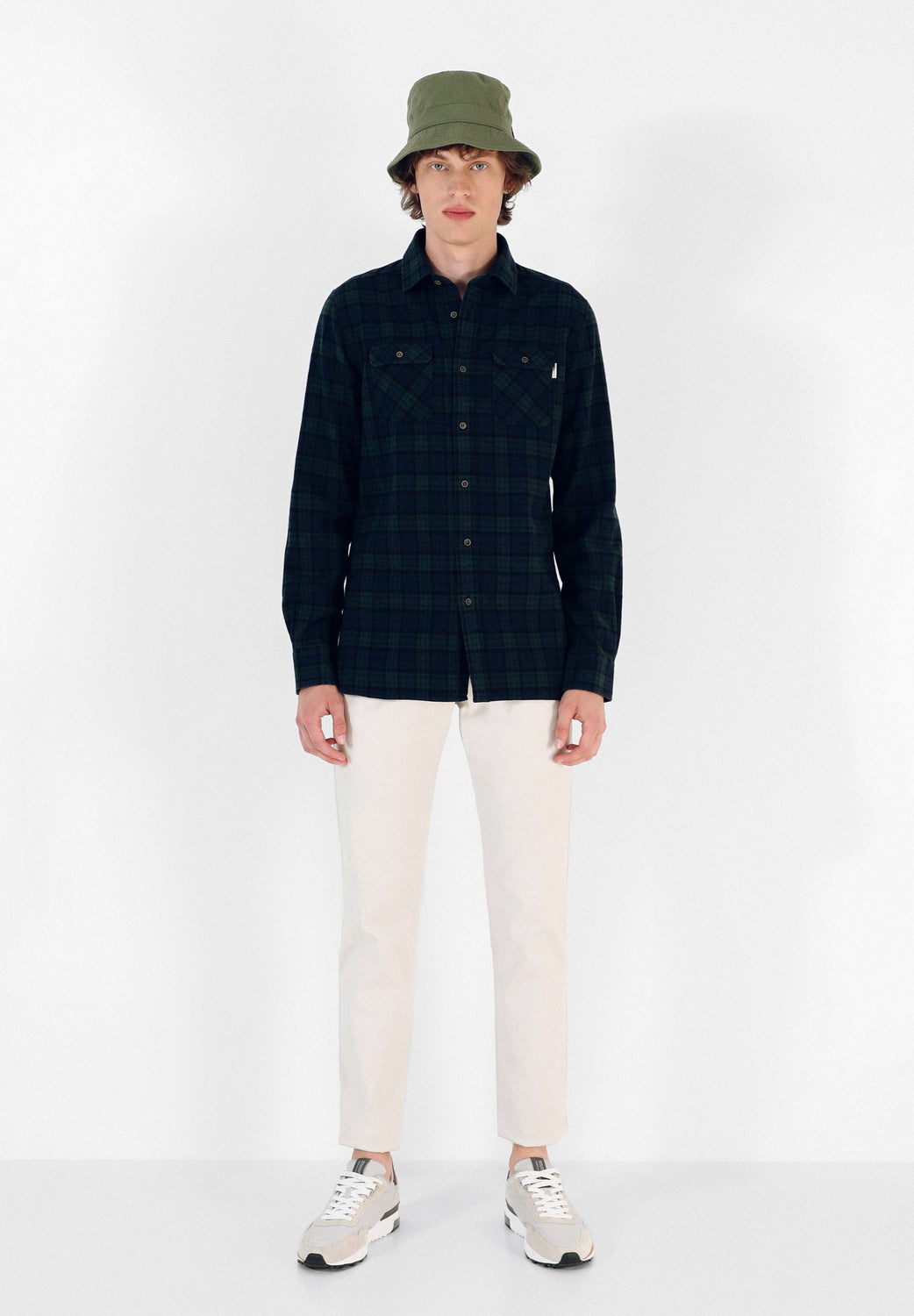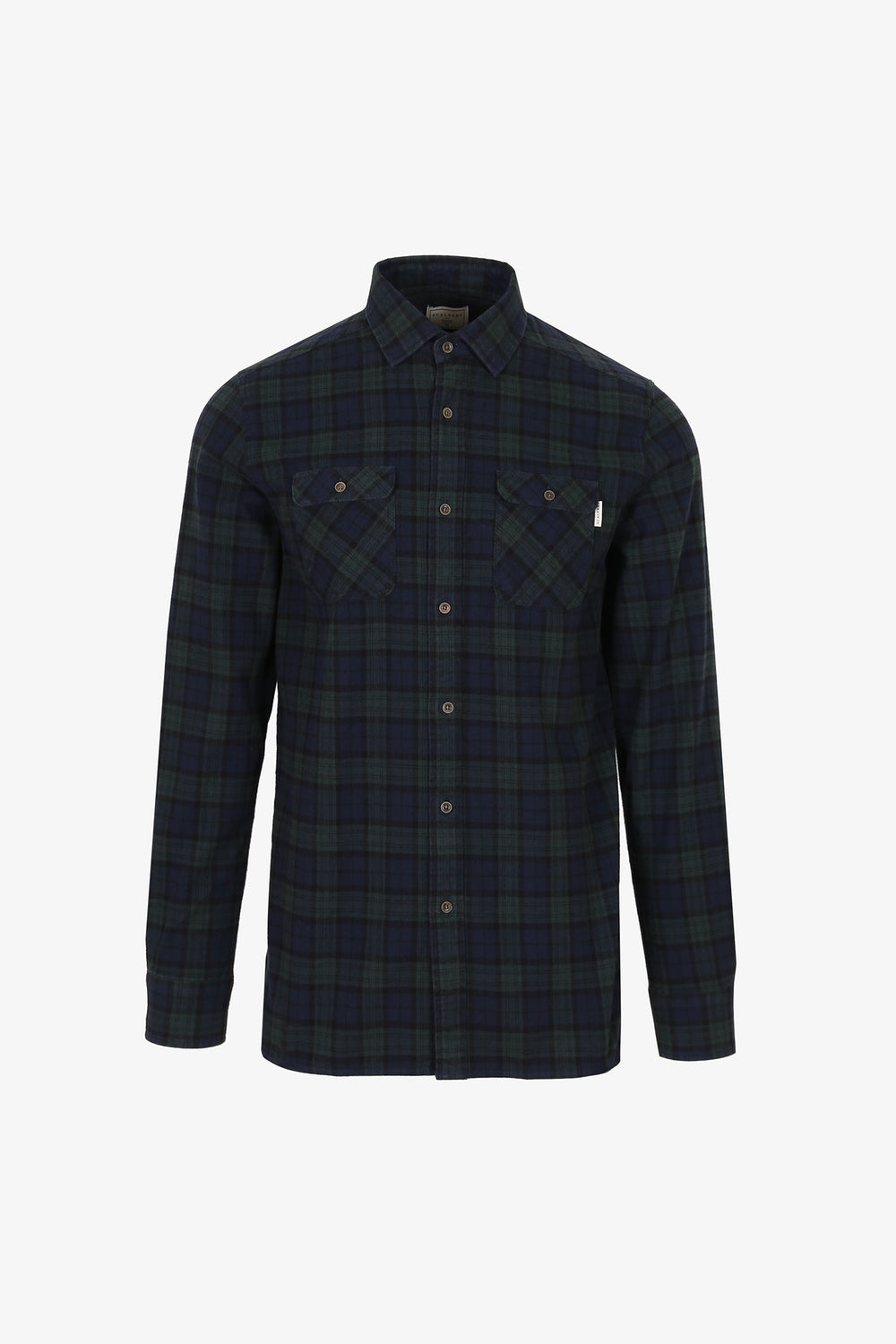 Camisa de cuadros confeccionada en tejido 100% algodón orgánico. Corte Regular Fit, cuello italiano y cierre con botones. Manga larga terminada en puño. Bolsillos de plastrón con tapeta y botón.