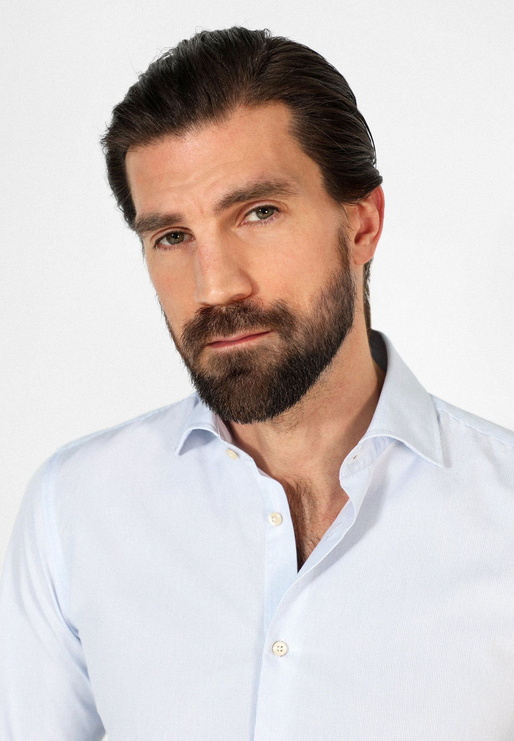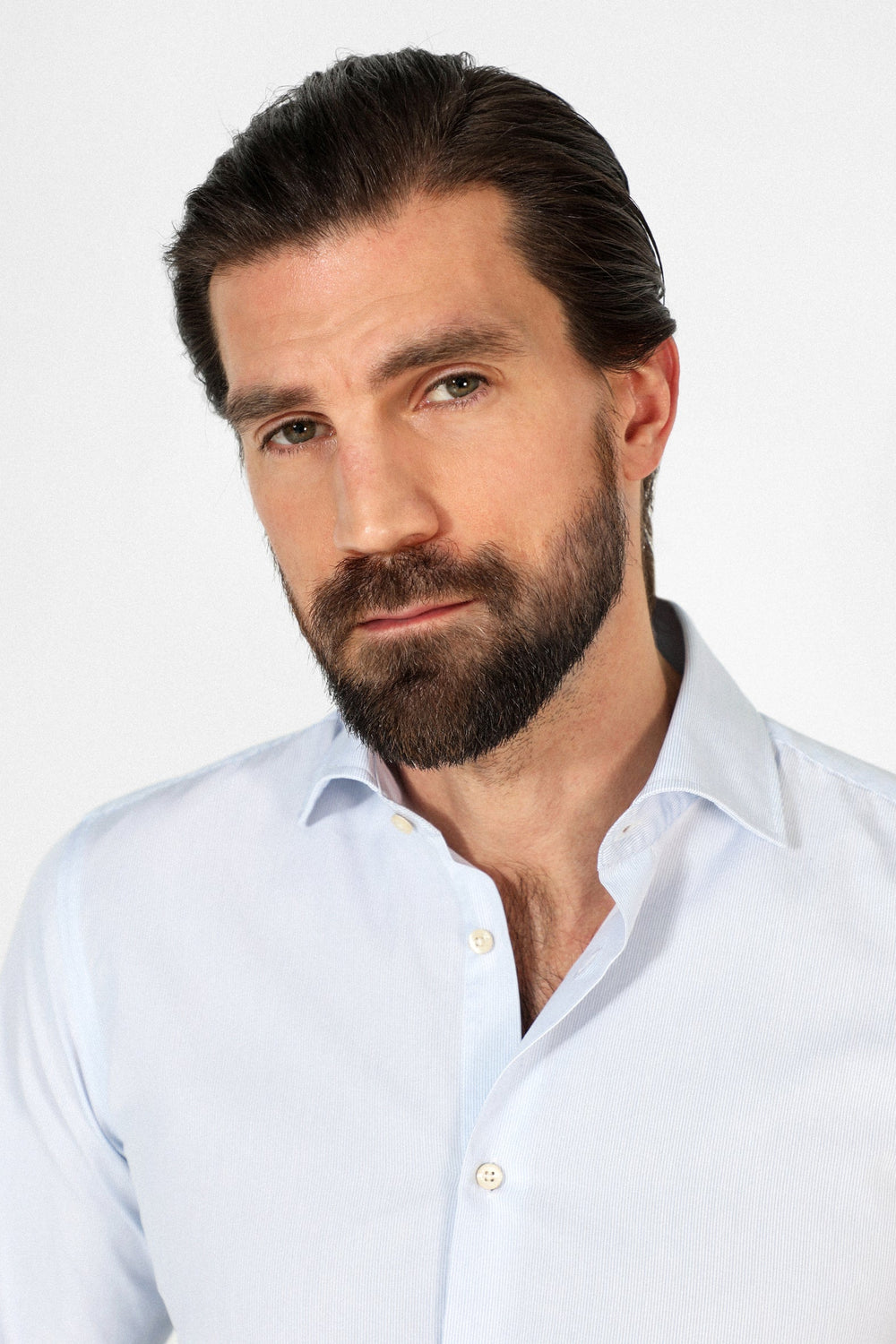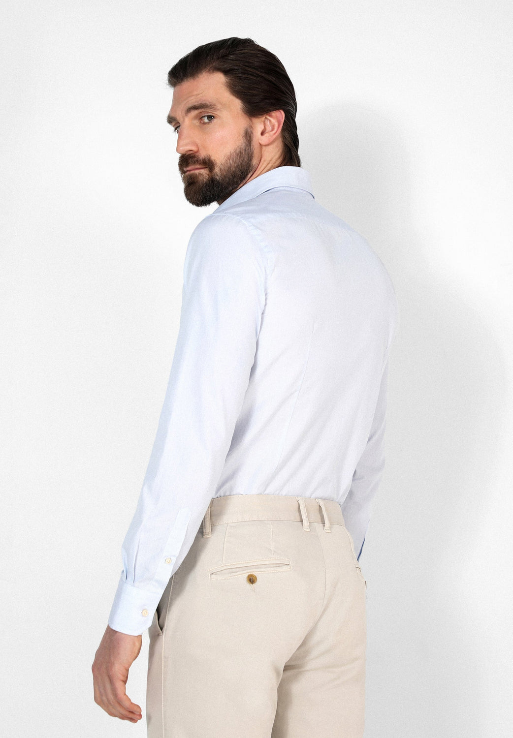 Camisa de vestir confeccionada en tejido 100% algodón. Corte Slim Fit, cuello clásico y cierre con botones. Manga larga terminada en puño con botones.