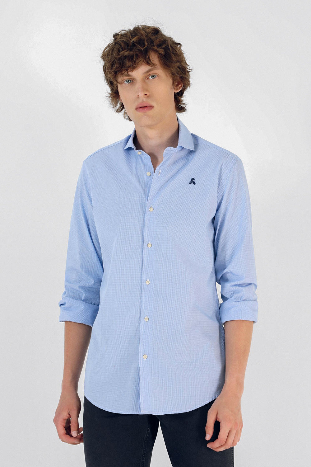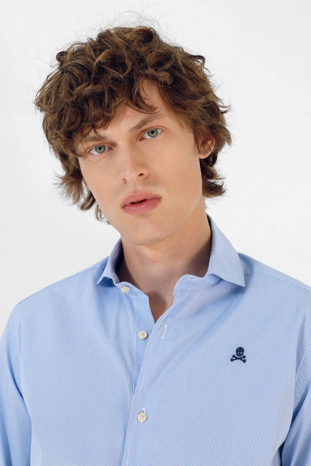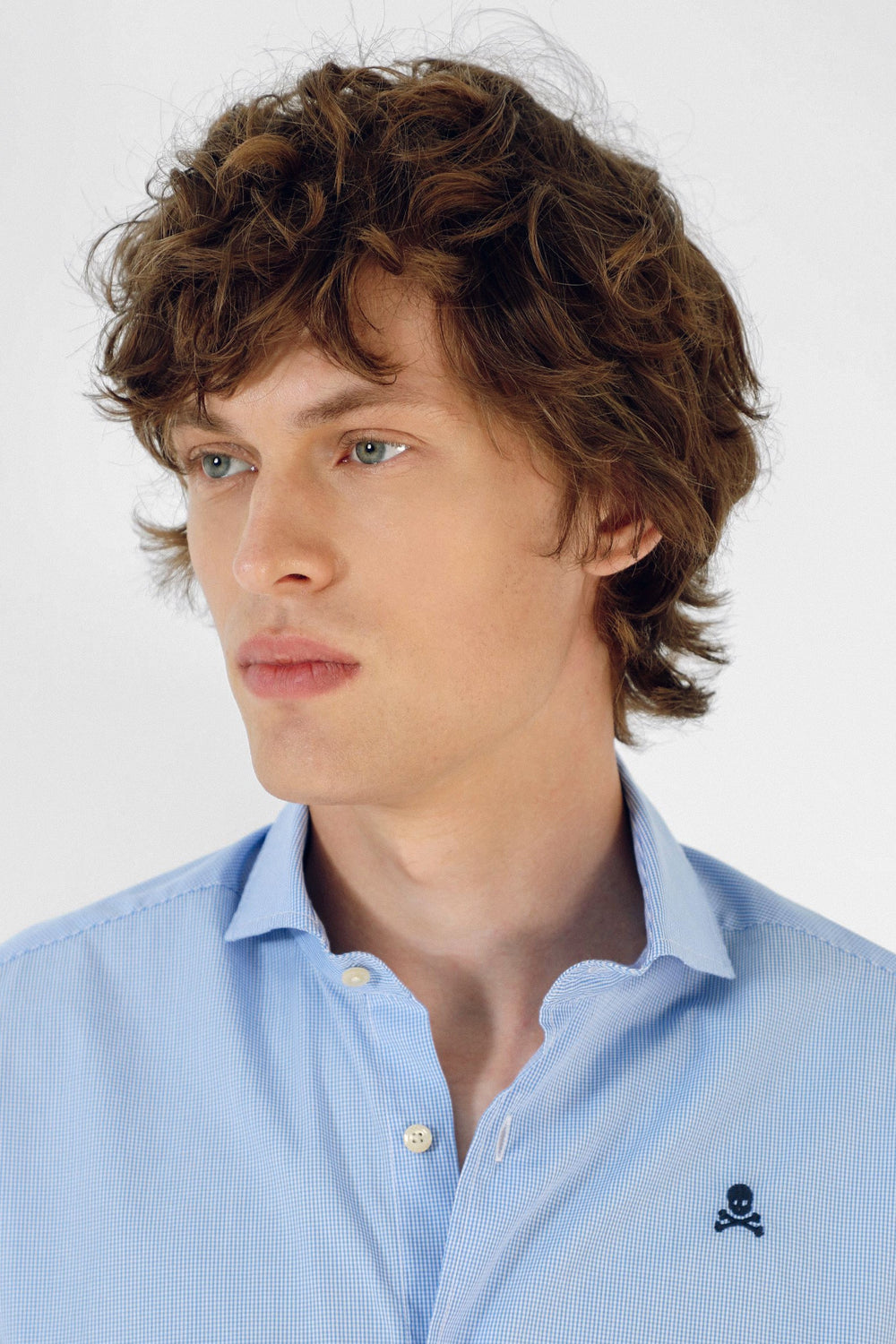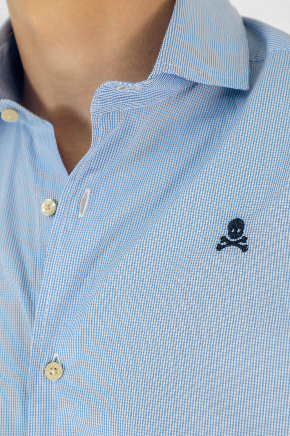 Camisa de cuadros confeccionada en tejido 100% algodón. Corte Regular Fit, cuello cutaway y cierre con botones. Manga larga terminada en puño simple.
