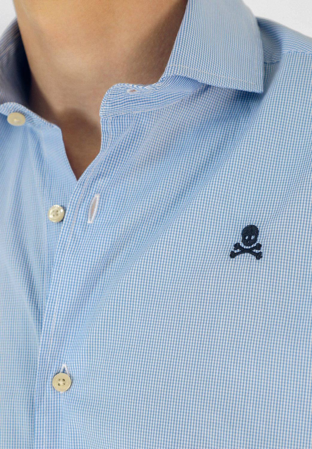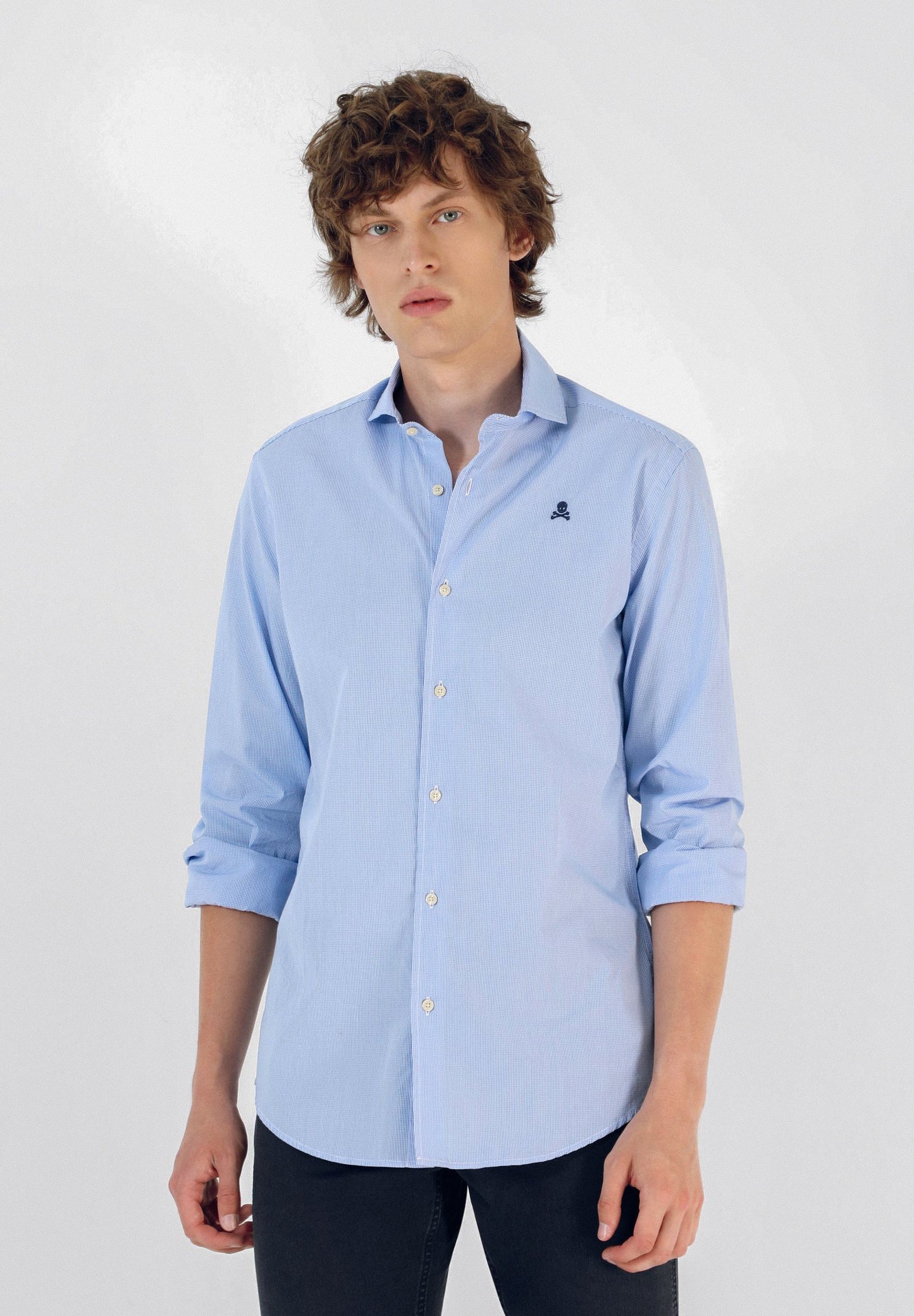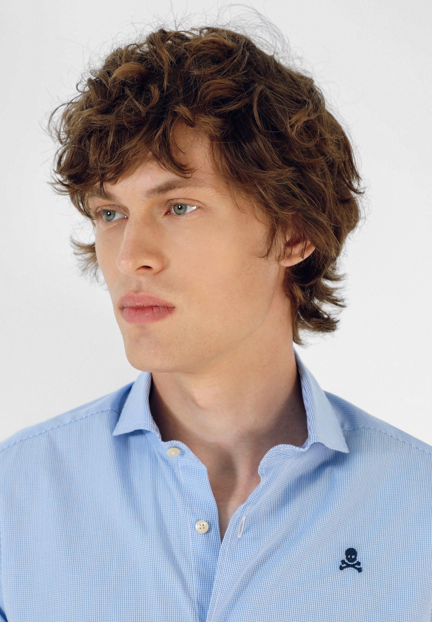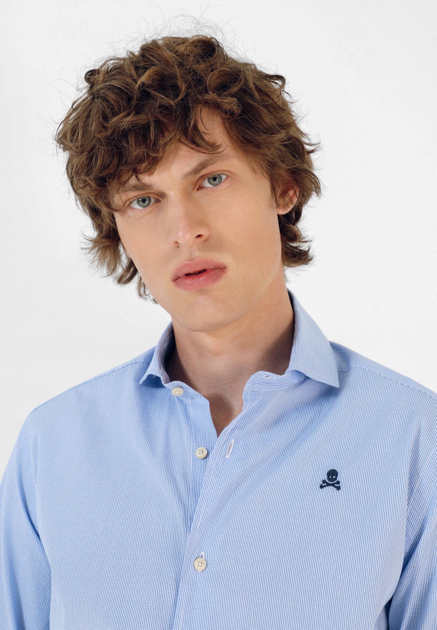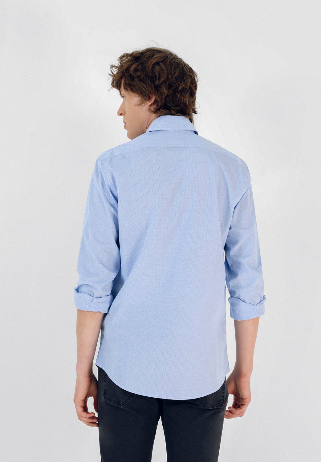 Camisa de cuadros confeccionada en tejido 100% algodón. Corte Regular Fit, cuello cutaway y cierre con botones. Manga larga terminada en puño simple.