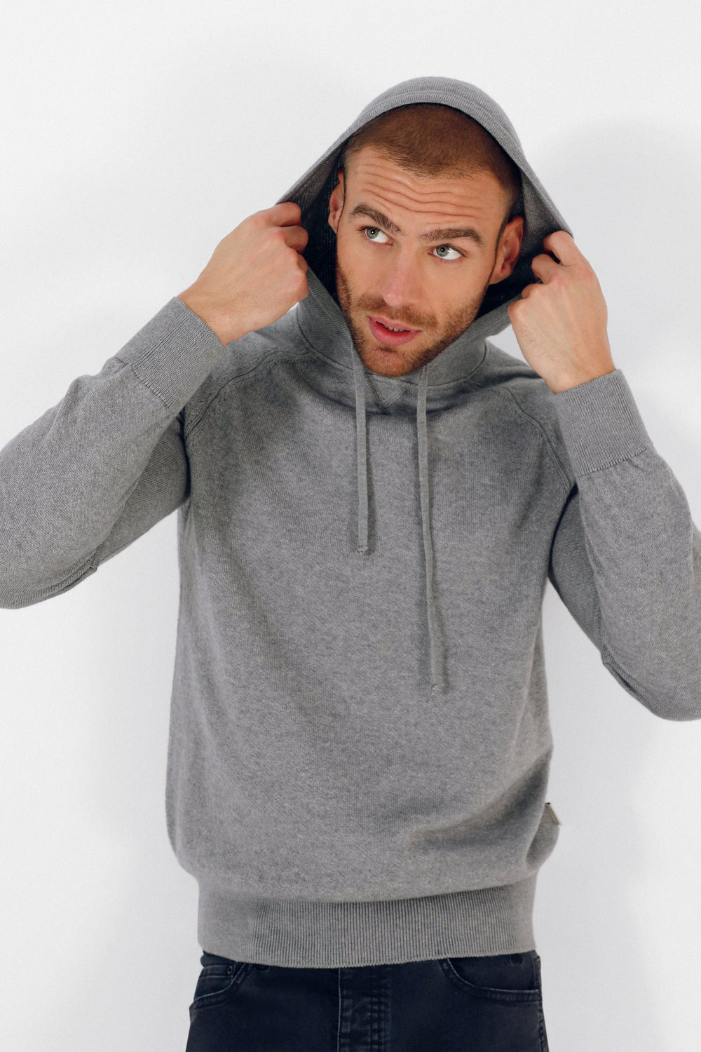 Jersey confeccionado en tejido de punto. Corte Regular Fit, cuello con capucha con cordones y manga larga terminada en ribs.