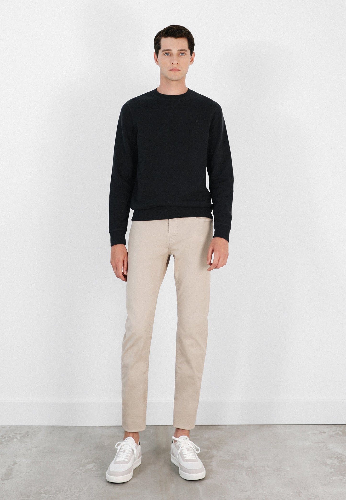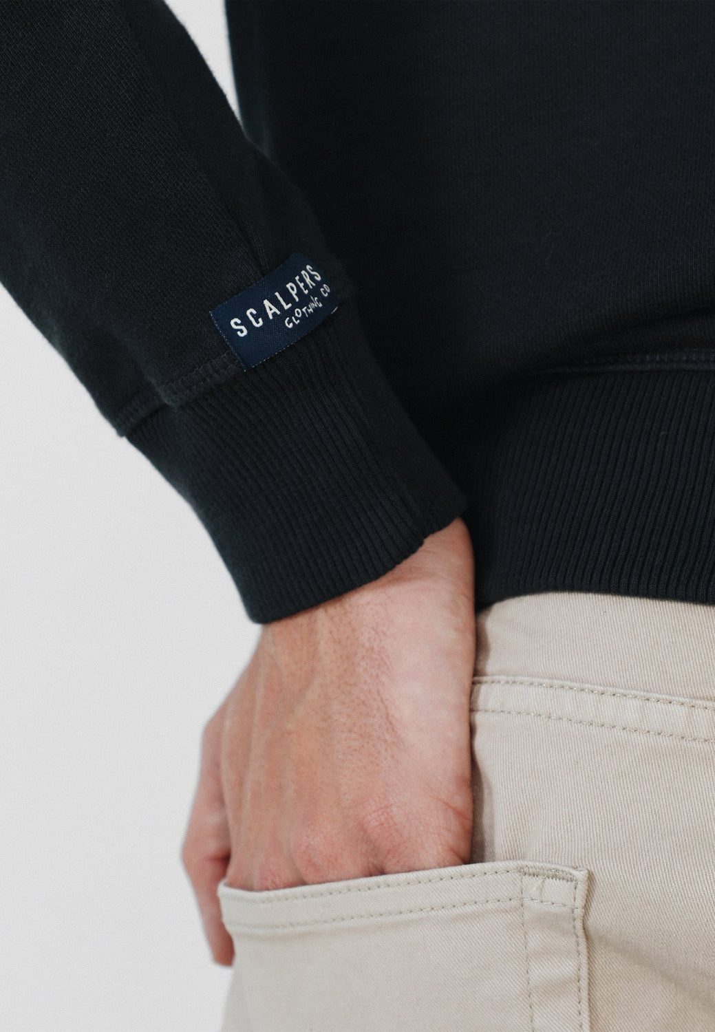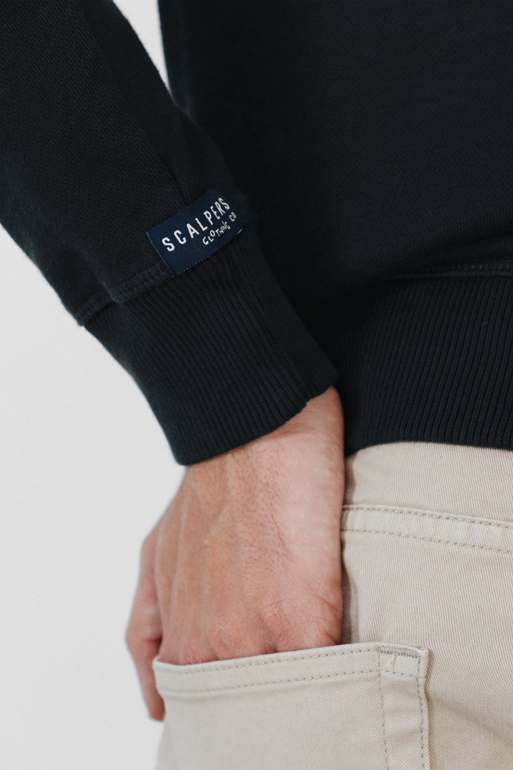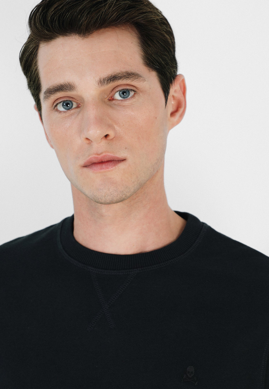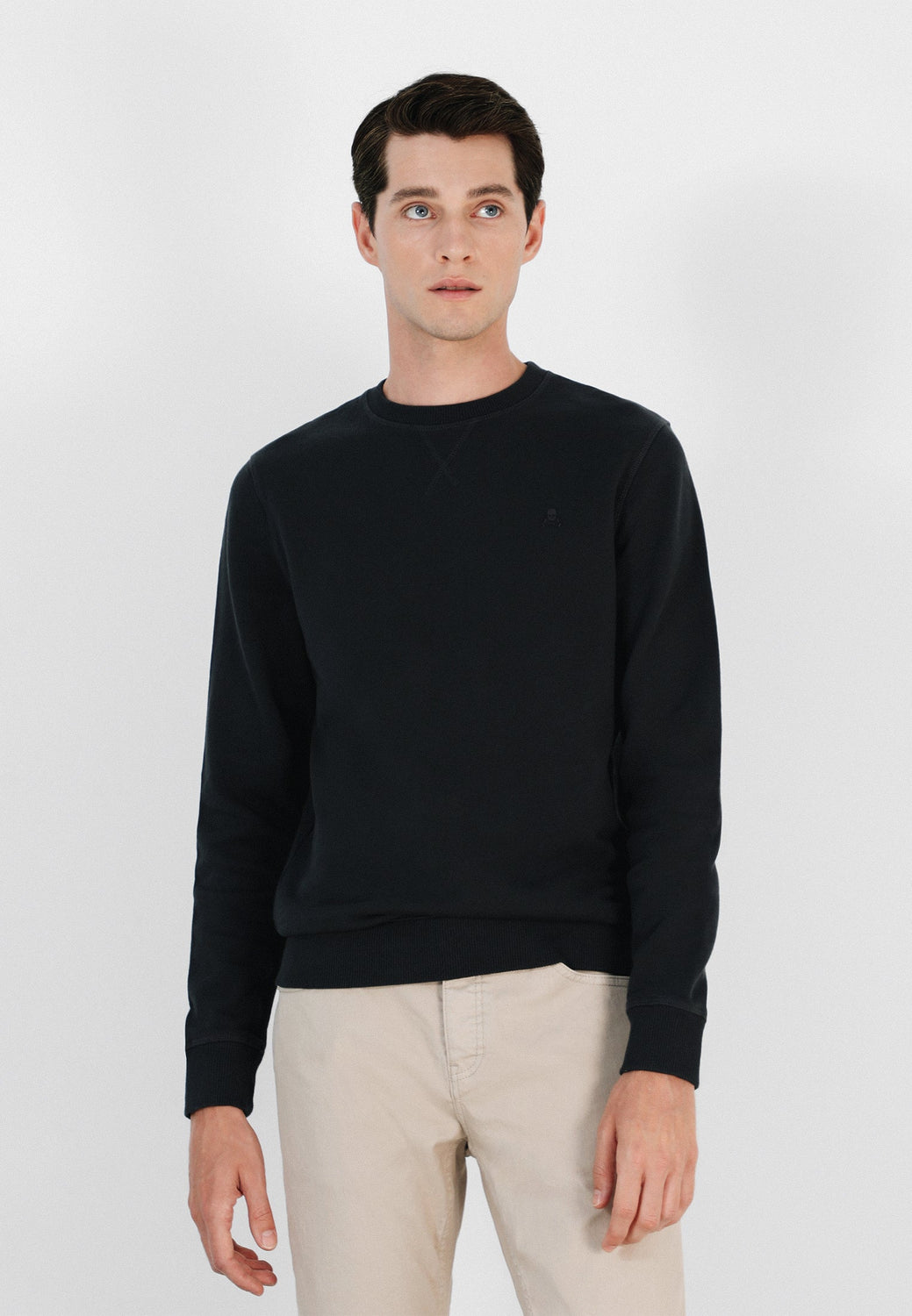 Sudadera confeccionada en tejido 100% algodón orgánico con lavado stone wash. Corte Regular Fit, cuello redondo y manga larga terminada en rib. Detalle de cosido en cruz en el cuello, etiqueta decorativa en puño y calavera bordada a tono en el pecho.