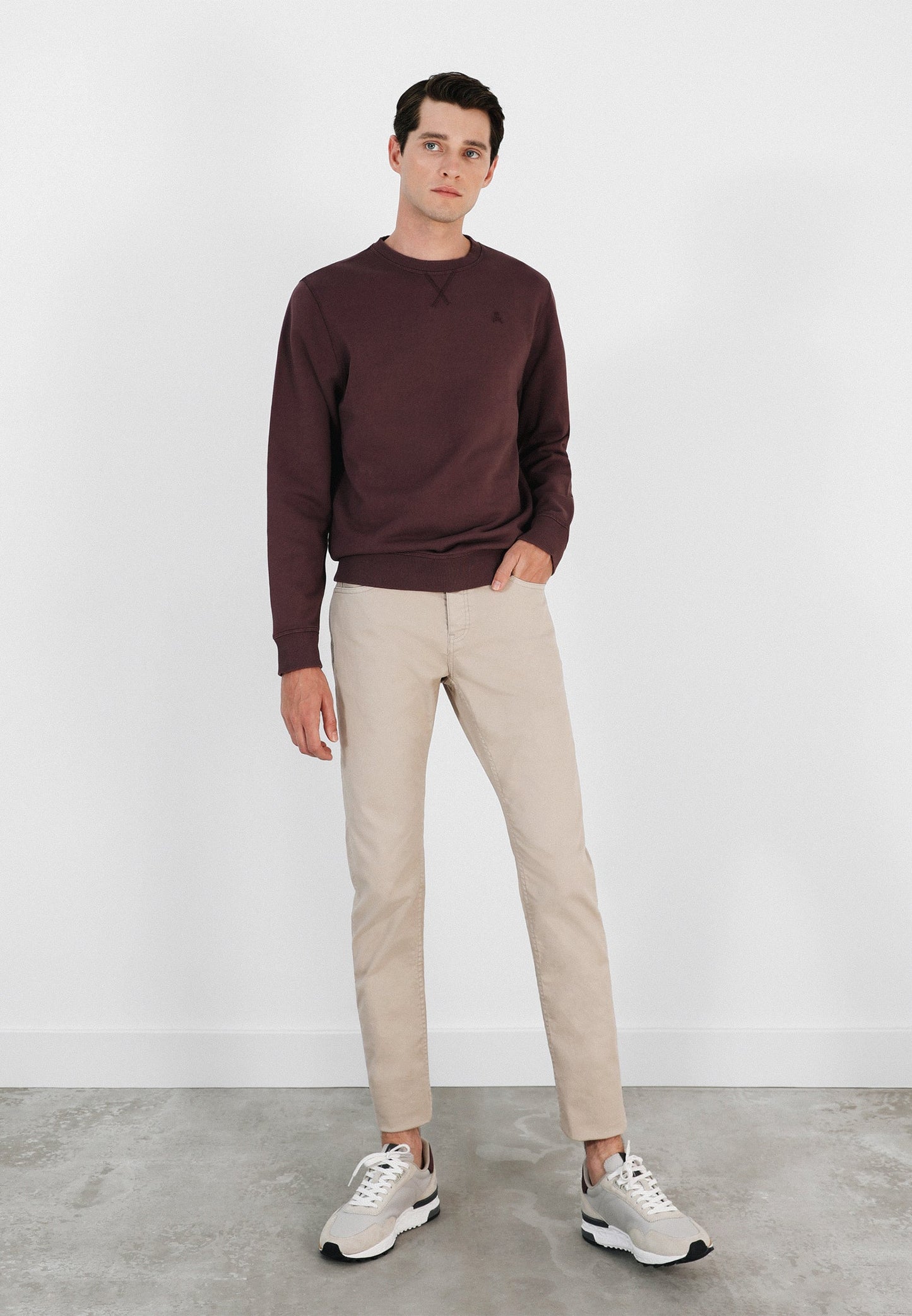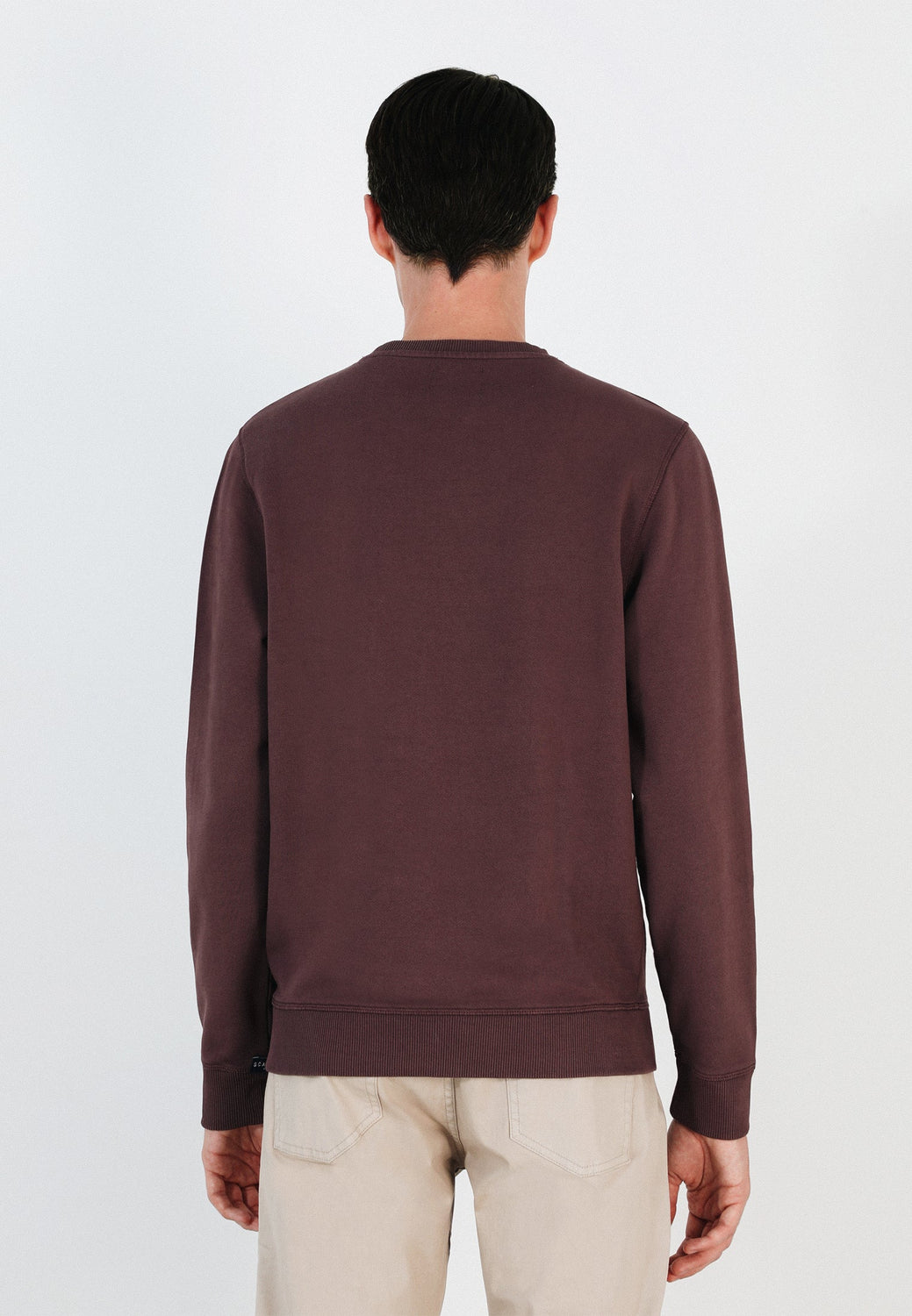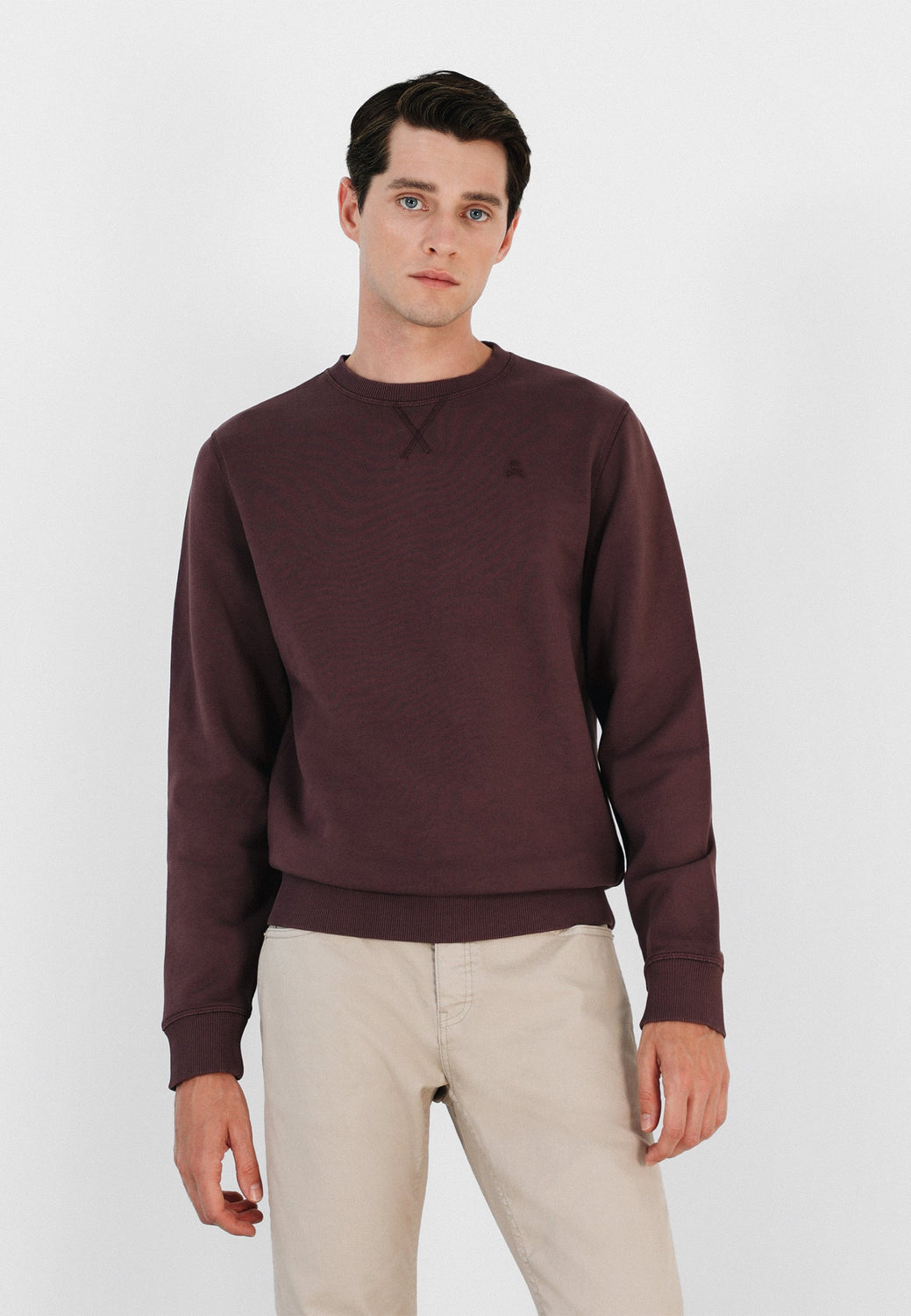 Sudadera confeccionada en tejido 100% algodón orgánico con lavado stone wash. Corte Regular Fit, cuello redondo y manga larga terminada en rib. Detalle de cosido en cruz en el cuello, etiqueta decorativa en puño y calavera bordada a tono en el pecho.