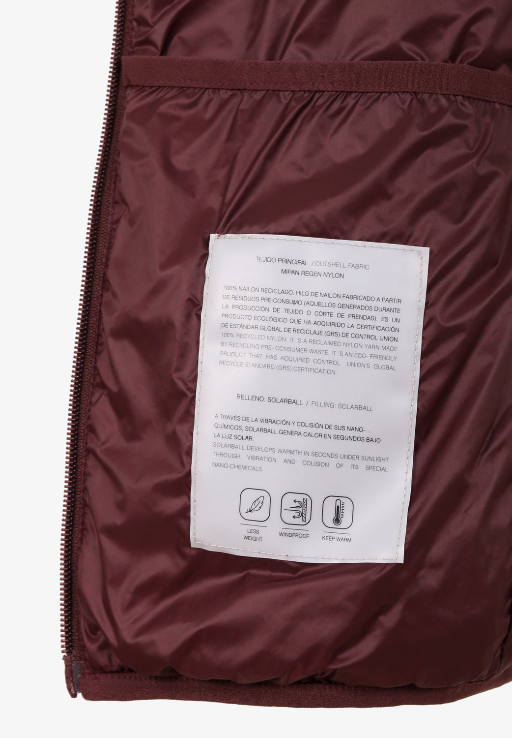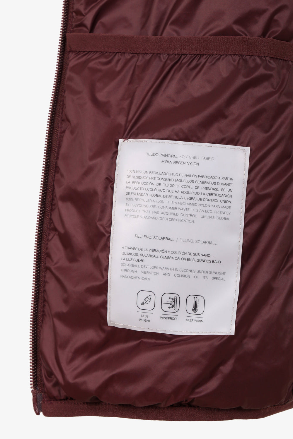 Chaleco acolchado confeccionado en tejido de nailon y poliéster reciclado water repellent. Corte Slim Fit, cuello subido y cierre con cremallera de doble carro. Sin mangas con sisa elástica. Bolsillos con cremallera y bolsillo interior. Detalle de parche de goma en pecho. Incluye bolsa para guardarlo.