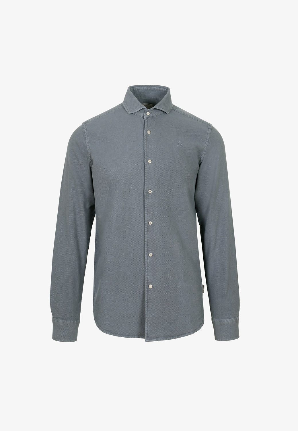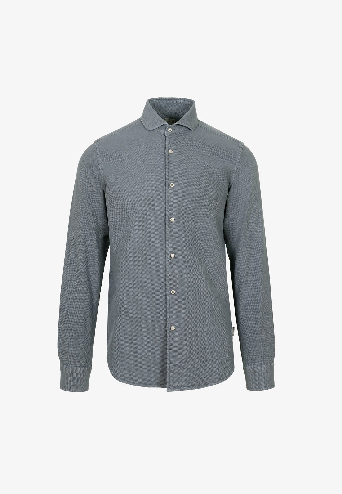 Camisa confeccionada en tejido 100% algodón orgánico tipo polo. Corte Regular Fit, cuello cutaway y cierre con botones. Detalle de calavera a tono.