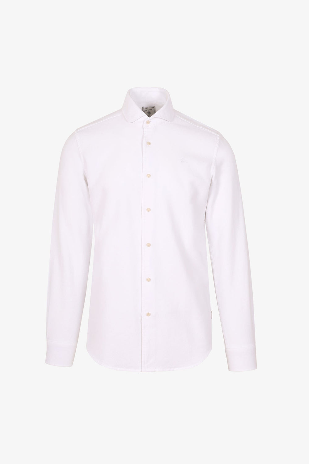 Camisa confeccionada en tejido 100% algodón orgánico tipo polo. Corte Regular Fit, cuello cutaway y cierre con botones. Detalle de calavera a tono.