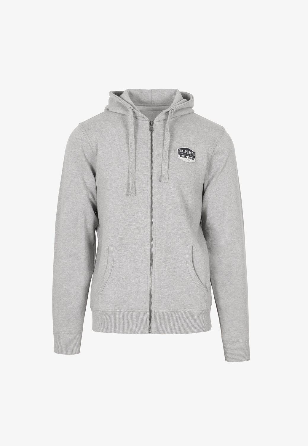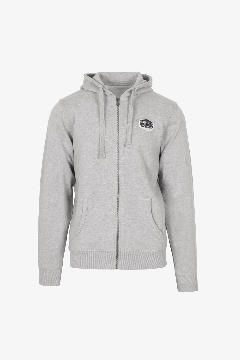 Sudadera confeccionada en tejido 100% algodón orgánico. Corte Regular Fit, cuello con capucha con ajustadores y cierre con cremallera. Manga larga y bolsillos laterales. Detalle de parche bordado en el pecho.