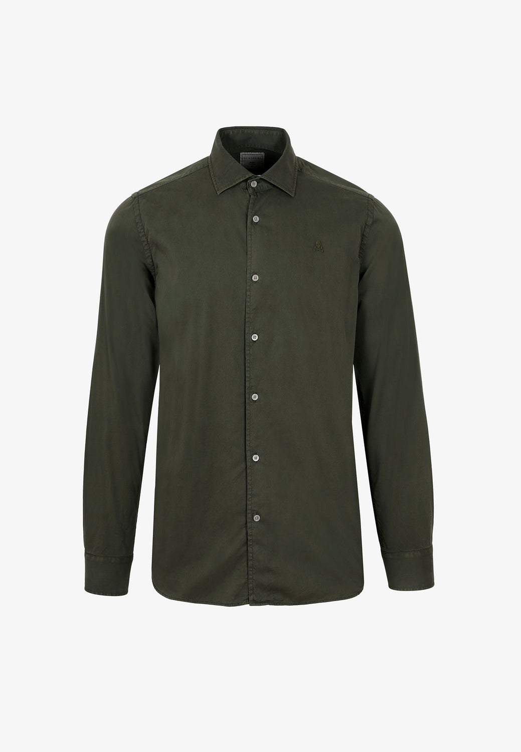 - Corte Regular Fit, cuello italiano y cierre con botones sin tapeta.