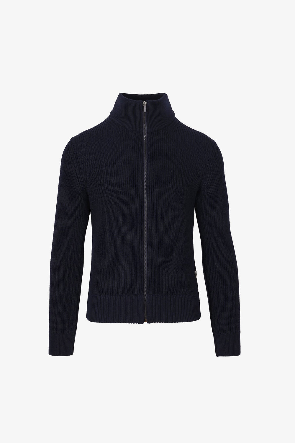 • Corte Slim Fit, cuello subido y cierre con cremallera.