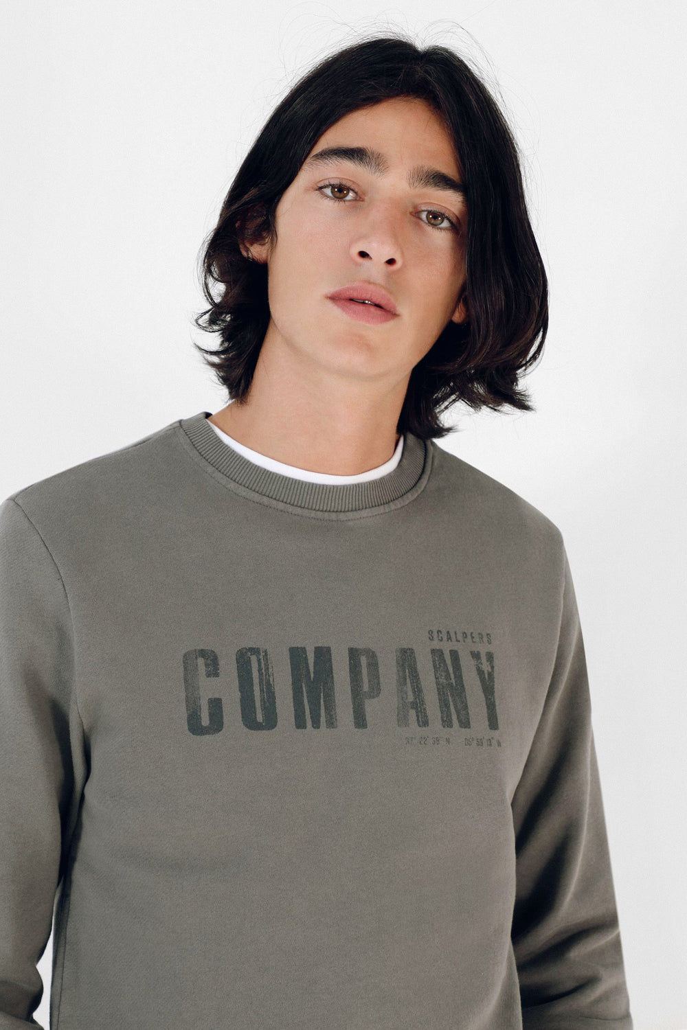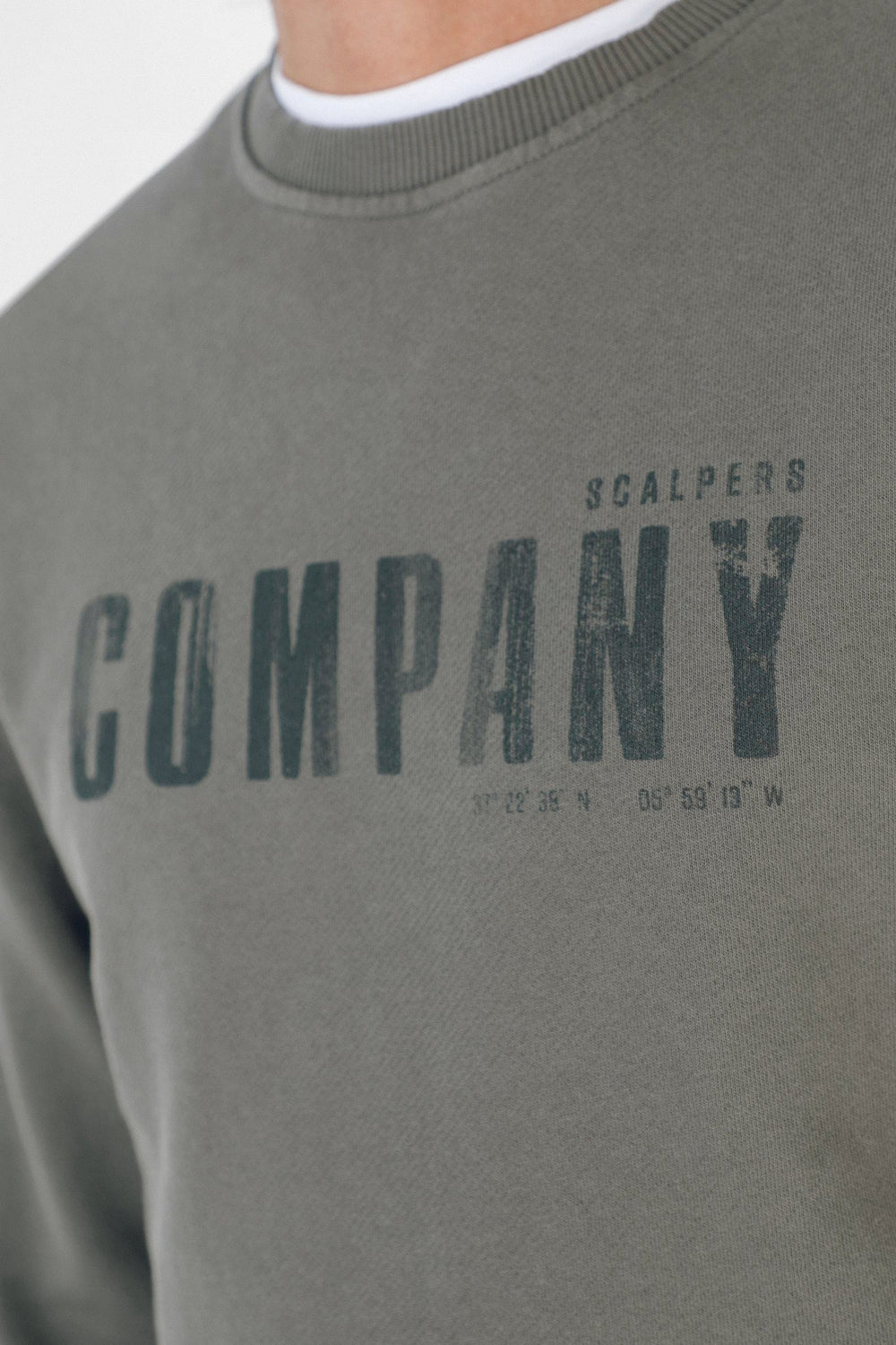 Sudadera confeccionada en tejido 100% algodón orgánico. Corte Regular Fit, cuello redondo y manga larga. Detalle de print de Scalpers Company.