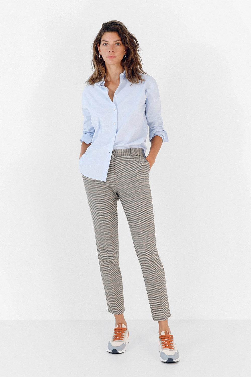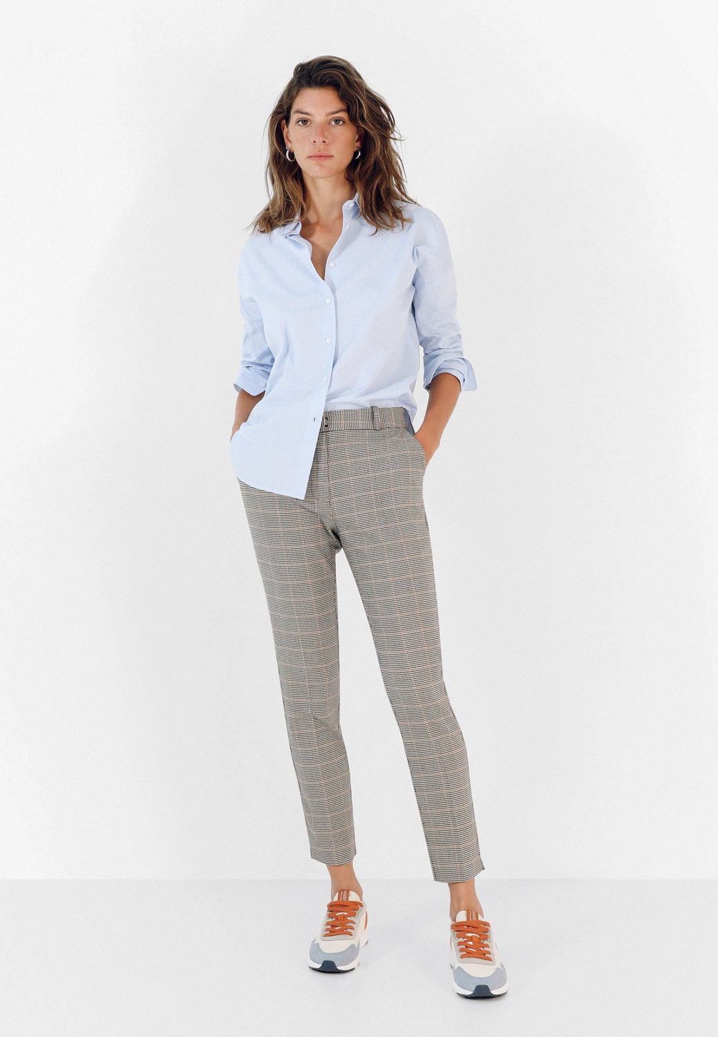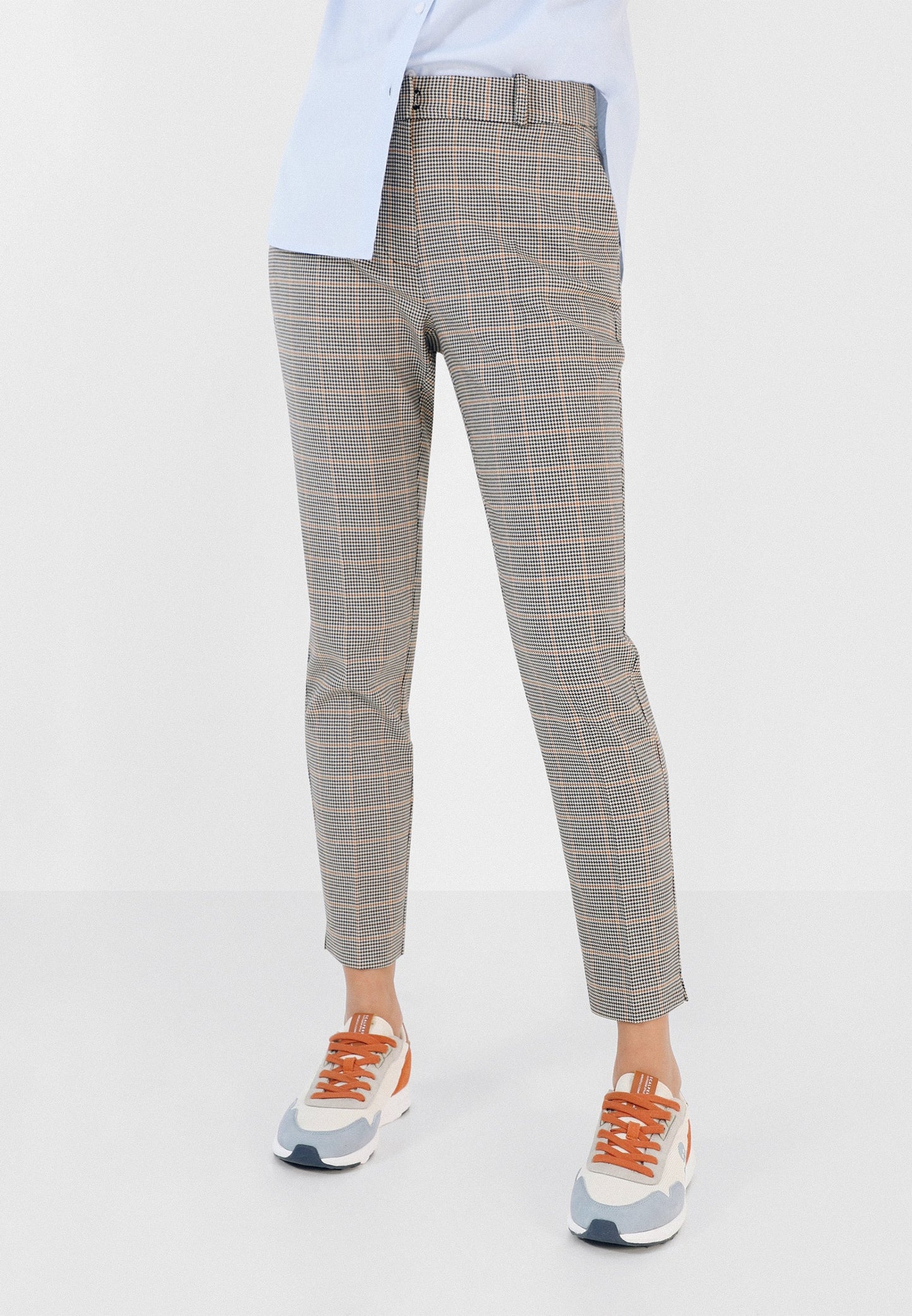 Pantalón recto con estampado de cuadros. Corte Regular Fit, cierre con corchete y cremallera y trabillas. Bolsillos laterales.