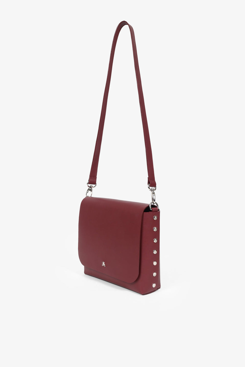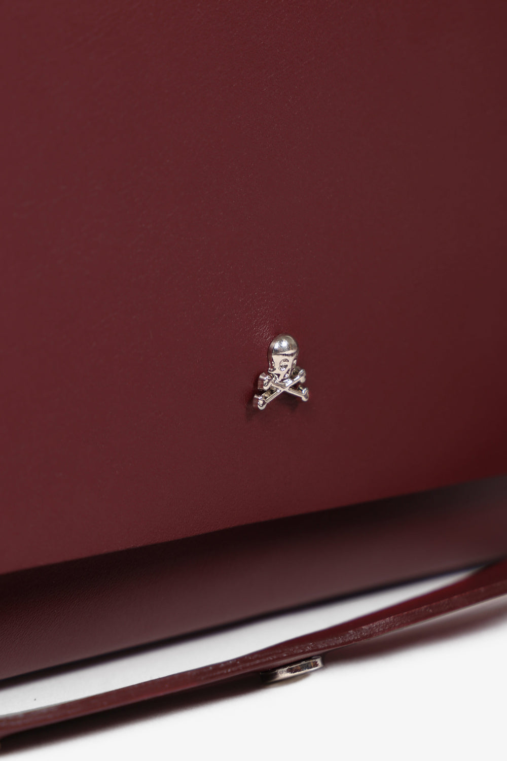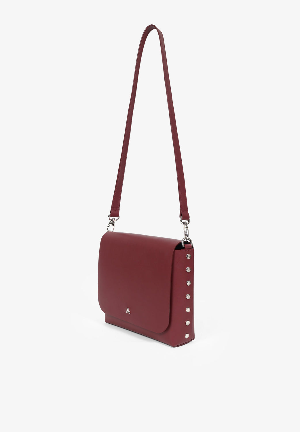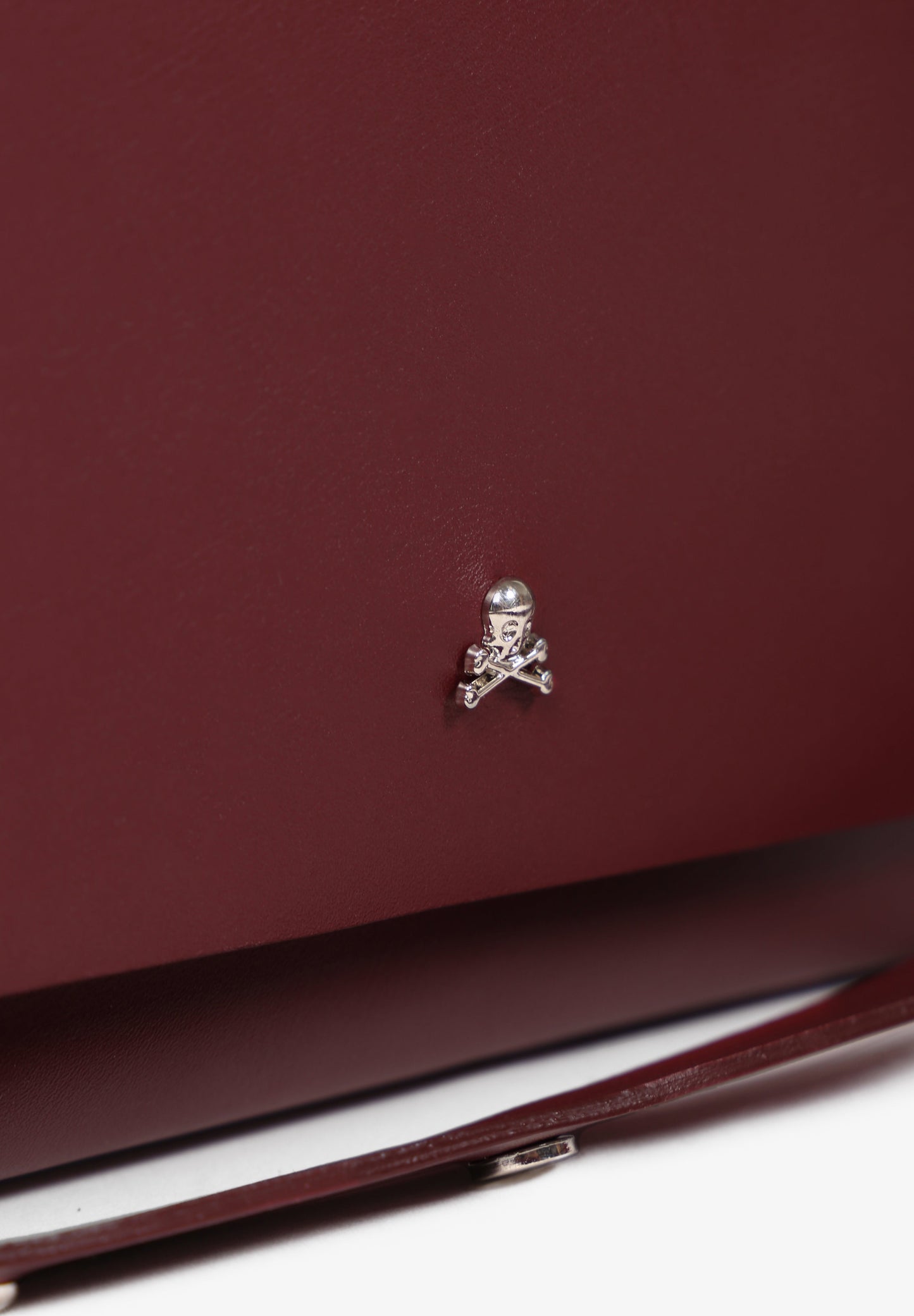 Bolso confeccionado en 100% piel. Doble asa corta y larga desmontable con gancho. Detalle de tachuela de calavera frontal y laterales.