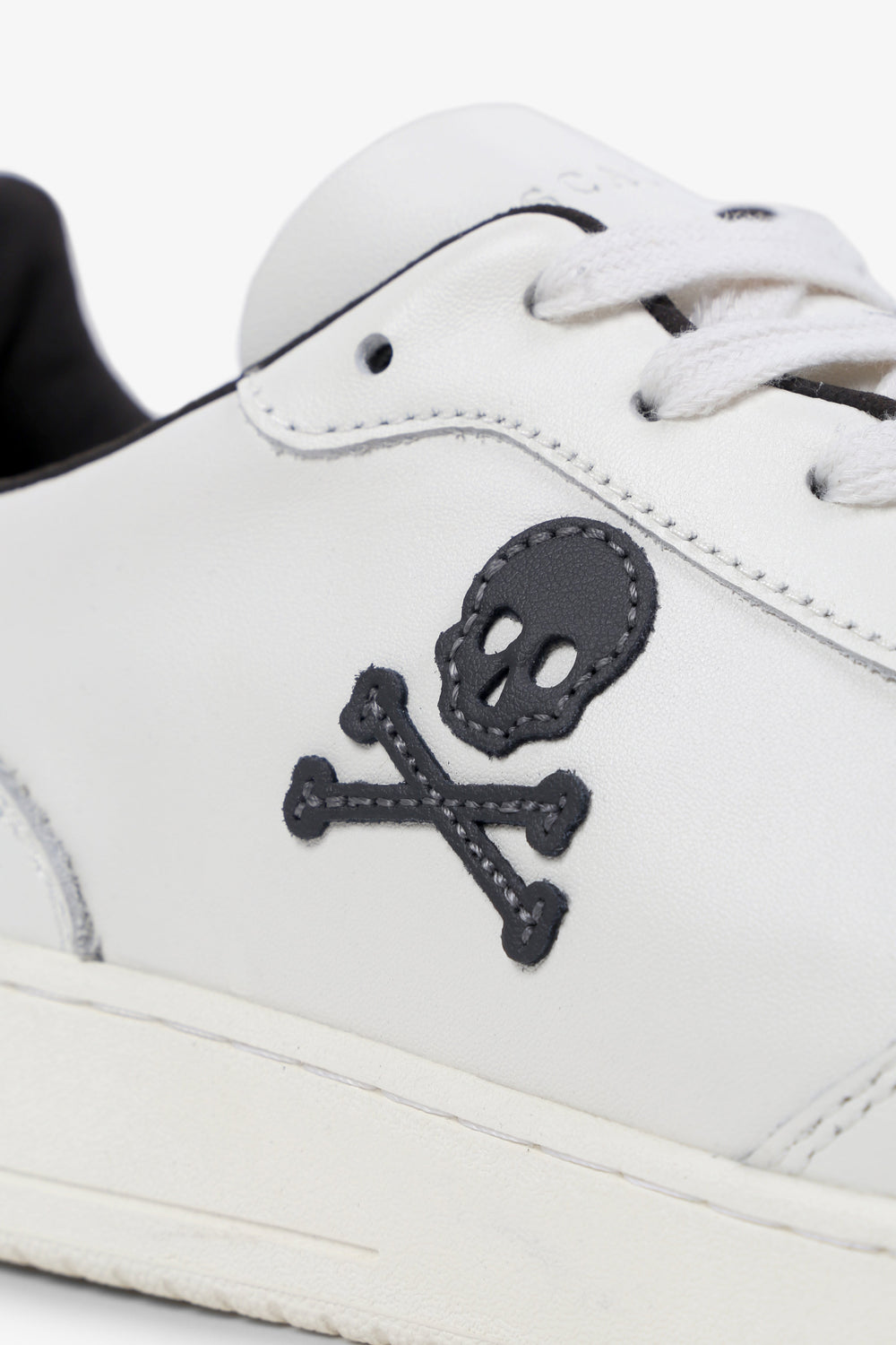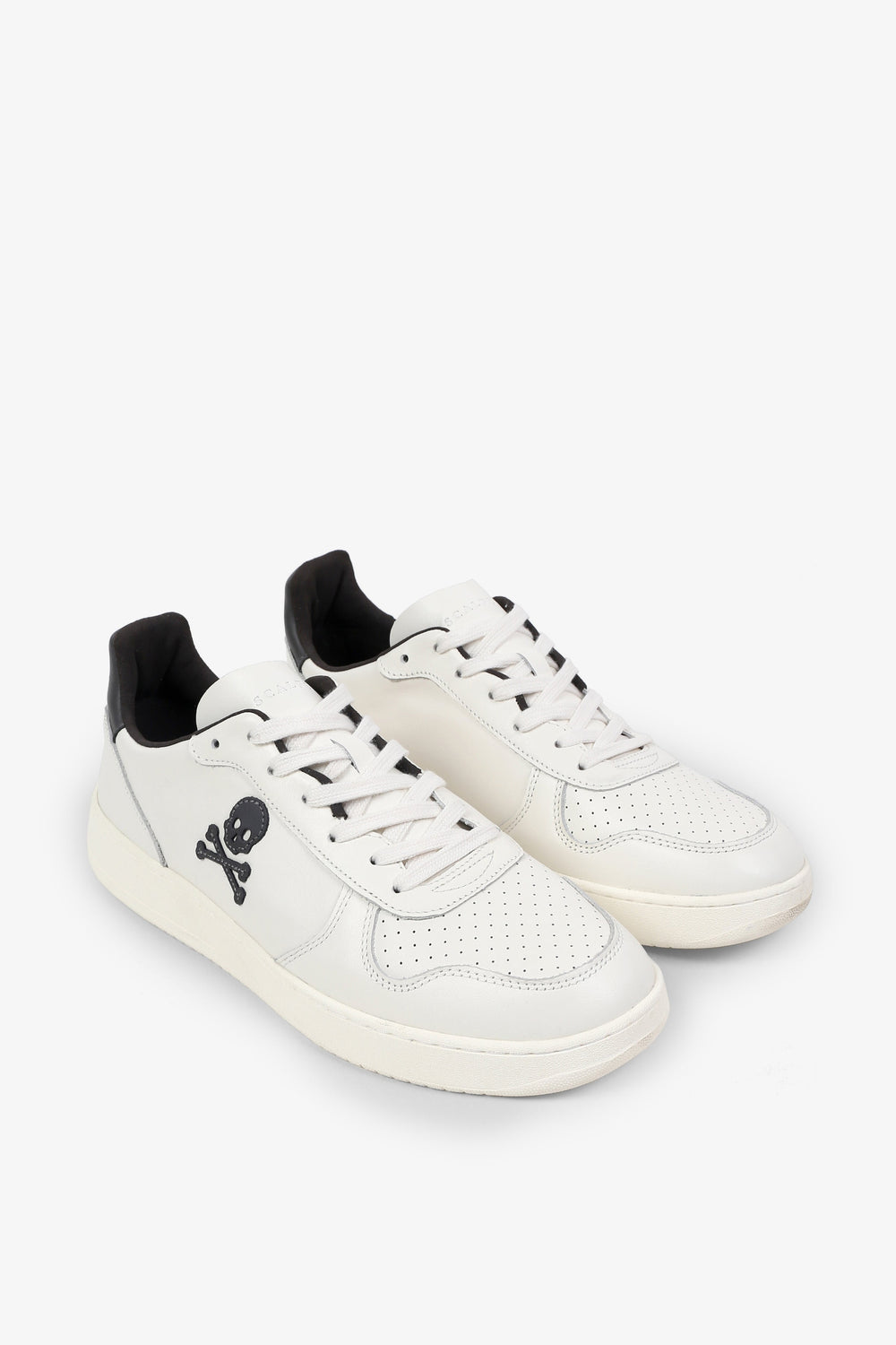 Sneakers confeccionadas en piel. Cierre con cordones a tono y suela de goma. Detalles de talón a contraste y calavera lateral.