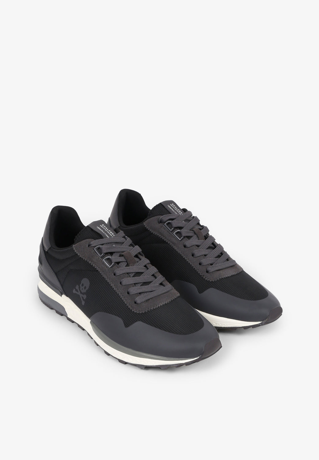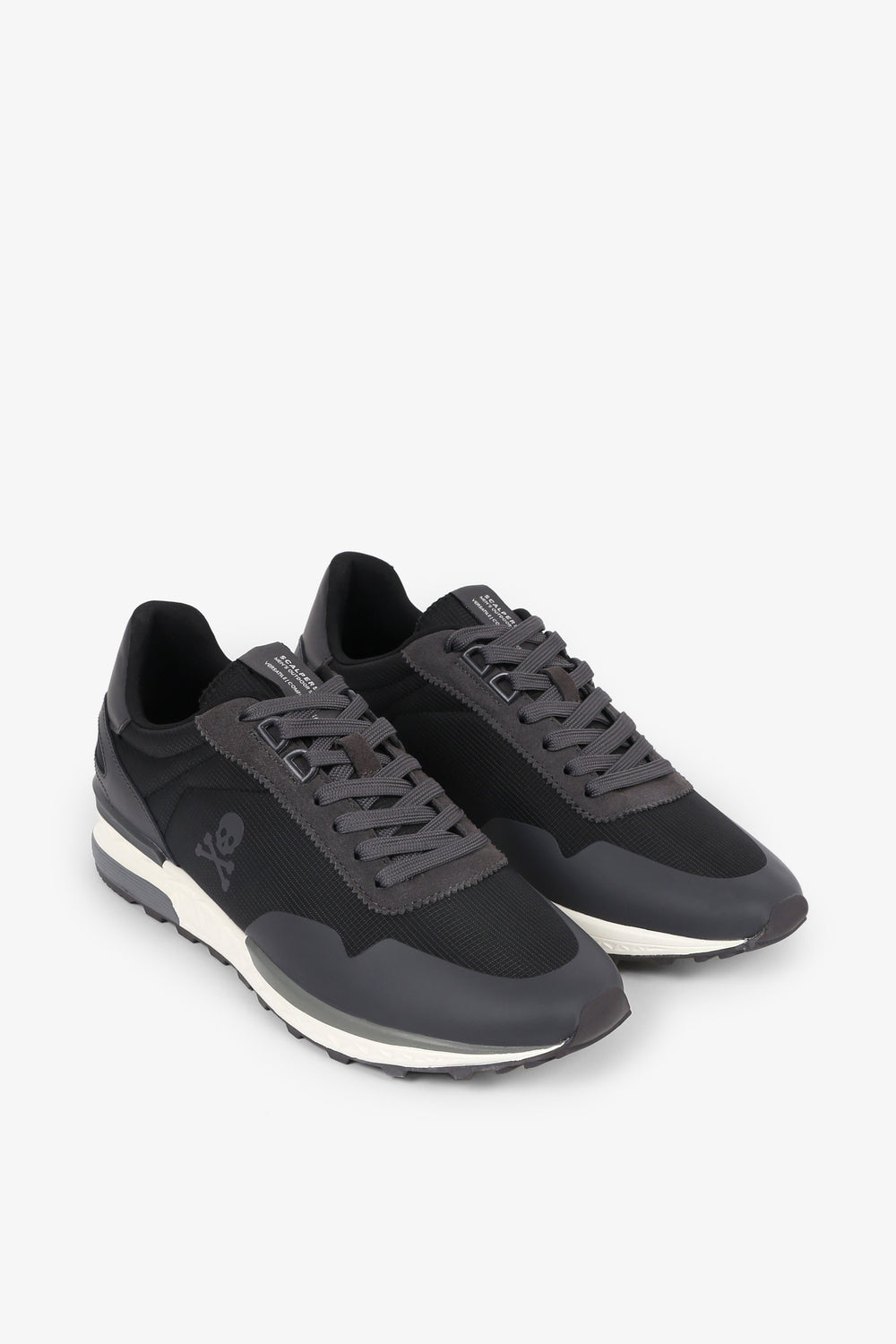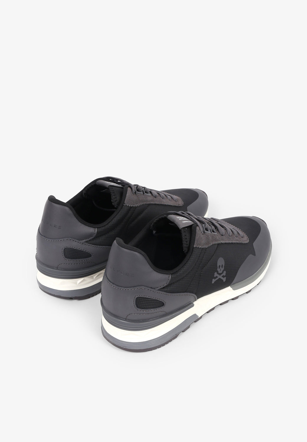 Sneakers confeccionadas en serraje y nailon. Corte bajo y cierre con cordones a tono. Rejilla transpirable y suela de eva y goma. Detalle de aplique de calavera.