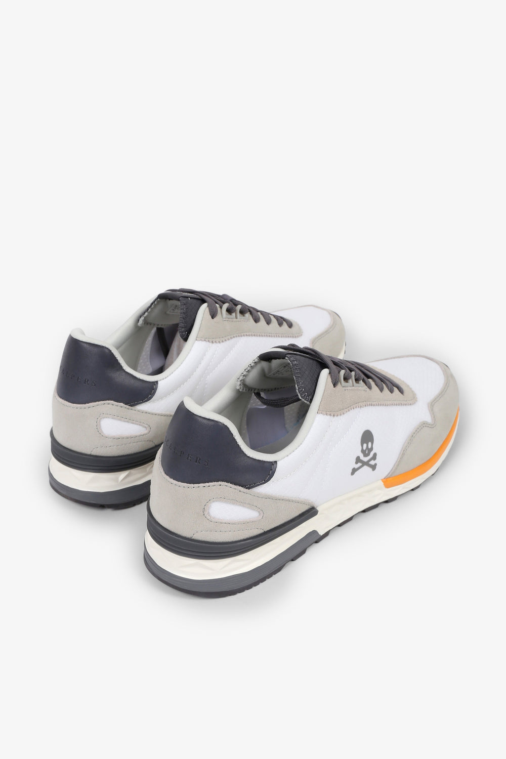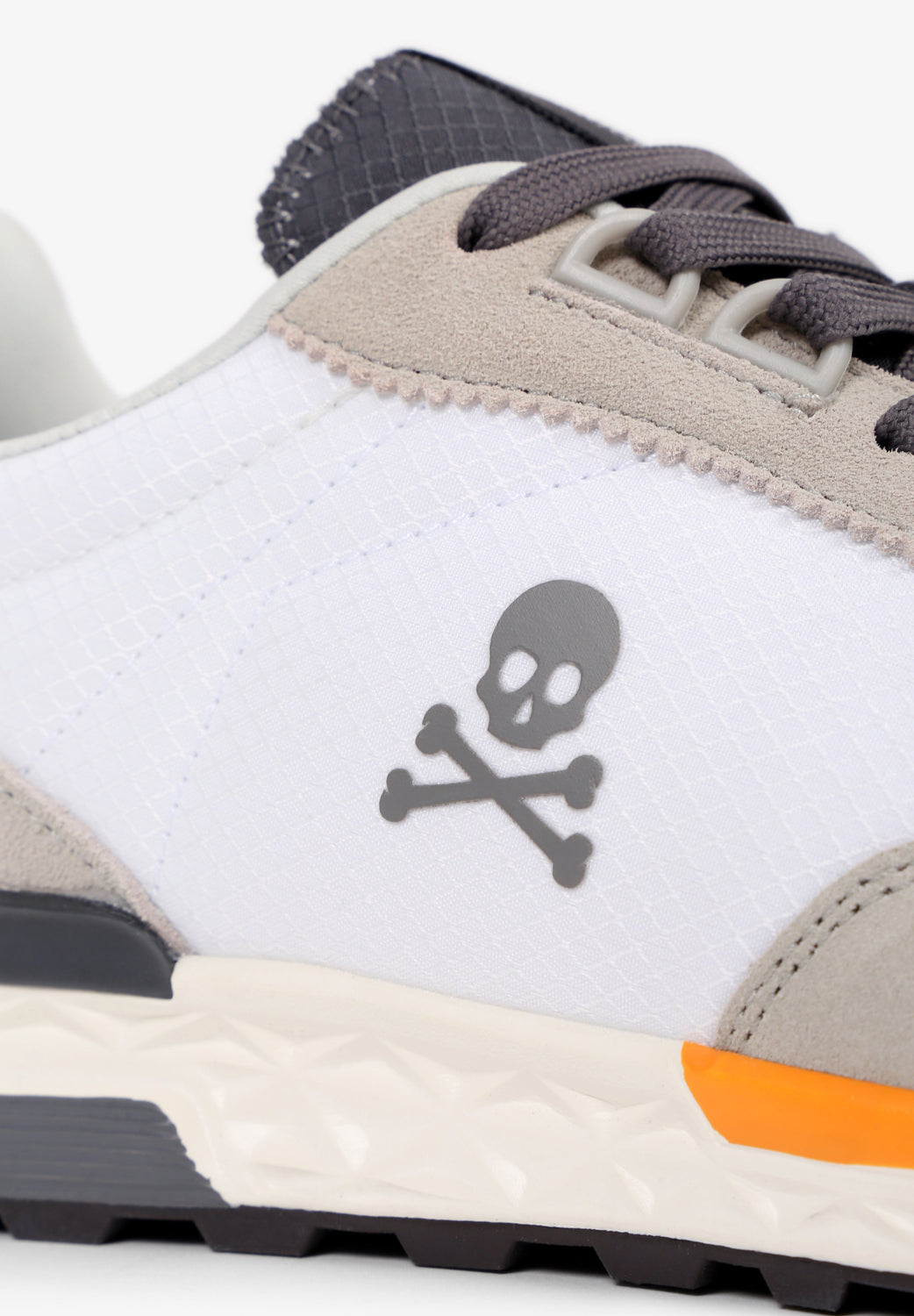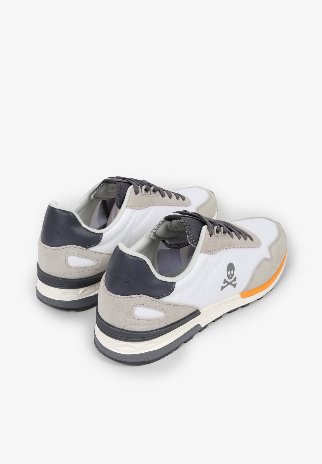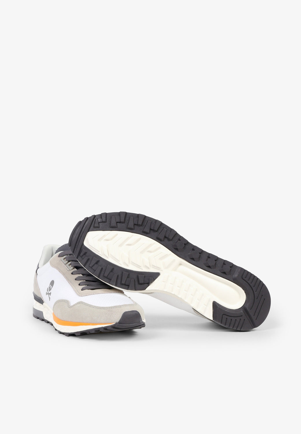 Sneakers confeccionadas en serraje y nailon. Corte bajo y cierre con cordones a tono. Rejilla transpirable y suela de eva y goma. Detalle de aplique de calavera.
