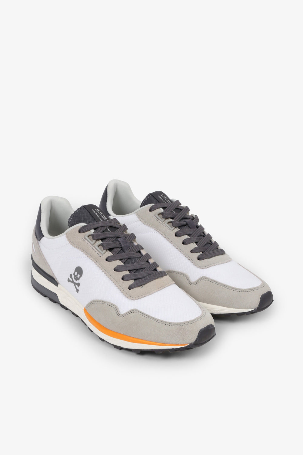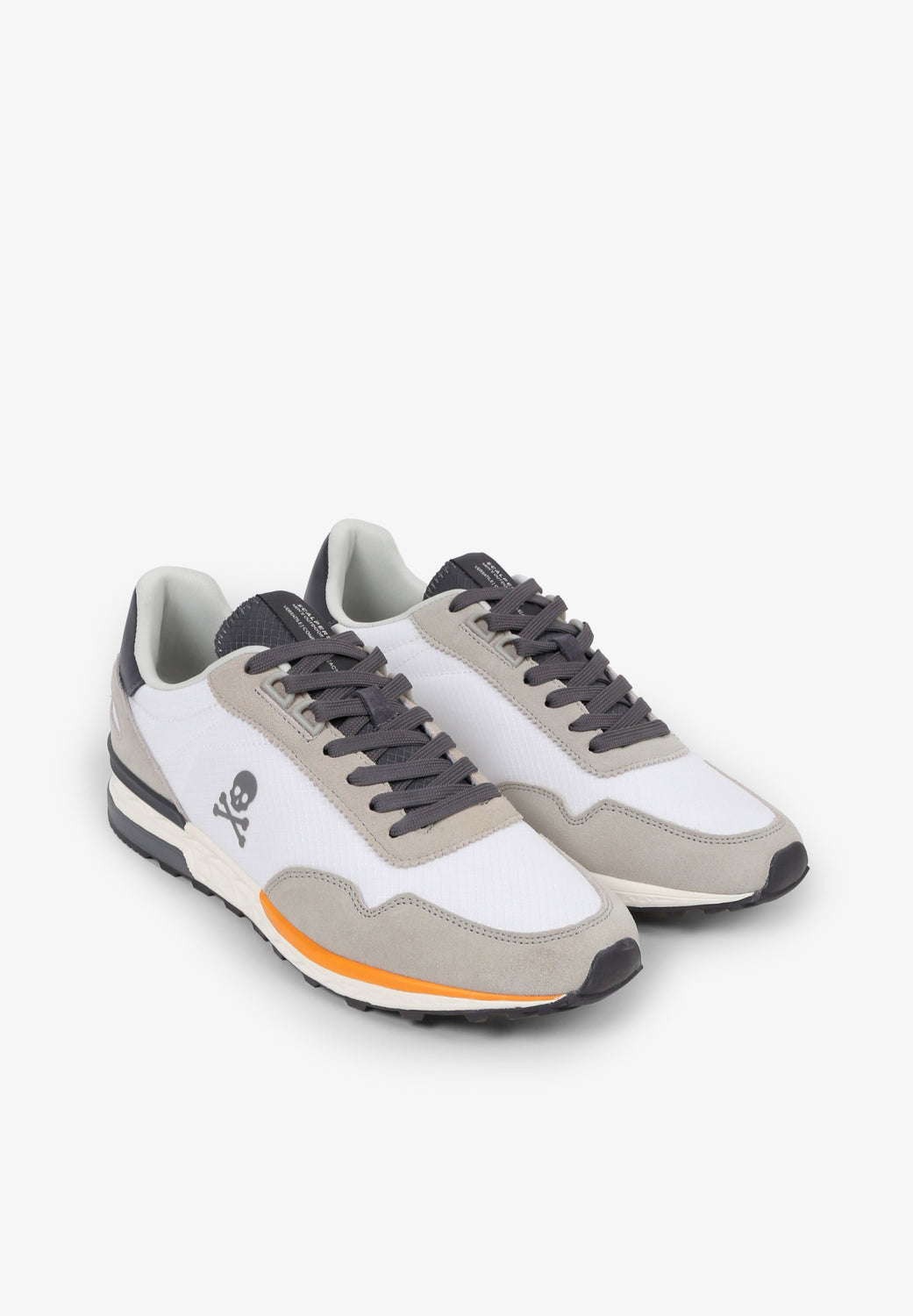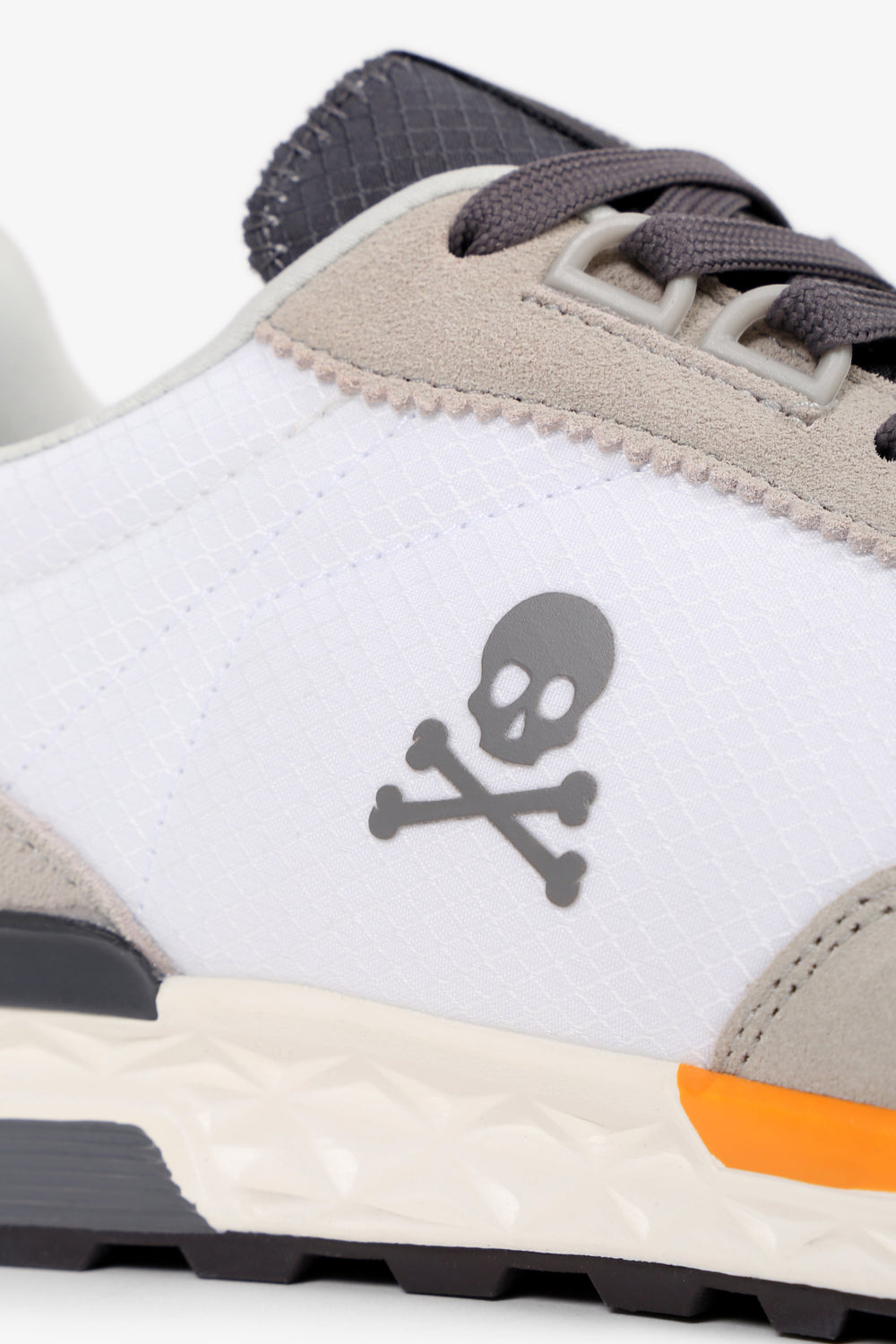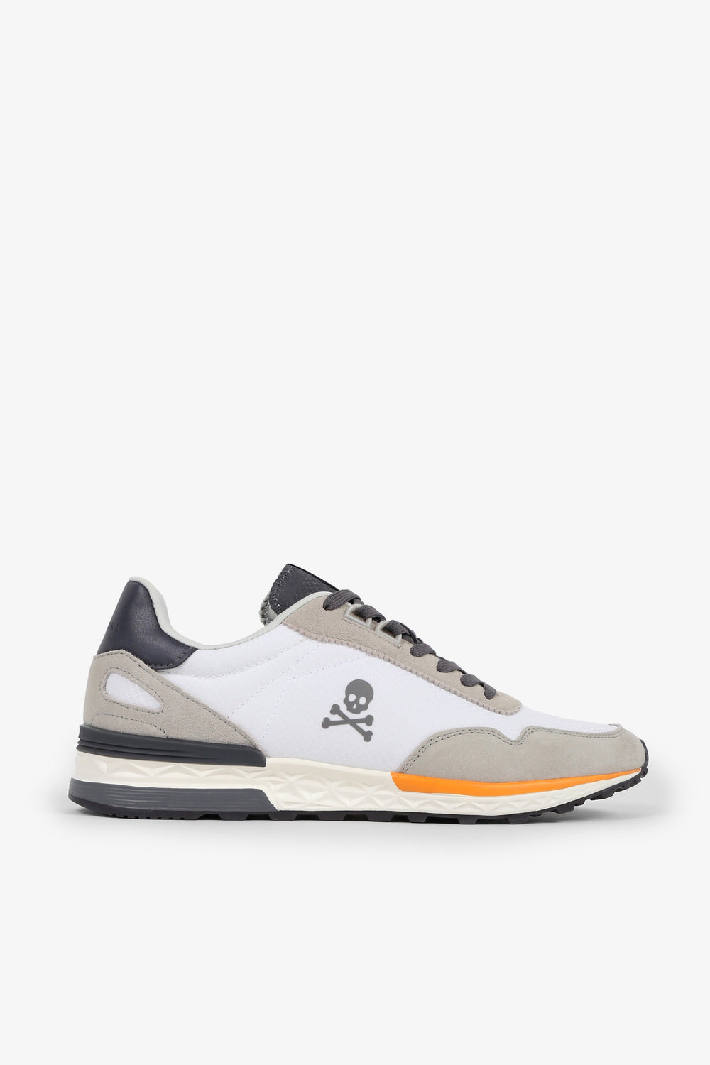 Sneakers confeccionadas en serraje y nailon. Corte bajo y cierre con cordones a tono. Rejilla transpirable y suela de eva y goma. Detalle de aplique de calavera.
