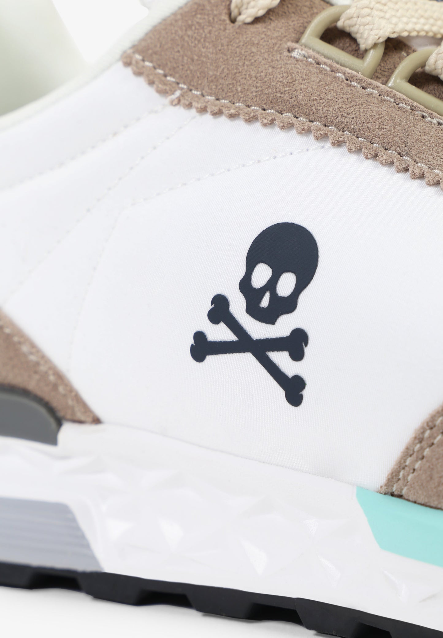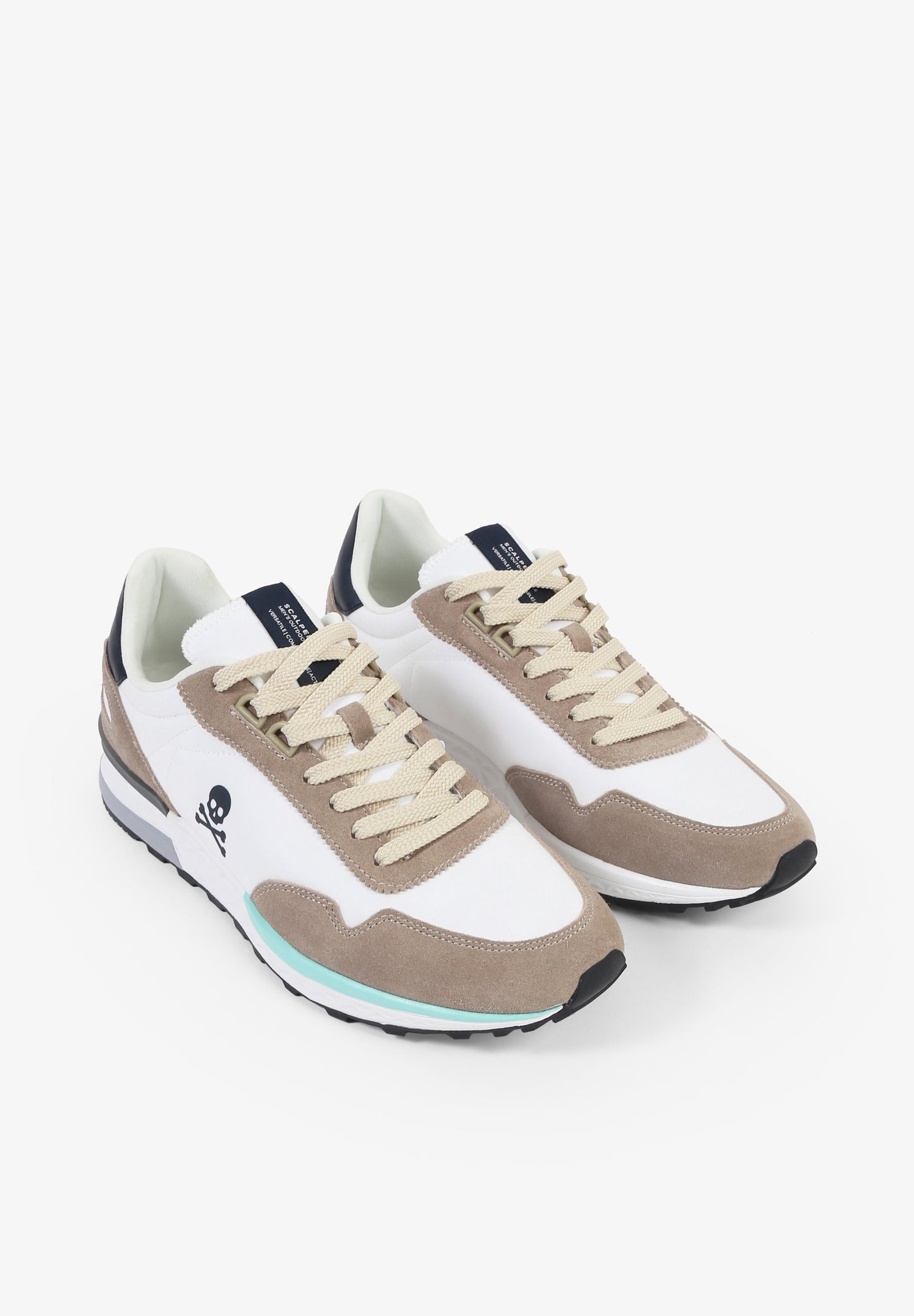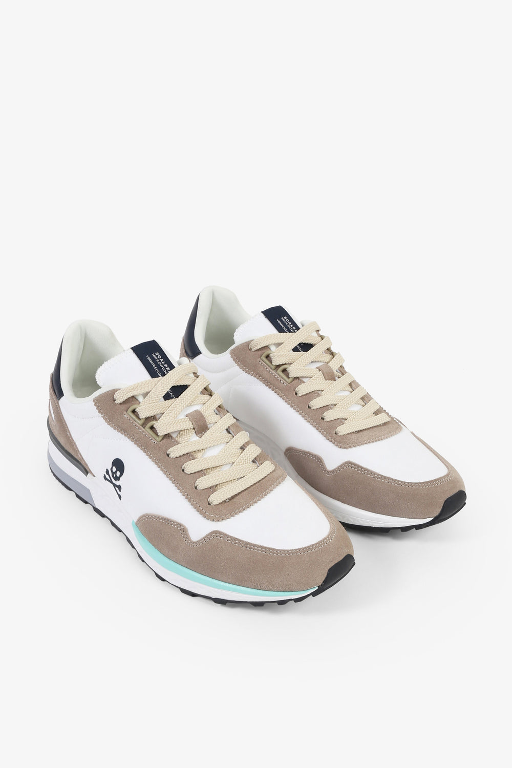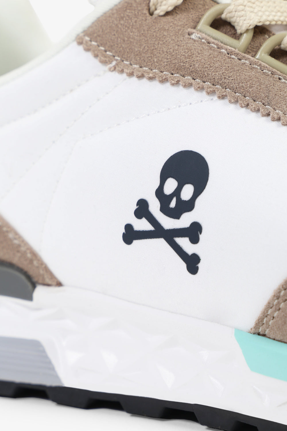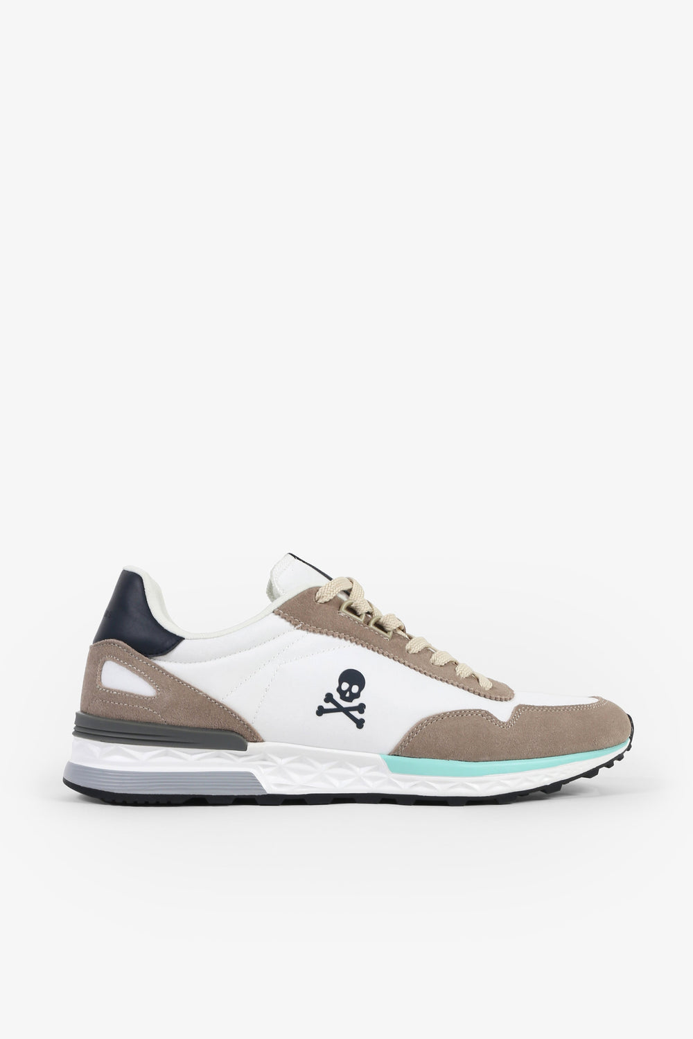 Sneakers confeccionadas en serraje y nailon. Corte bajo y cierre con cordones a tono. Rejilla transpirable y suela de eva y goma. Detalle de aplique de calavera.