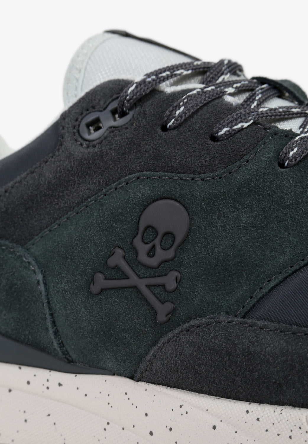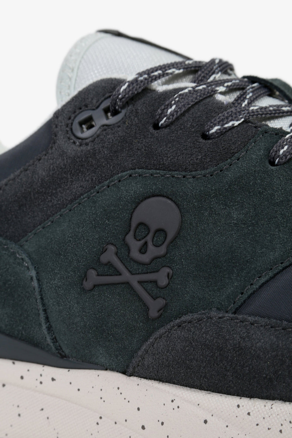 Sneakers confeccionadas en piel acabada en ante y algodón. Cierre con cordones, paneles a contraste y detalle de calavera lateral. Suela ancha de goma.