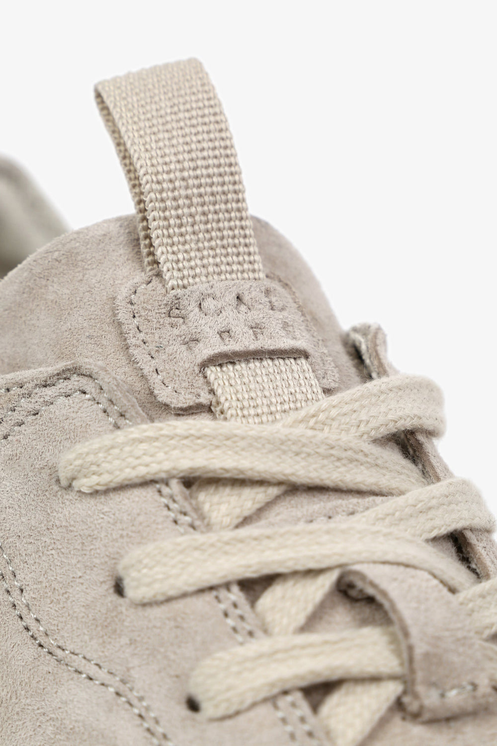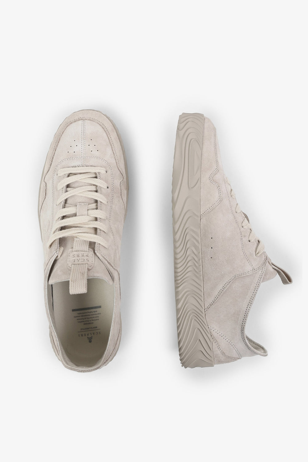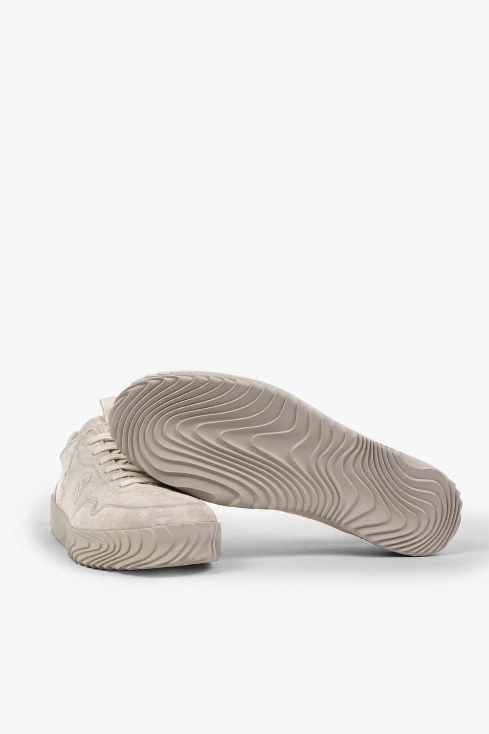 Sneakers baja confeccionadas en tejido 100% piel terminadas en ante. Cierre con cordones a tono y suela de goma. Detalle de calavera lateral.