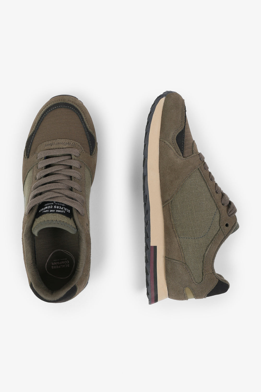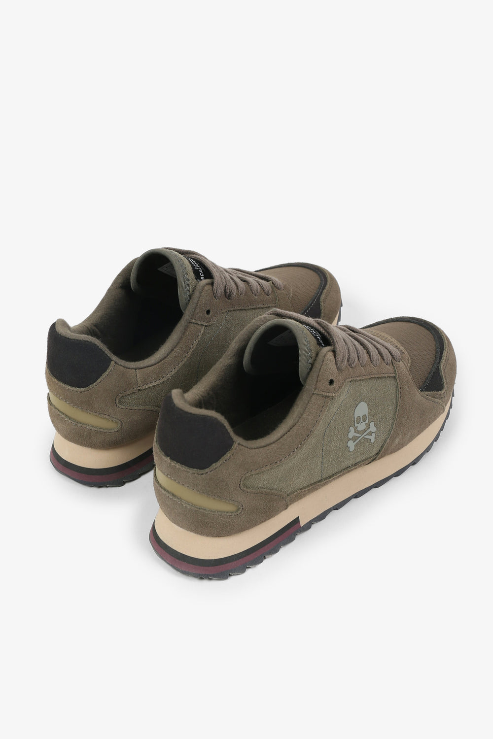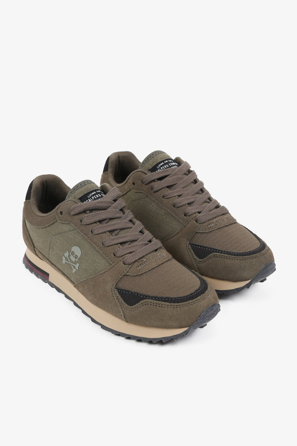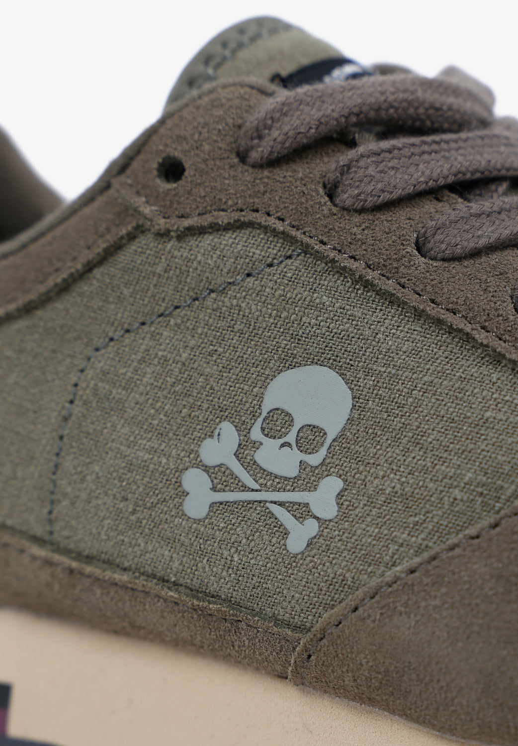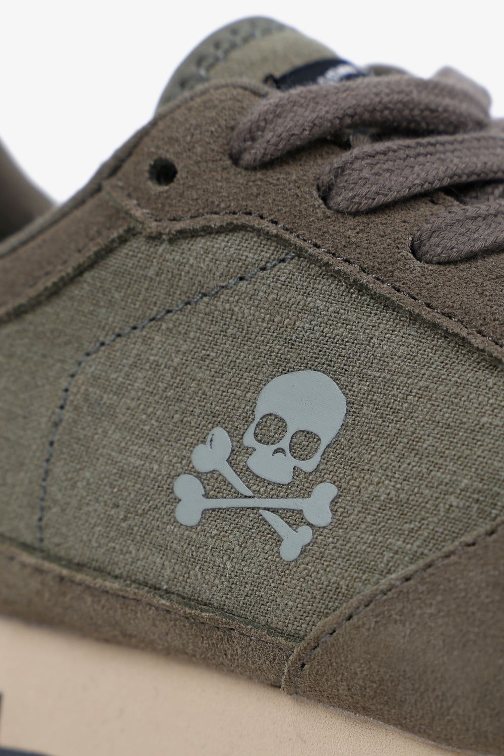 Sneakers ligeras confeccionadas en tejido de piel y canvas. Cierre con cordones a tono, suela de goma y eva y detalle de calavera lateral.