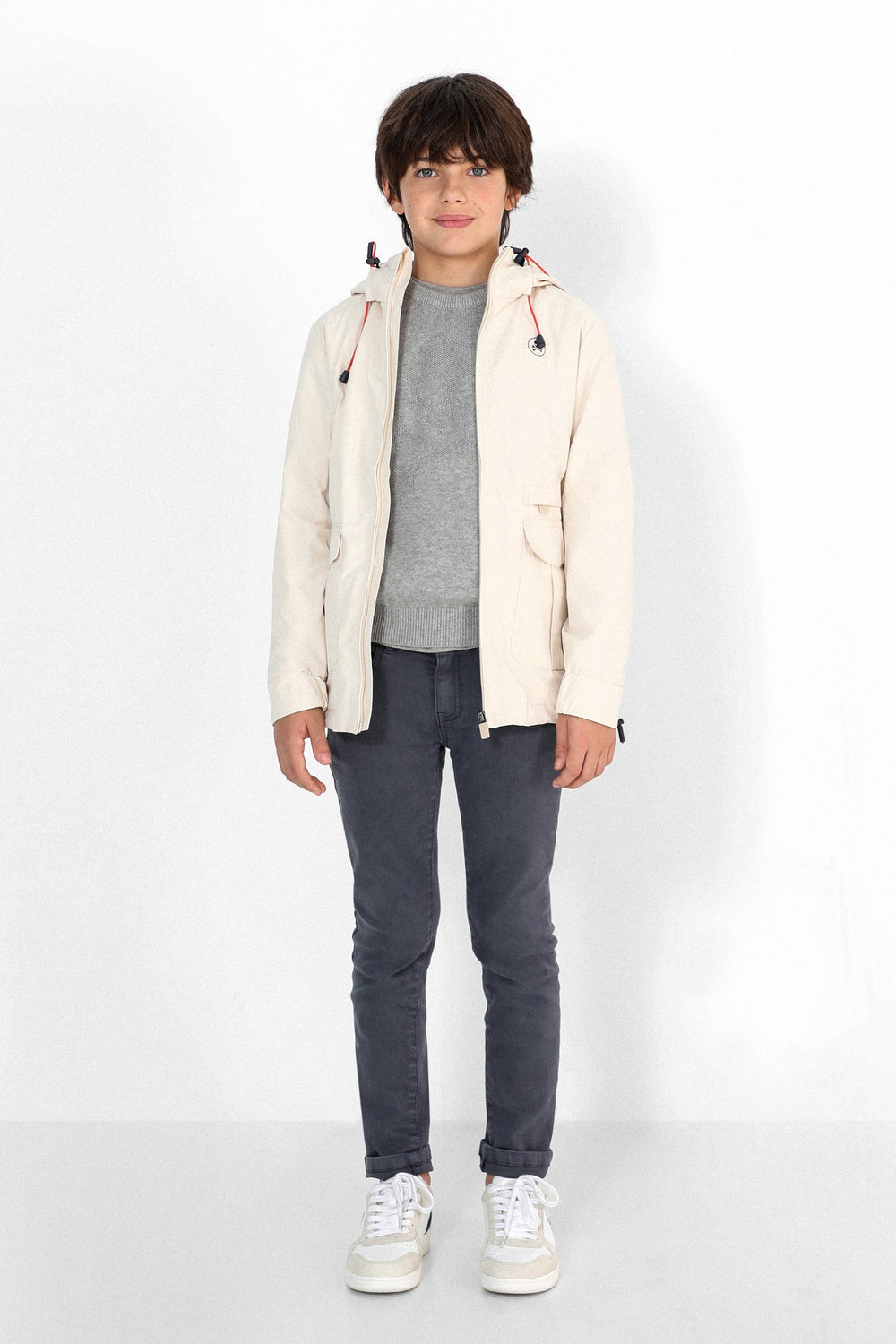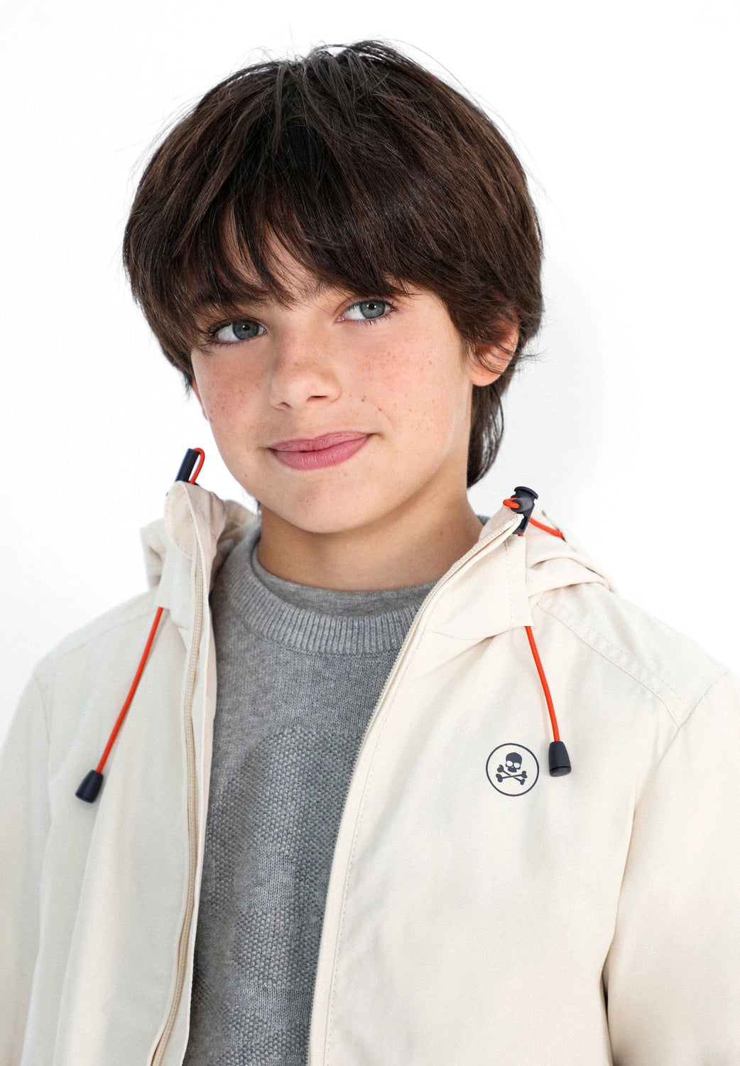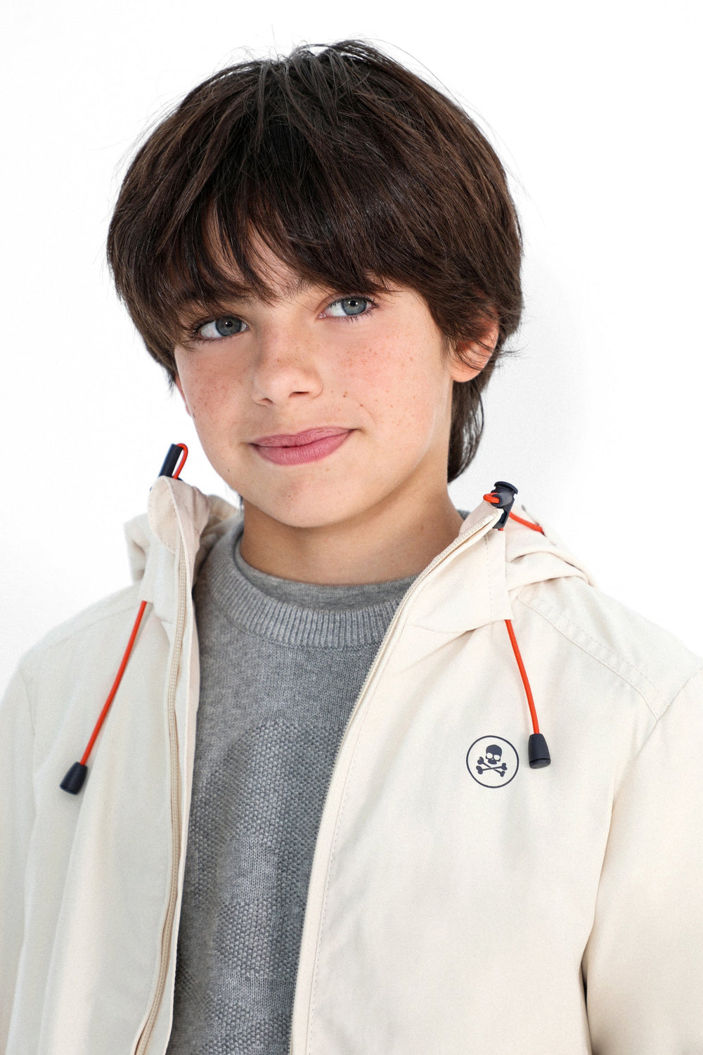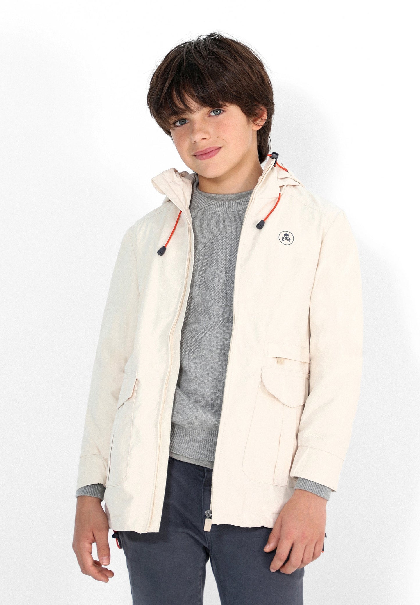 Chaqueta ligera confeccionada en tejido mezcla de algodón. Corte Regular Fit, cuello con capucha ajustable y cierre con cremallera. Manga larga terminada en puño con elástico y bolsillos frontales de parche e interior. Detalle de calavera.