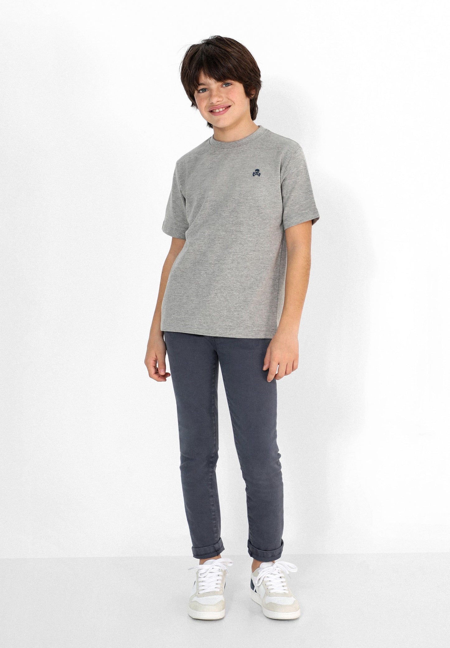 Pantalón confeccionado en tejido de algodón ligeramente elástico. Corte Slim Fit, cierre con botón y cremallera. Cinco bolsillos y trabillas. Logo bordado en el bolsillo.