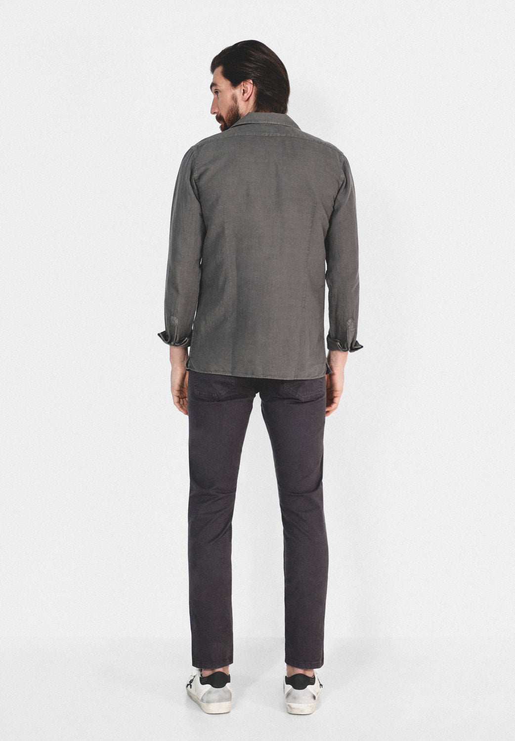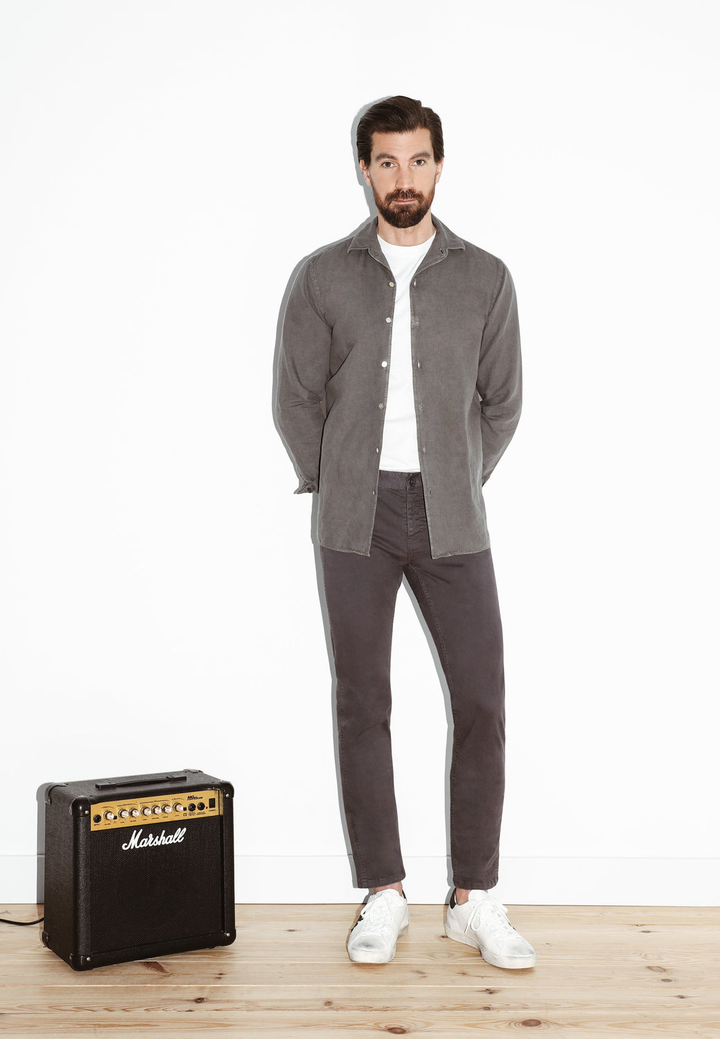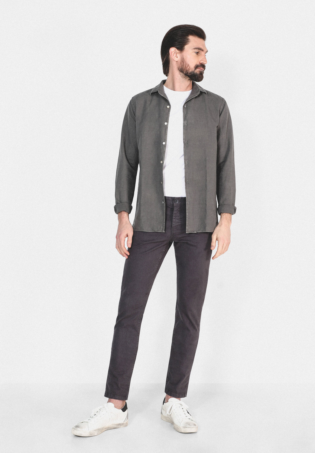 Pantalón confeccionado en tejido de algodón garment dyed. Corte Slim Fit, cierre con botón y cremallera. Cinco bolsillos y trabillas. Logo bordado en el bolsillo.