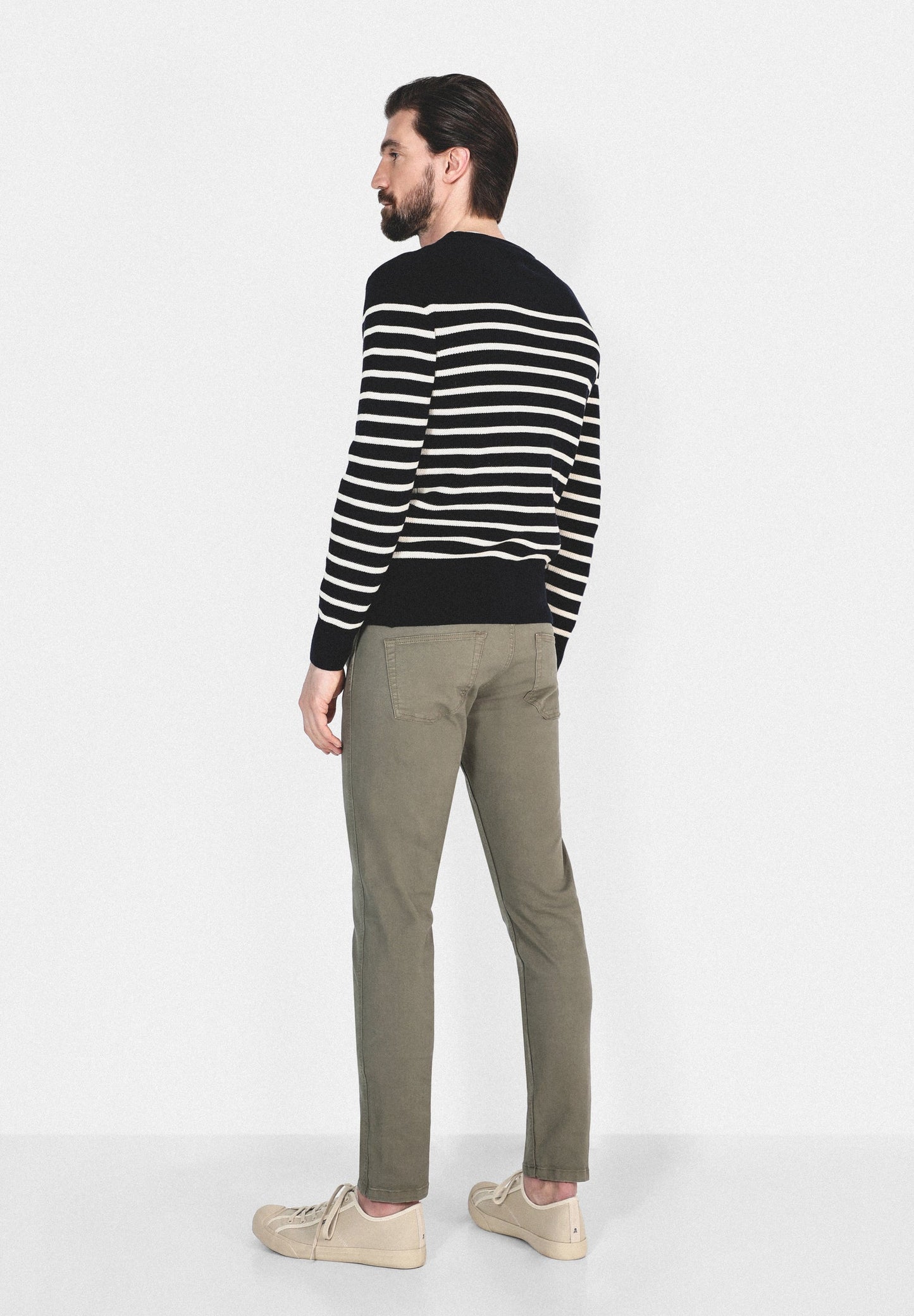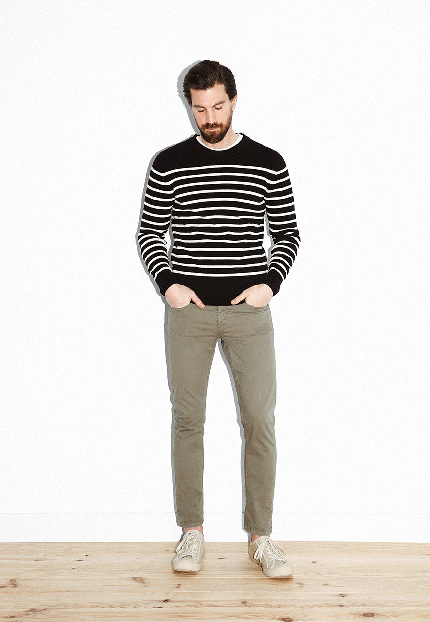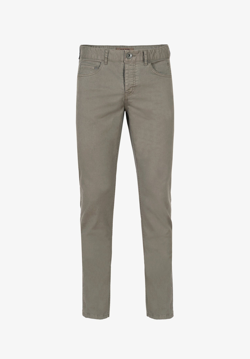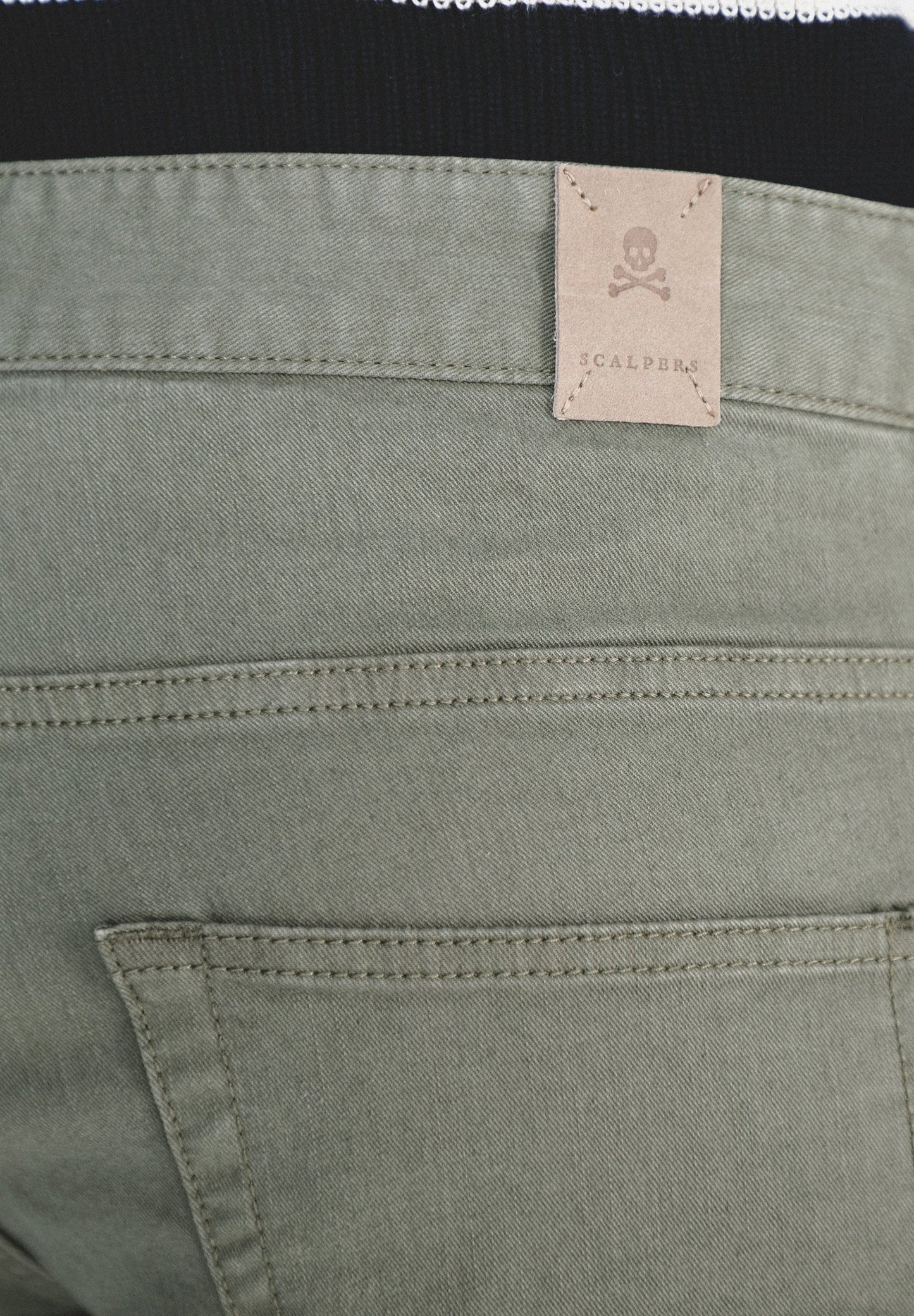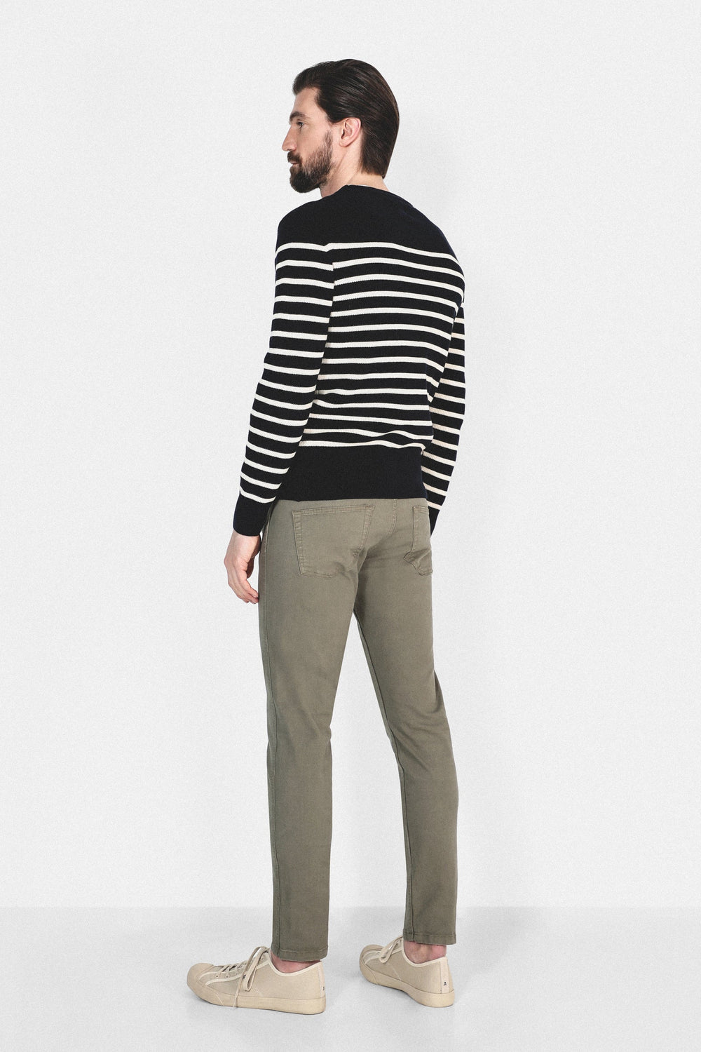 Pantalón confeccionado en tejido de algodón garment dyed. Corte Slim Fit, cierre con botón y cremallera. Cinco bolsillos y trabillas. Logo bordado en el bolsillo.