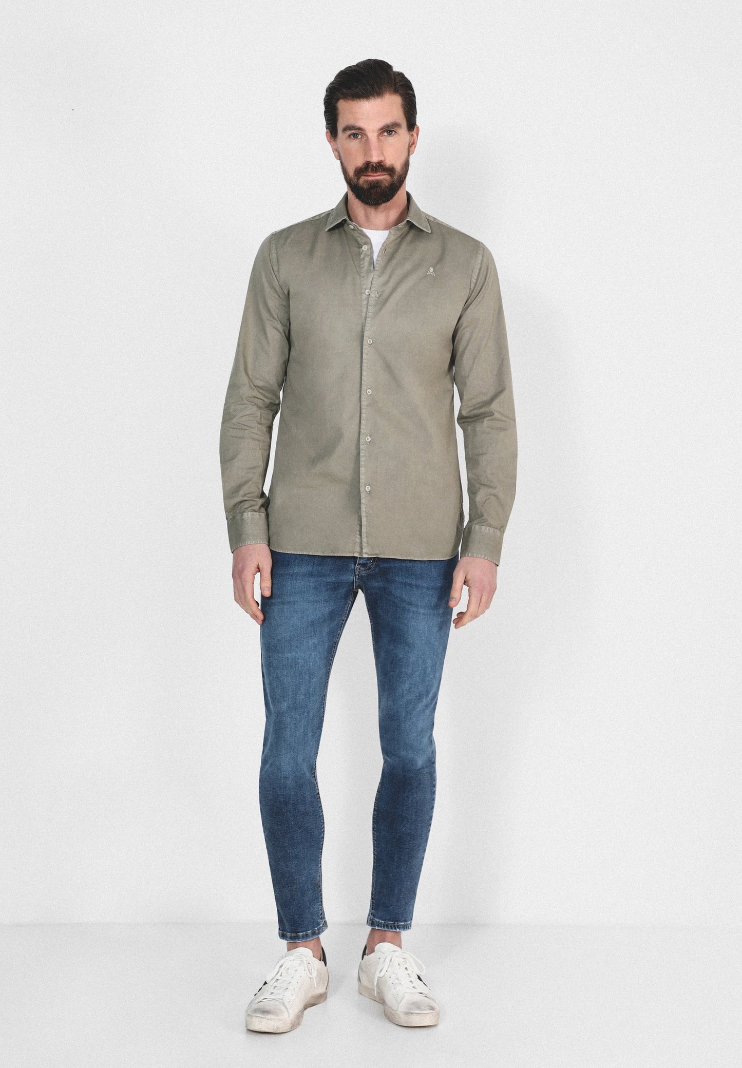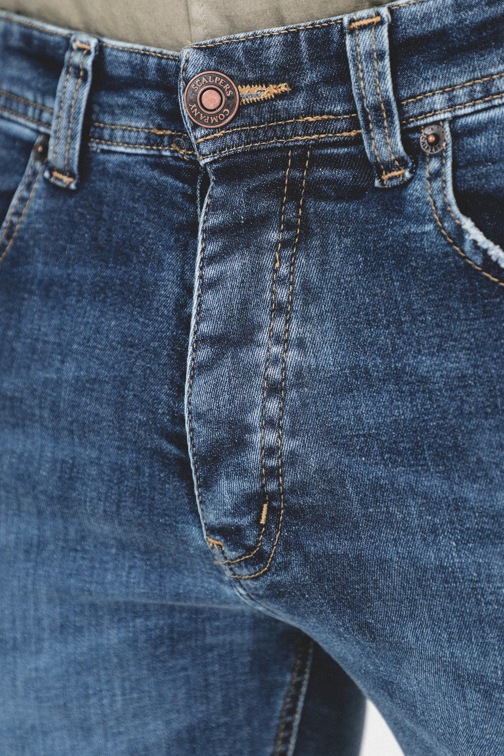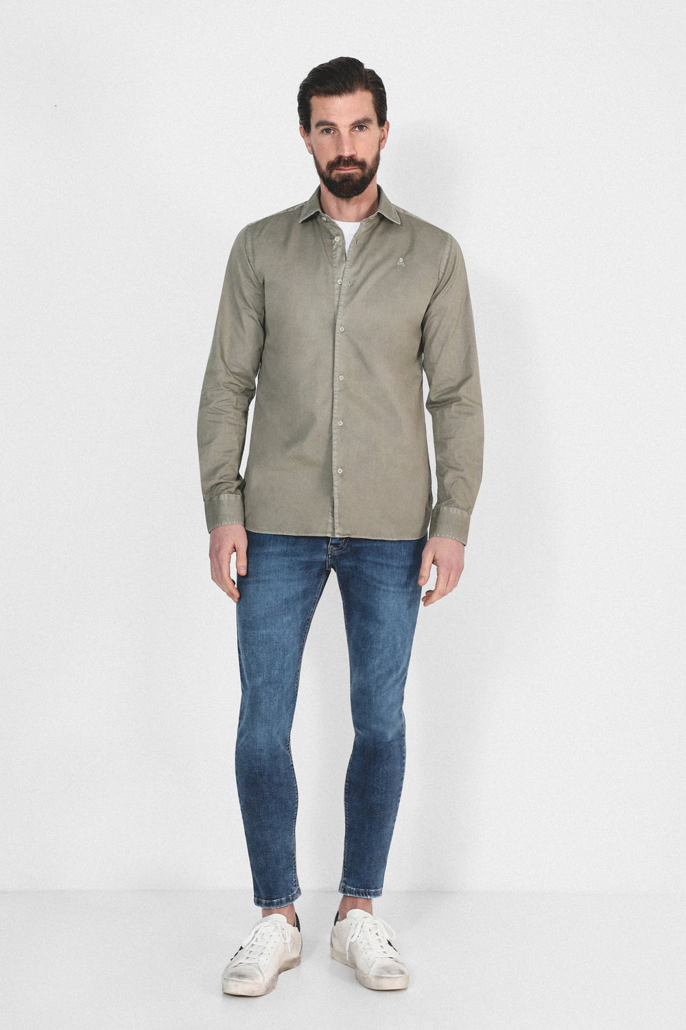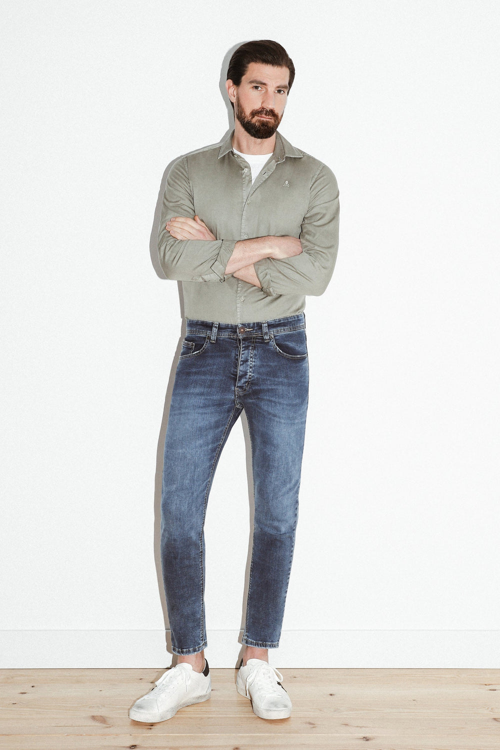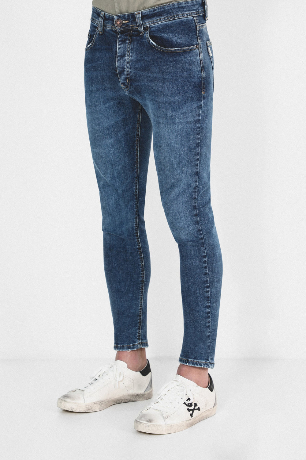Jeans confeccionados en tejido denim. Corte Slim Fit skinny con tiro medio y cierre con botón y cremallera. Bolsillos delanteros y traseros. Tiene trabillas.