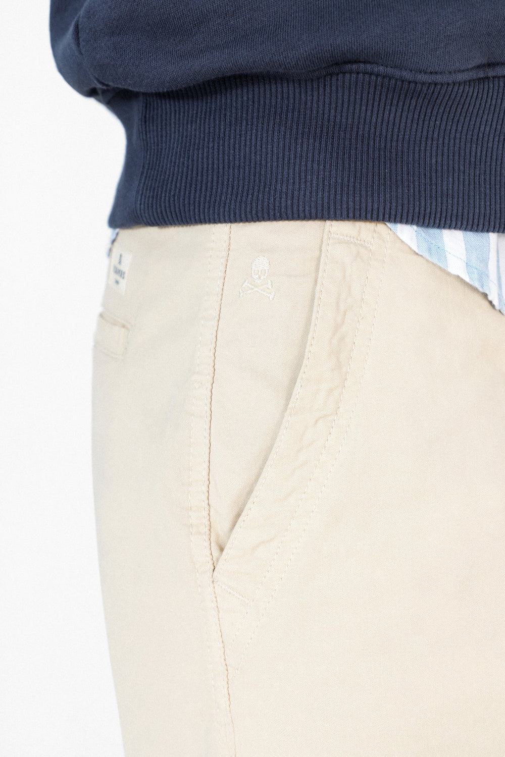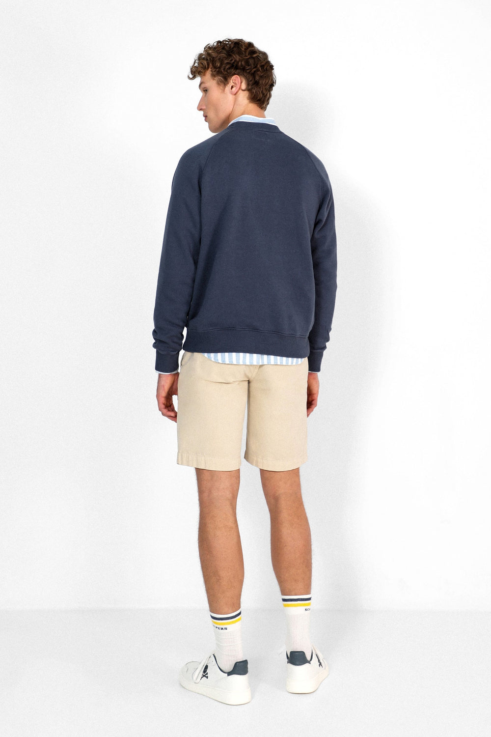 Bermudas confeccionadas en tejido 100% algodón. Corte Regular Fit y cierre con botones. Tiene bolsillos laterales y bolsillos traseros. Tiene trabillas.