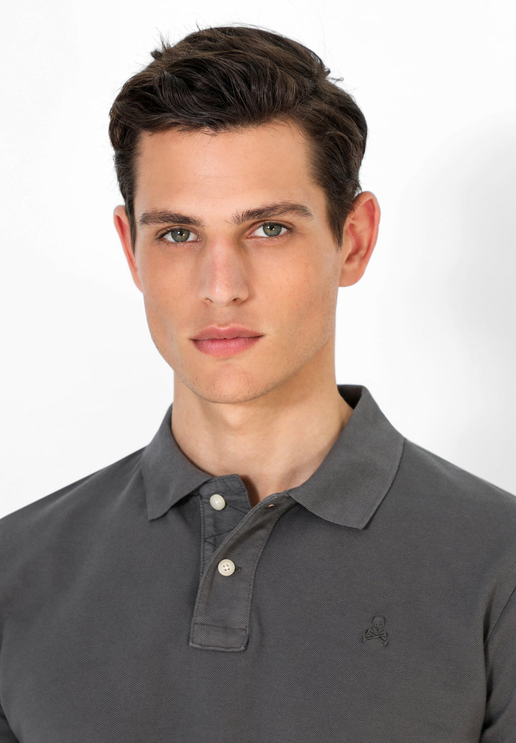 Polo confeccionado en tejido 100% algodón. Corte Regular Fit, cuello clásico y cierre con botones. Manga corta y detalle de calavera a tono.