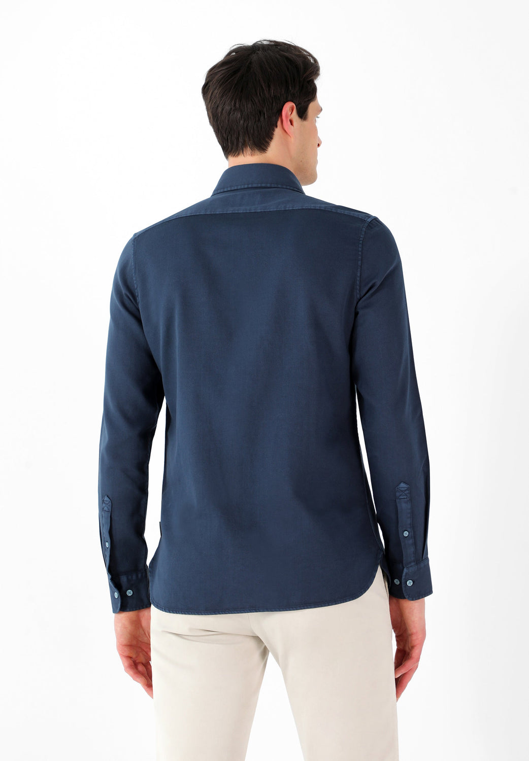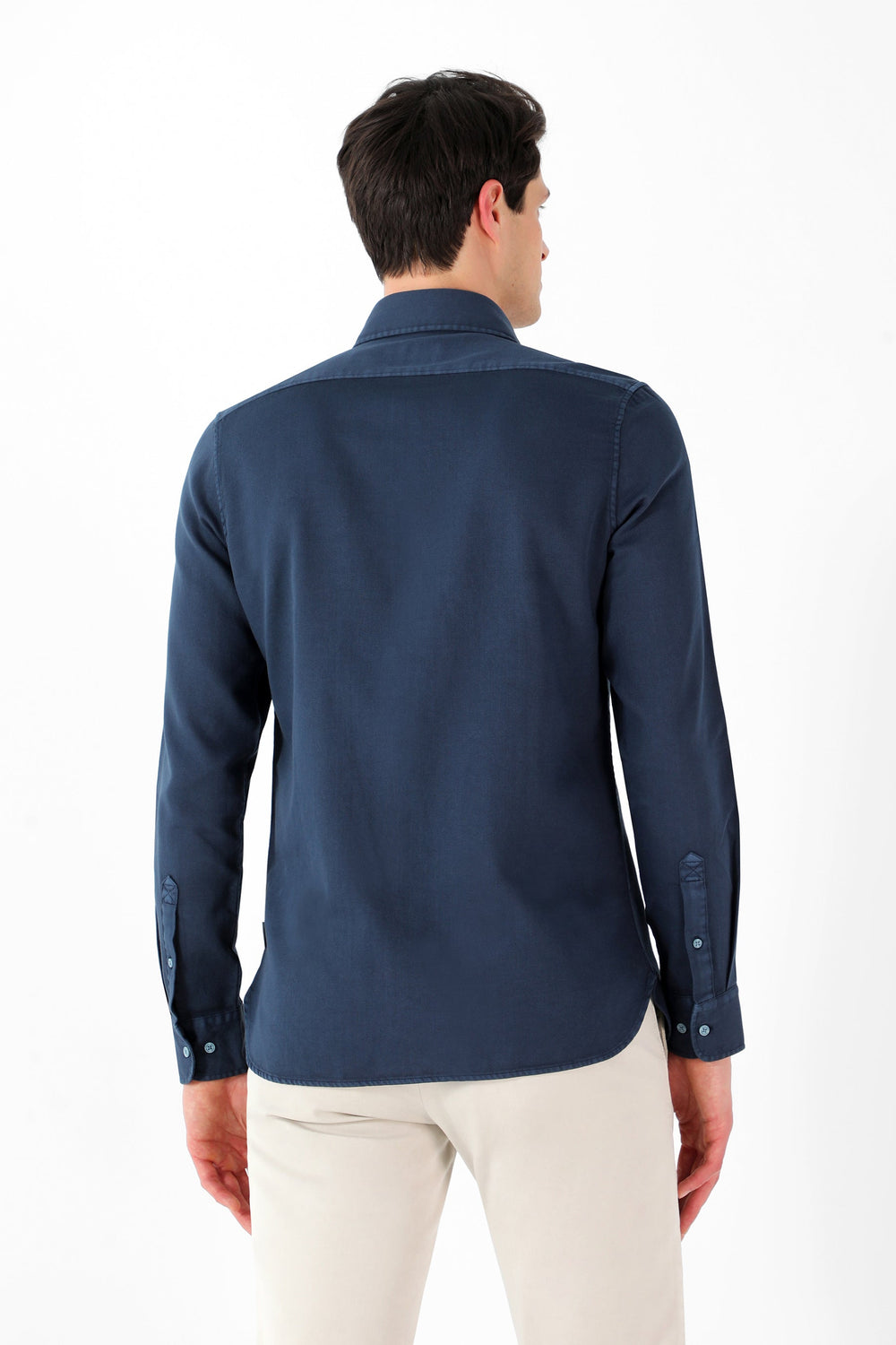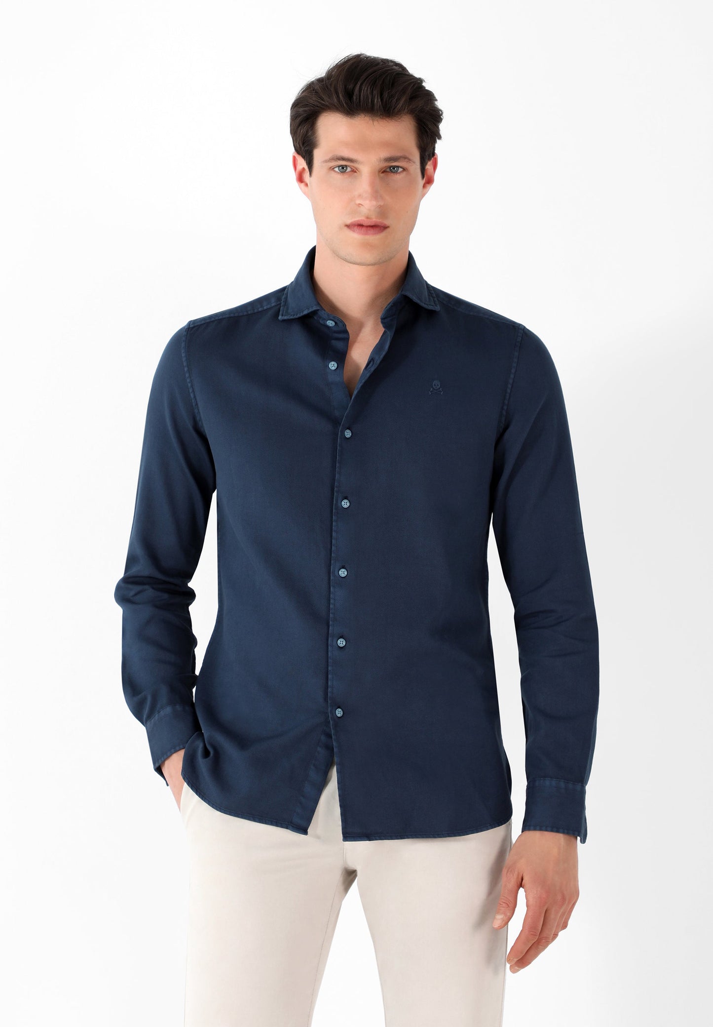 Camisa confeccionada en tejido 100% algodón tipo polo. Corte Regular Fit, cuello cutaway y cierre con botones. Manga larga terminada en puño con botones y detalle de calavera.