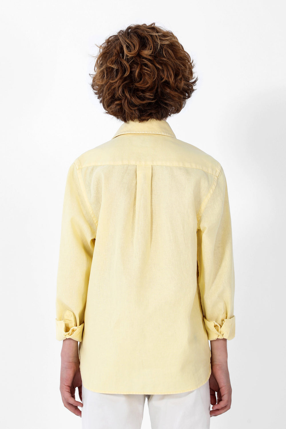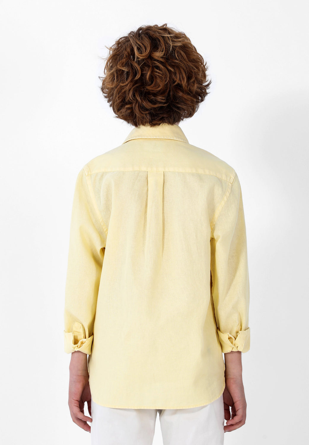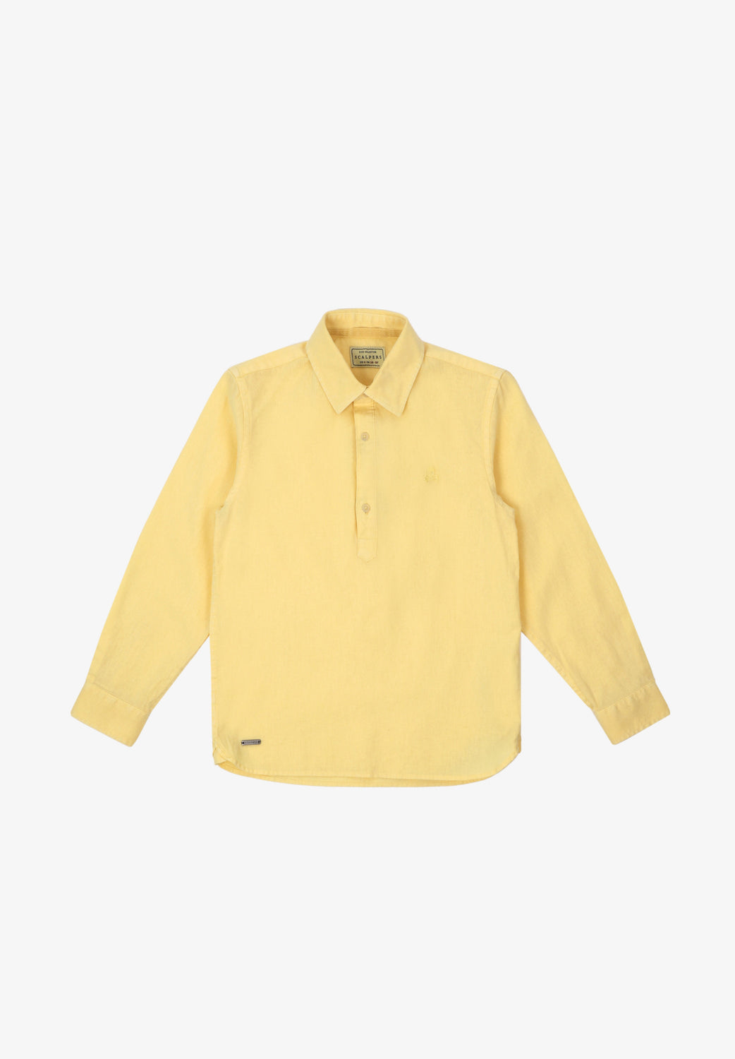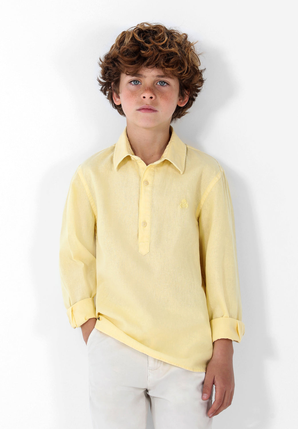 Camisa polera confeccionada en tejido mezcla de algodón orgánico y lino. Corte Regular Fit, cuello clásico y cierre con botones. Manga larga terminada en puño y detalle de calavera bordada a tono.