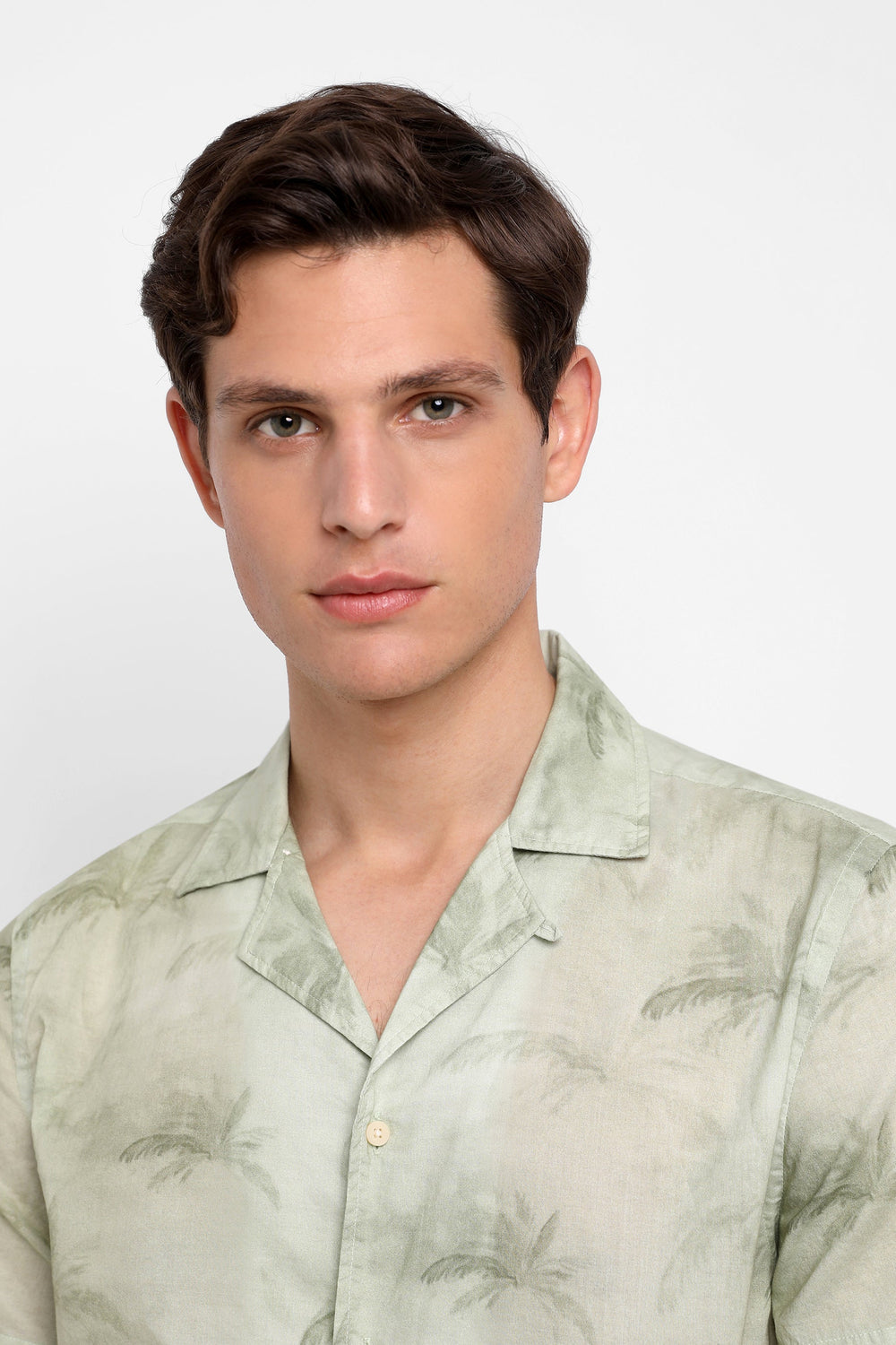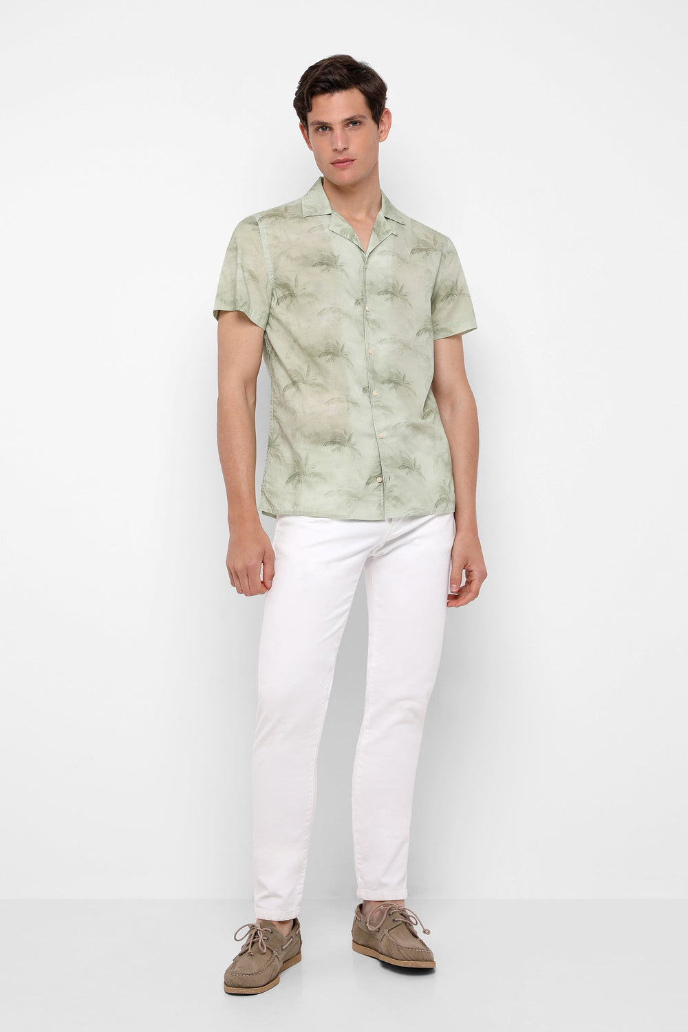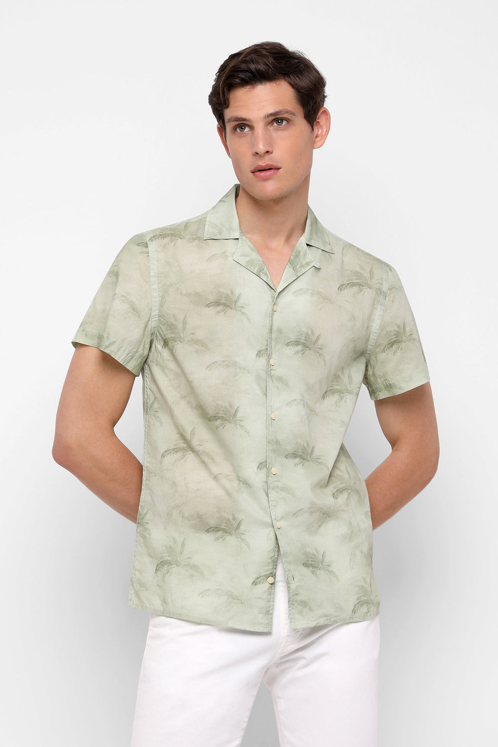 Camisa con estampado confeccionada en tejido 100% algodón. Corte Regular Fit, cuello cutaway y cierre con botones.