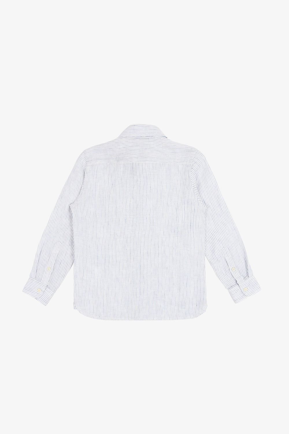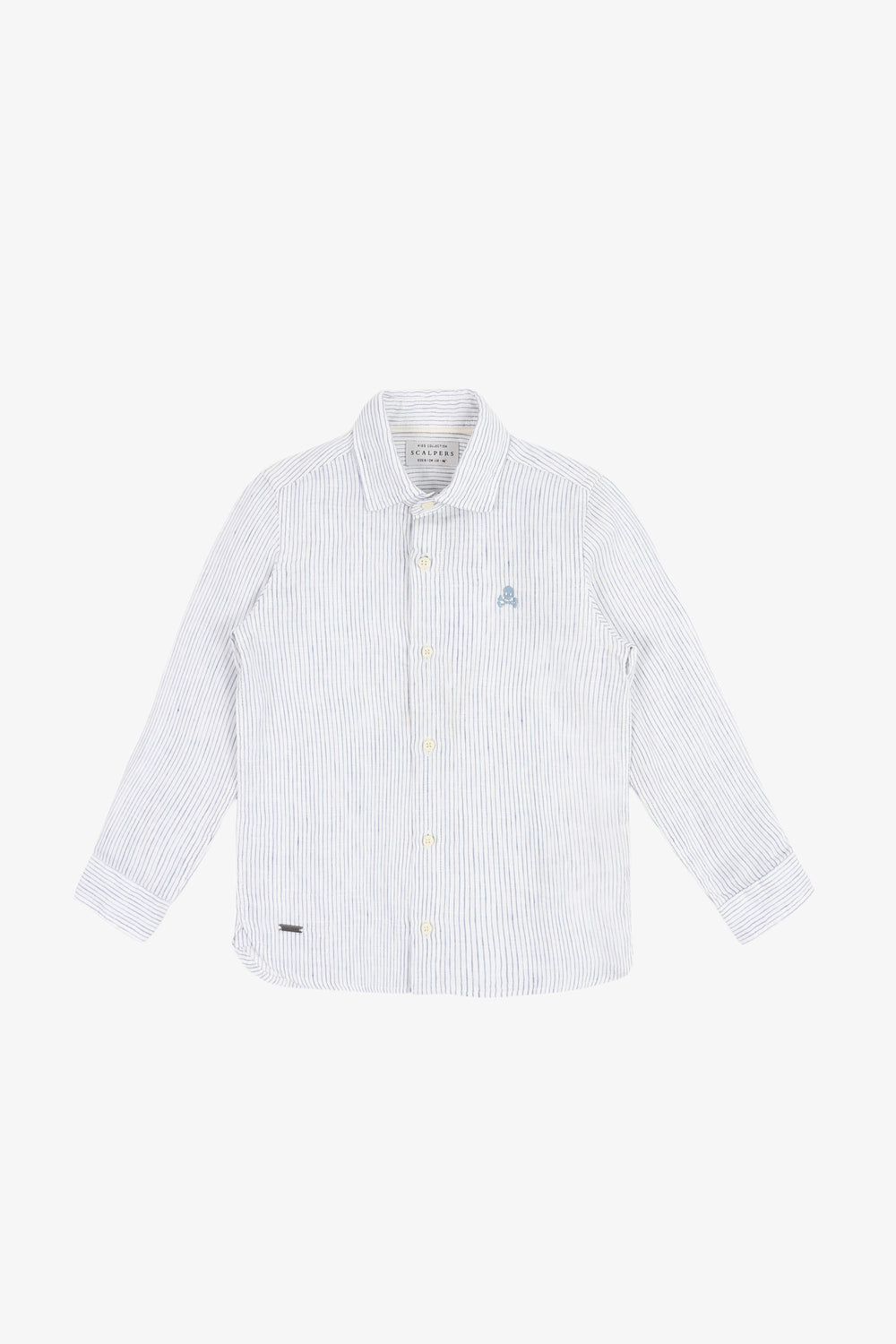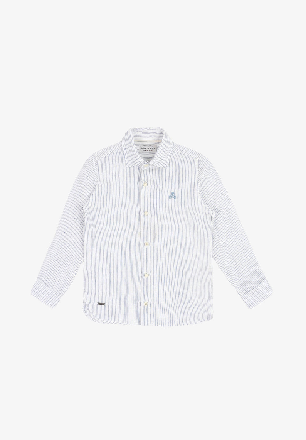 Camisa confeccionada en tejido 100% lino. Corte Regular Fit, cuello cutaway y cierre con botones. Manga larga terminada en puño con botones y detalle de calavera bordada a contraste.