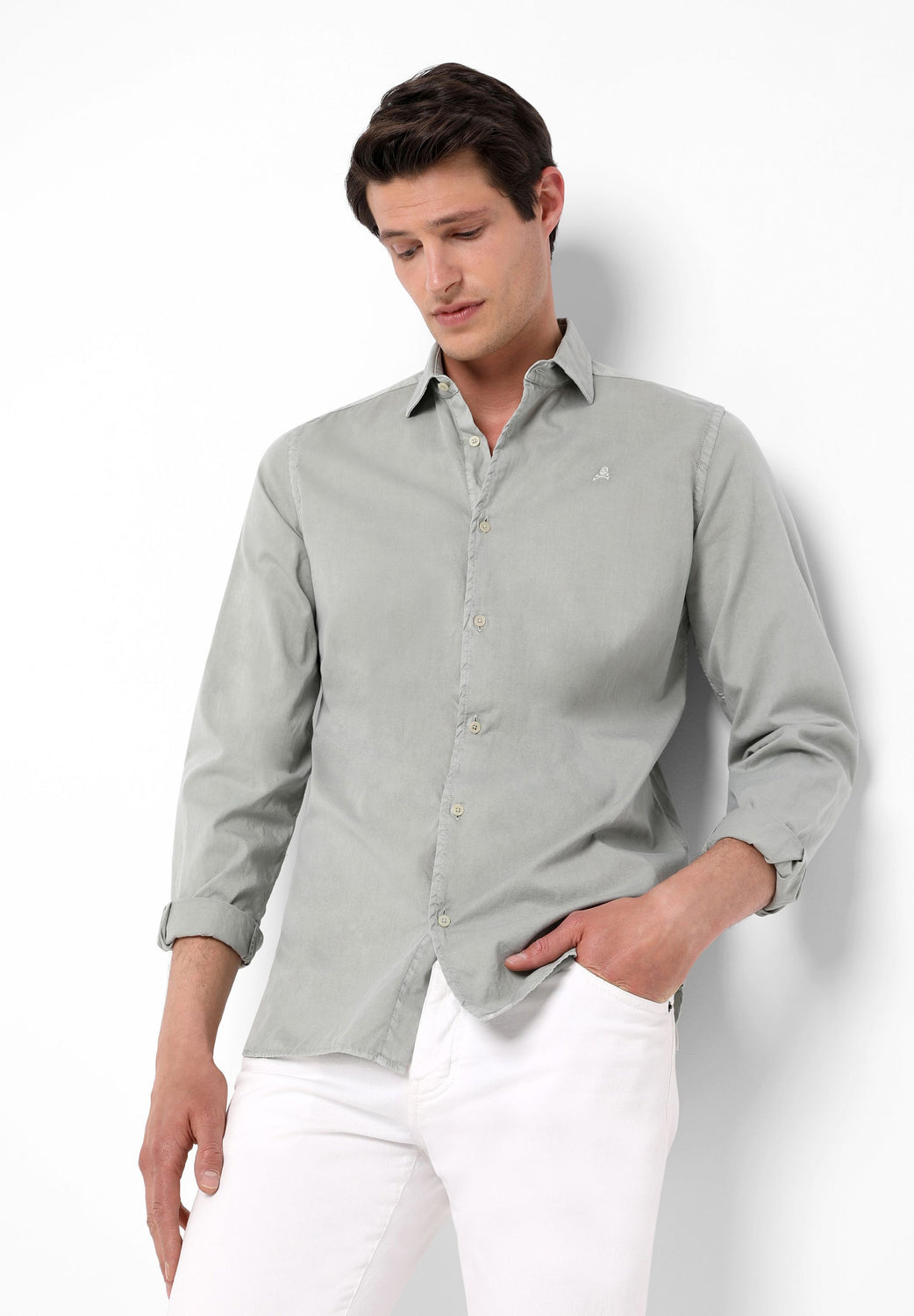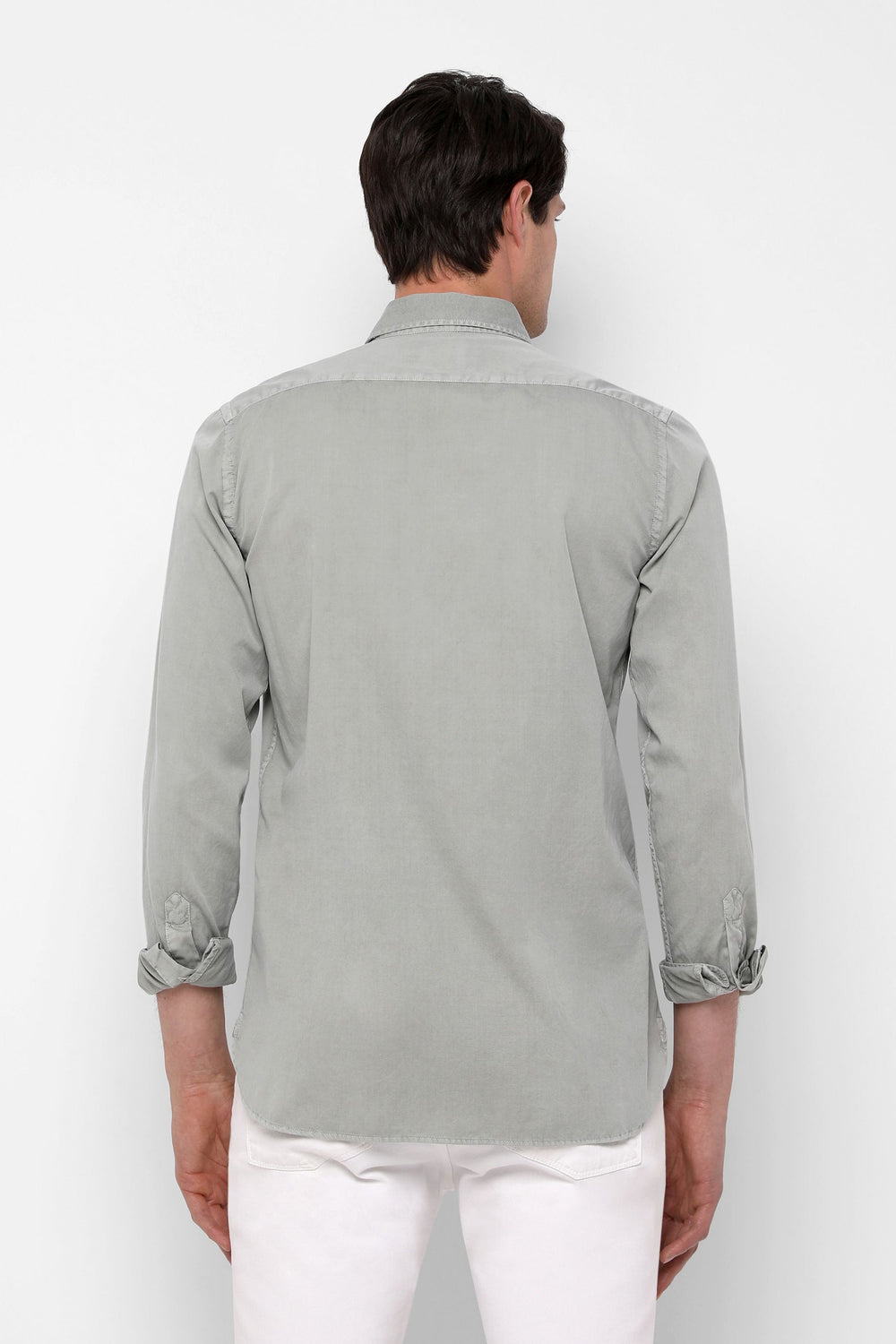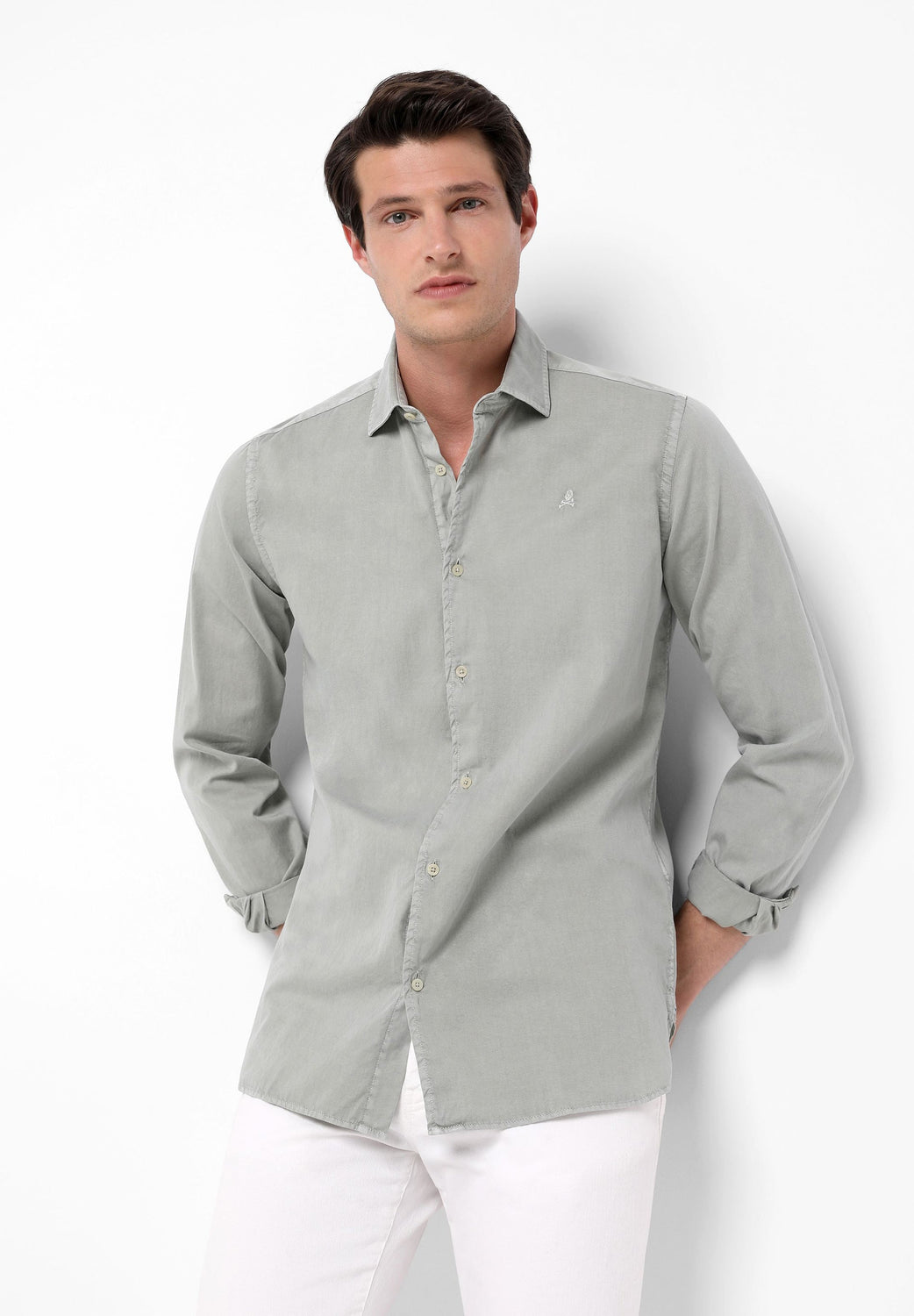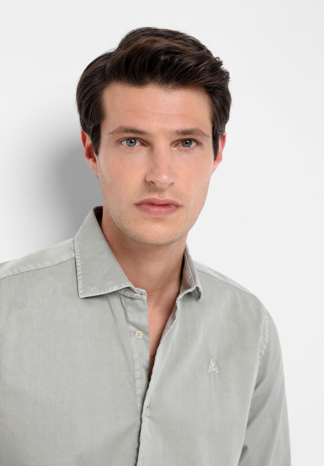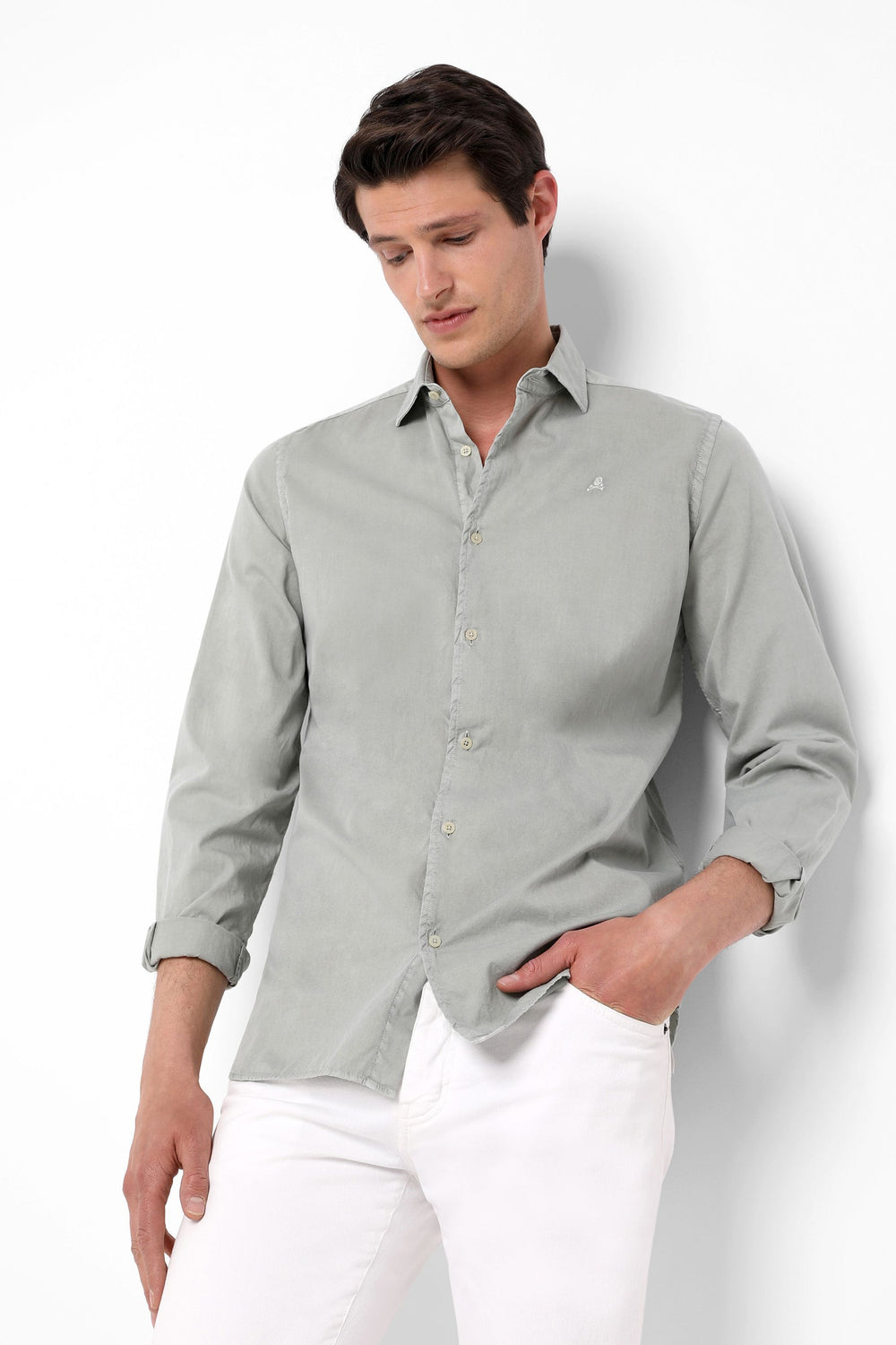 Camisa confeccionada en tejido 100% algodón. Corte Regular Fit, cuello italiano y cierre con botones sin tapeta. Manga larga terminada en puño simple. Detalle de calavera bordada en el pecho.