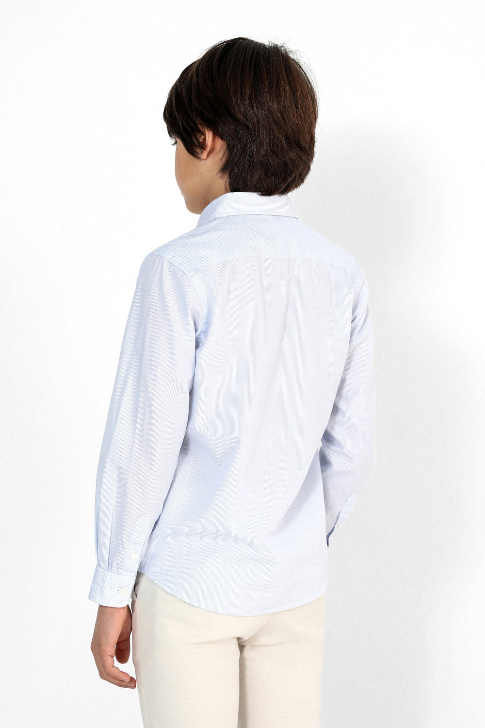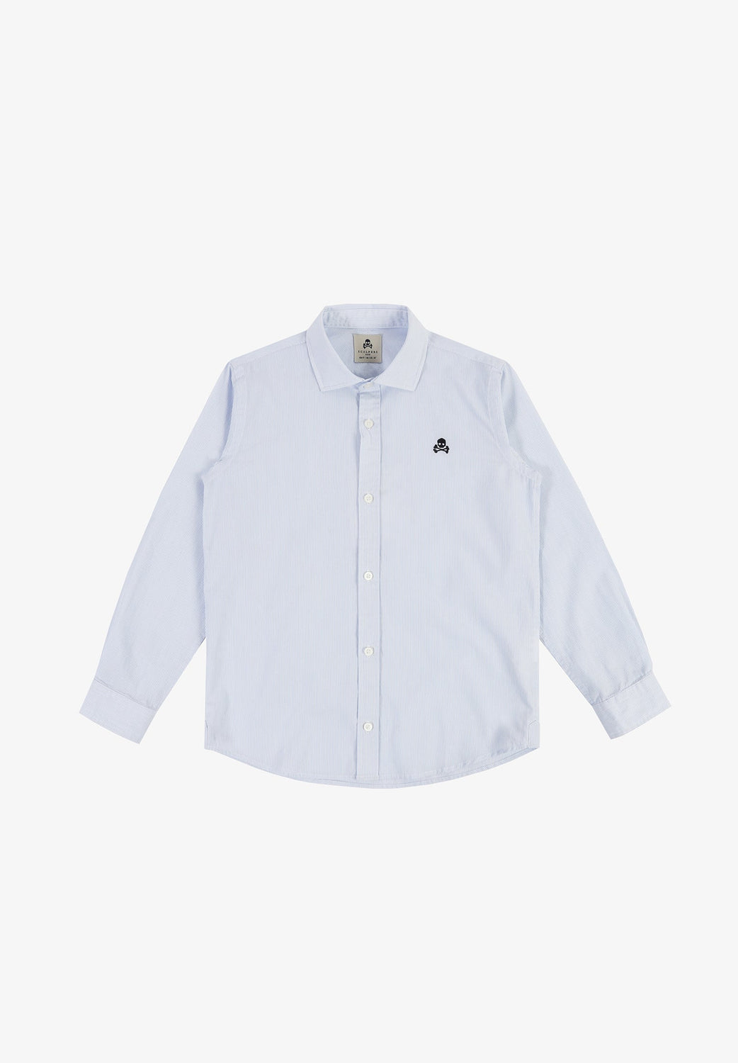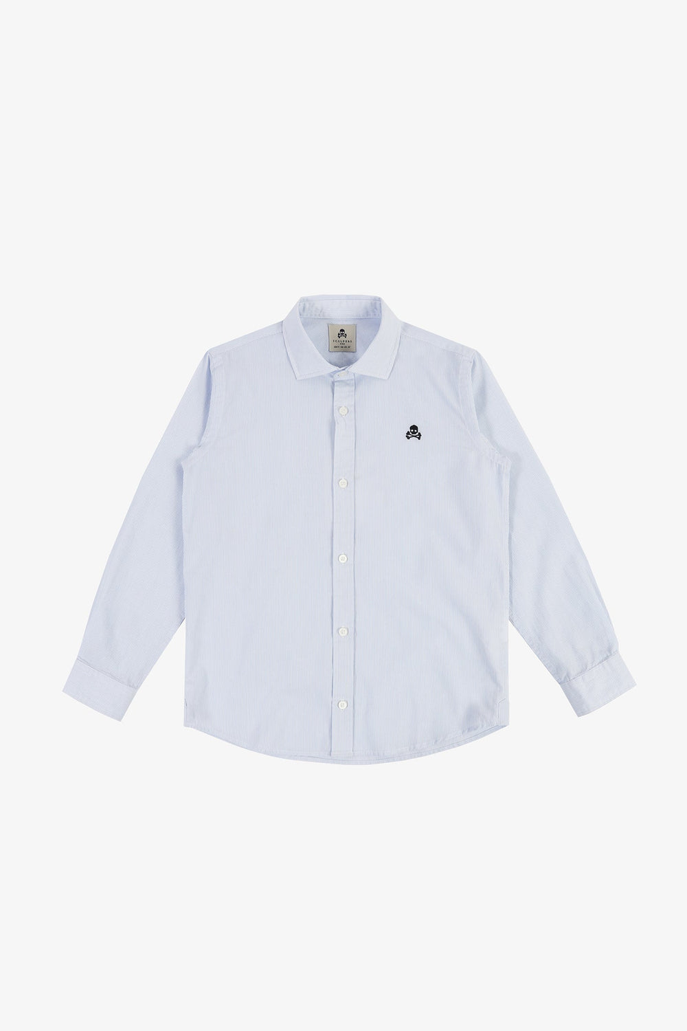 Camisa confeccionada en tejido 100% algodón orgánico. Corte Regular Fit, cuello cutaway y cierre con botones. Manga larga terminada en puño con botones y detalle de calavera a contraste.