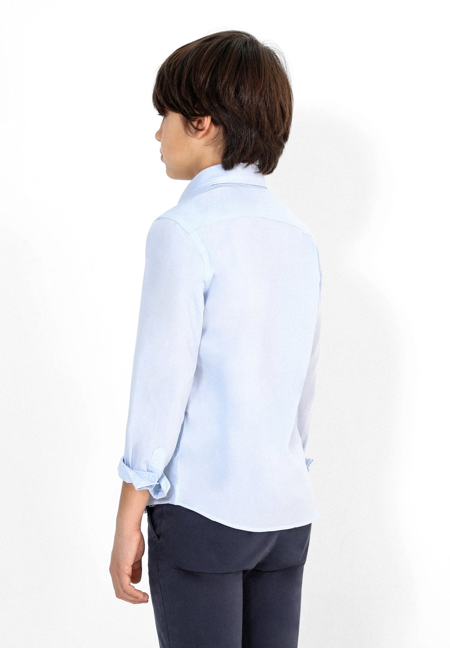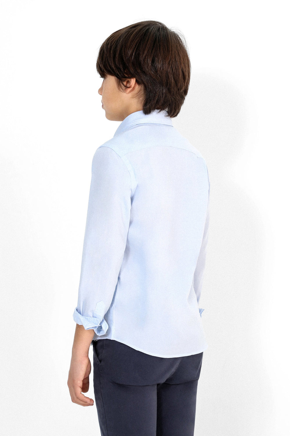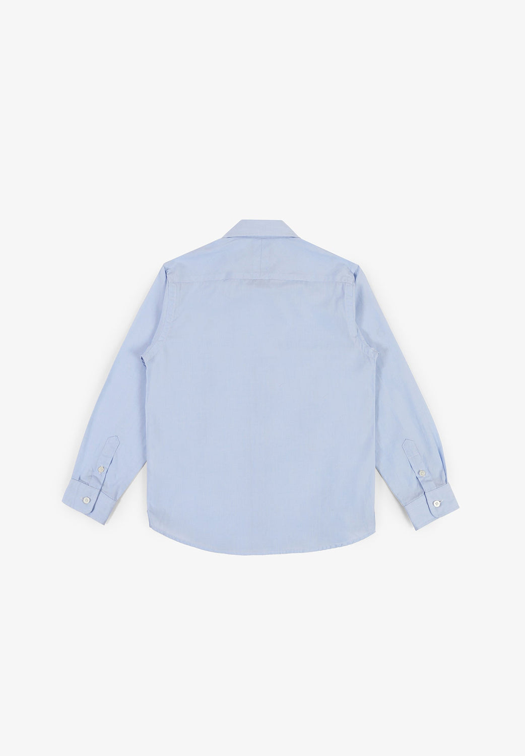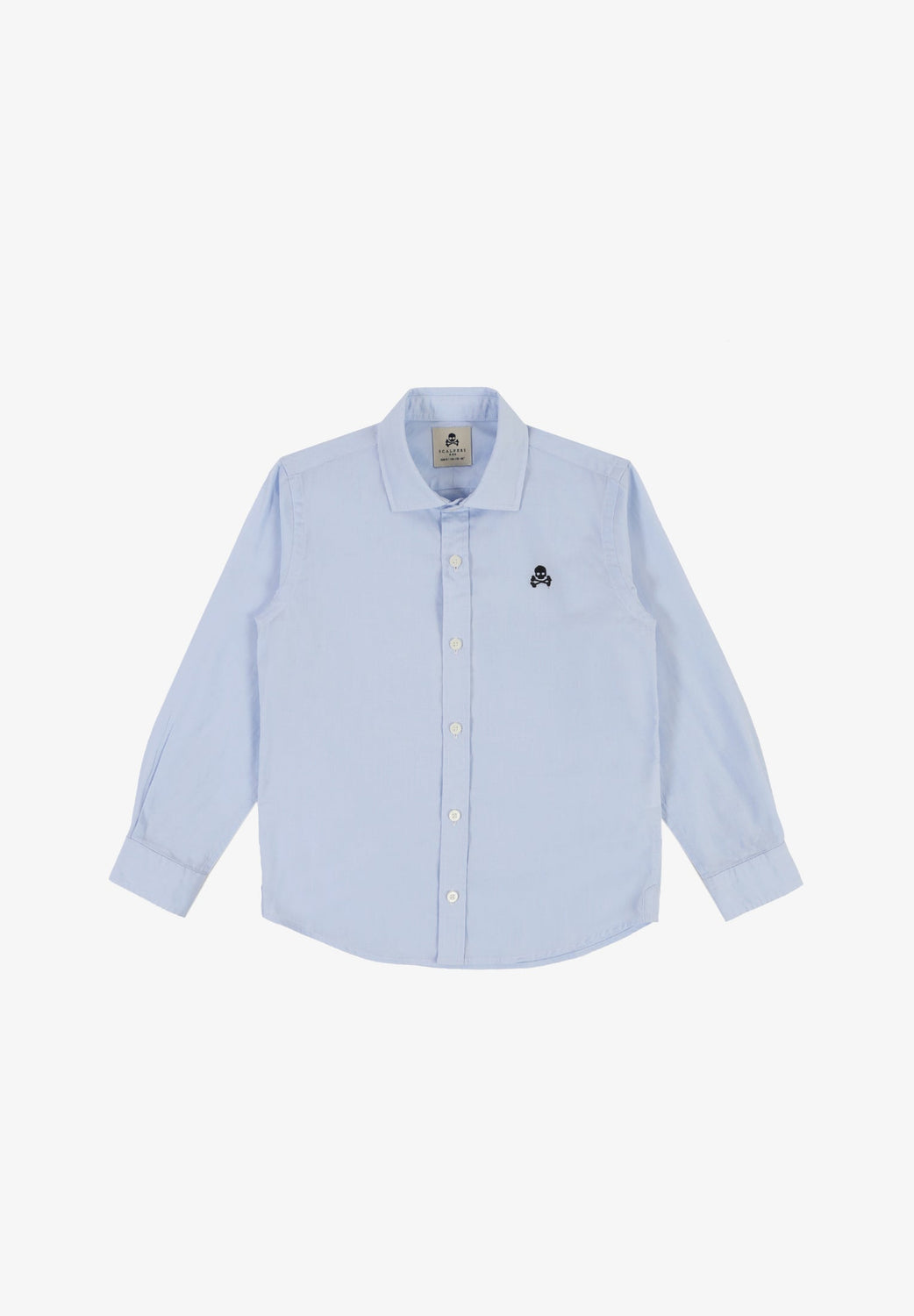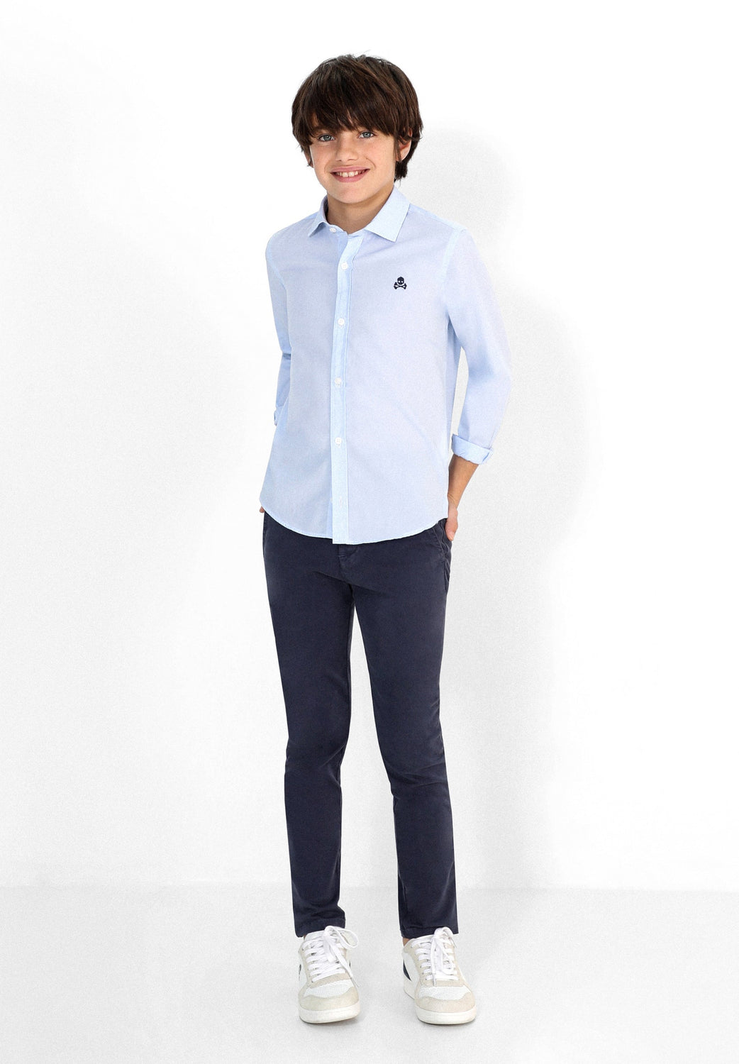 Camisa confeccionada en tejido 100% algodón orgánico. Corte Regular Fit, cuello cutaway y cierre con botones. Manga larga terminada en puño con botones y detalle de calavera a contraste.