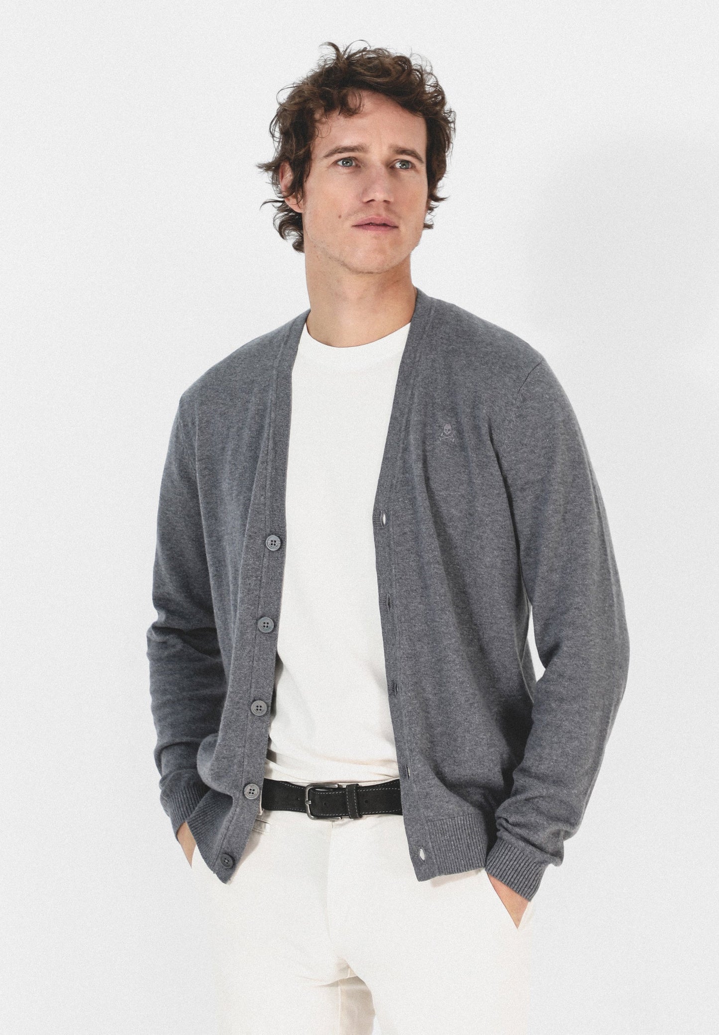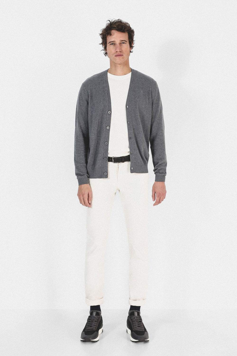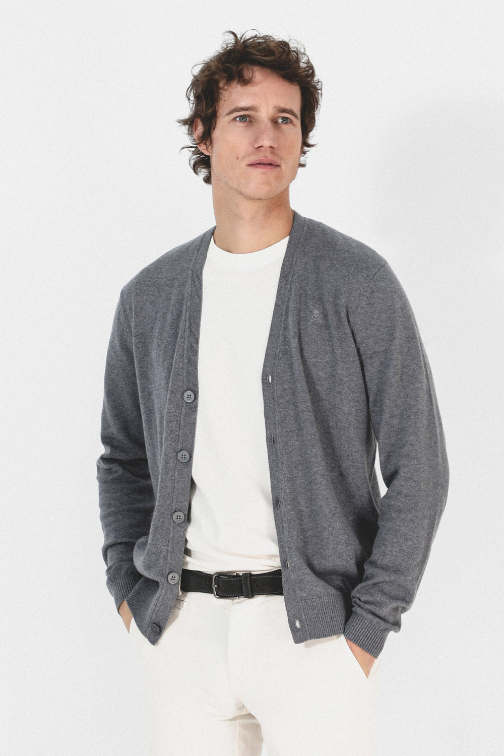 Cárdigan confeccionado en tejido mezcla de algodón BCI y cashmere. Corte Regular Fit, cuello de pico y cierre con botones. Manga larga y detalle de calavera a tono.