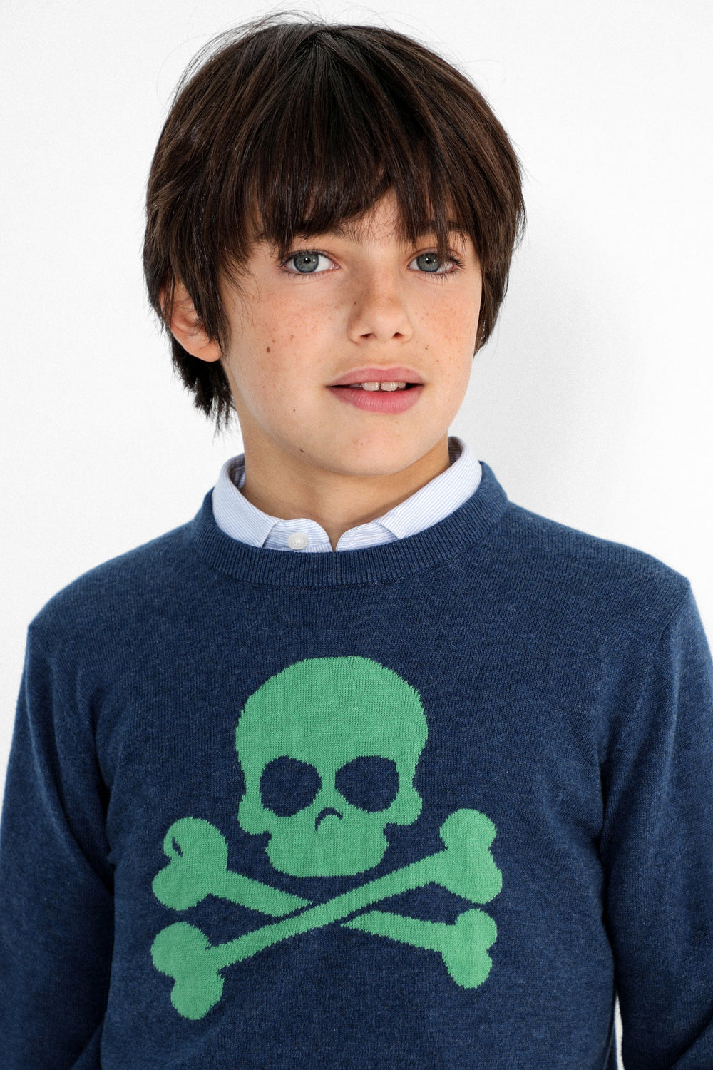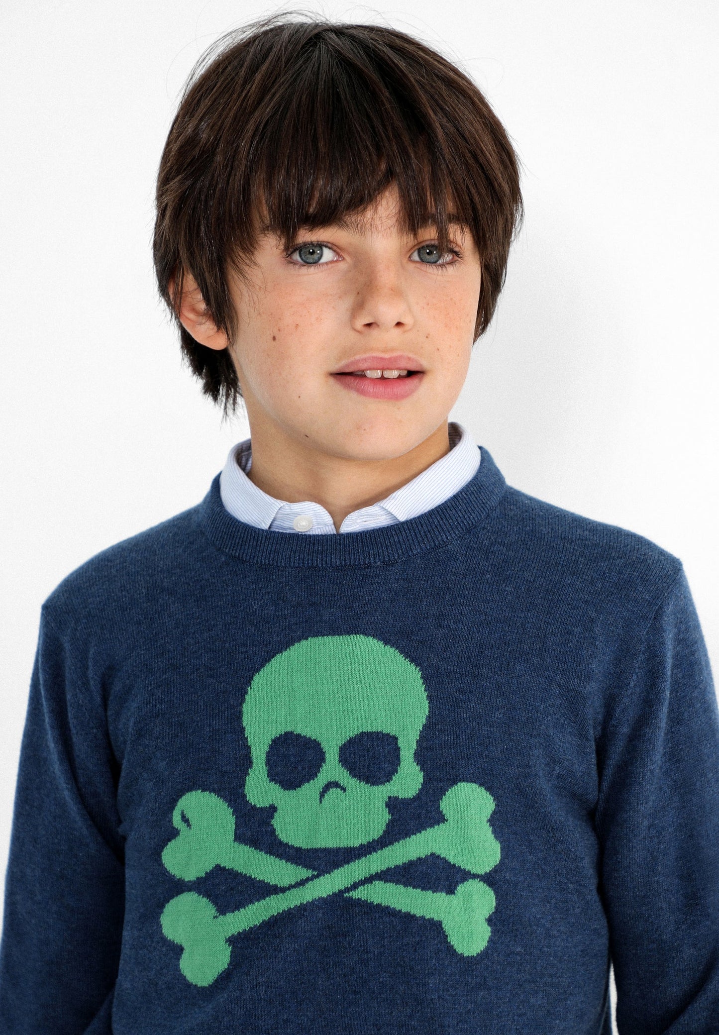 Jersey confeccionado en tejido 100% algodón BCI. Corte Regular Fit, cuello redondo y manga larga. Detalle de calavera frontal en intarsia.