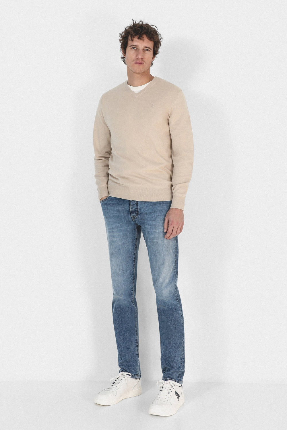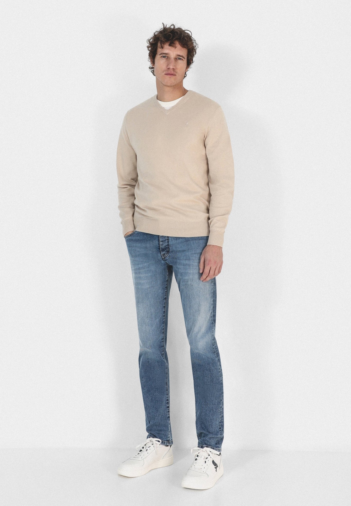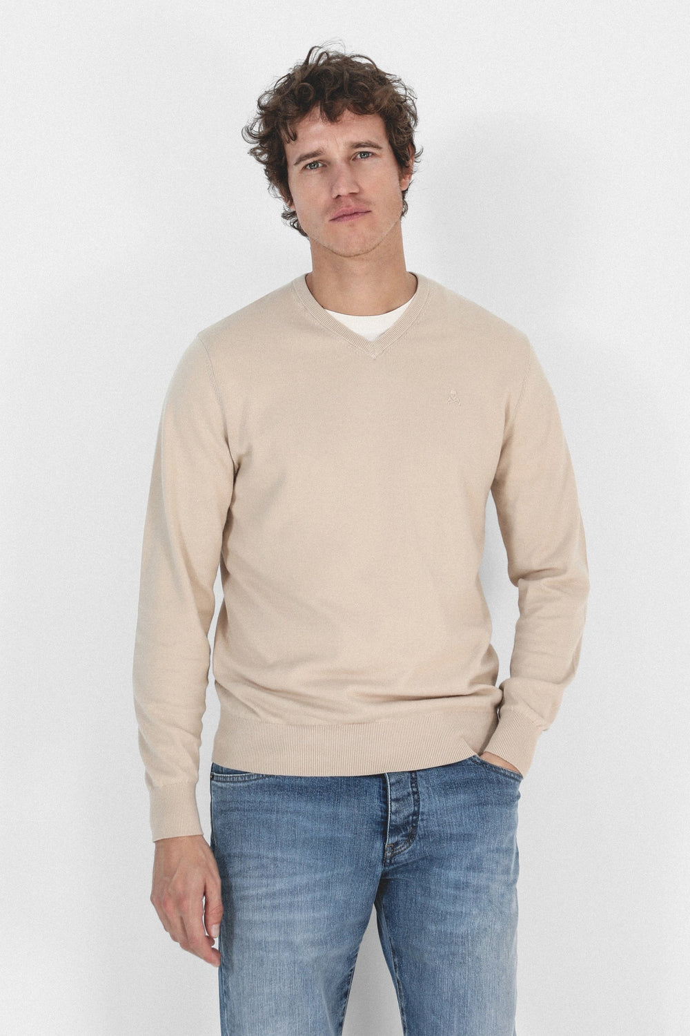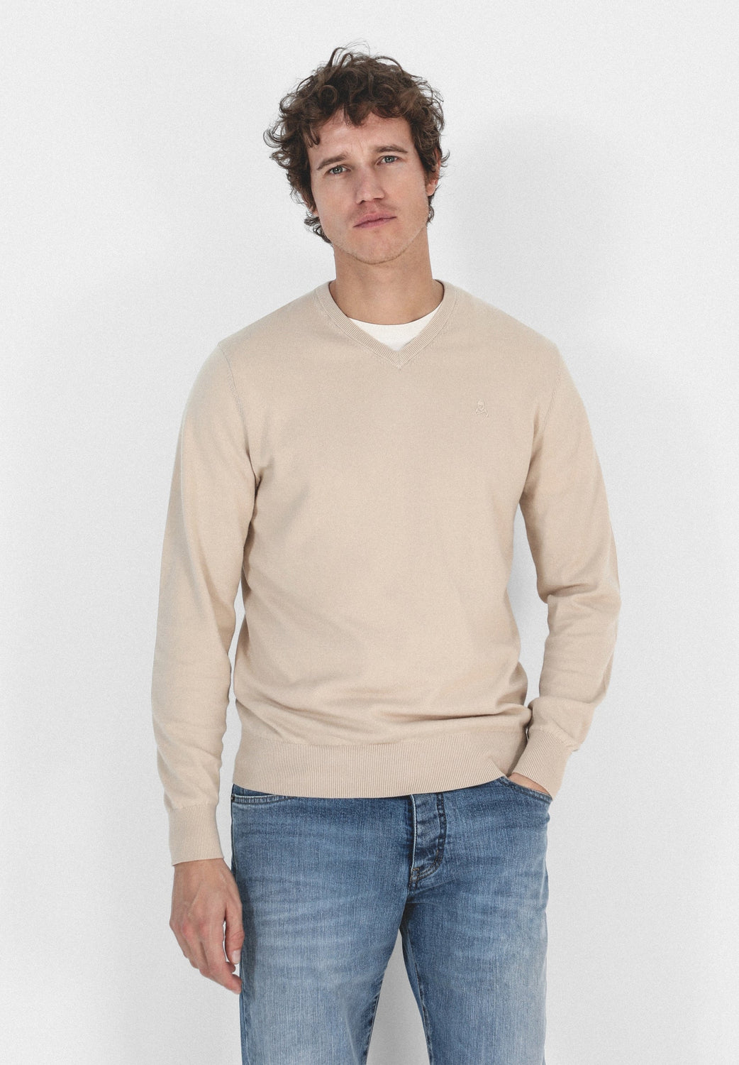Jersey confeccionado en tejido 100% algodón supima. Corte Regular Fit, cuello de pico y manga larga. Detalle de calavera bordada a tono.