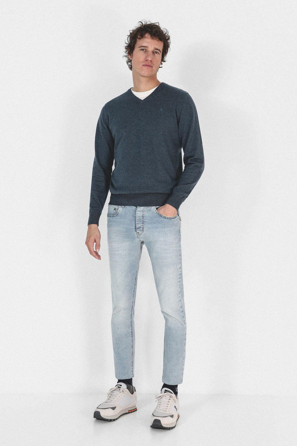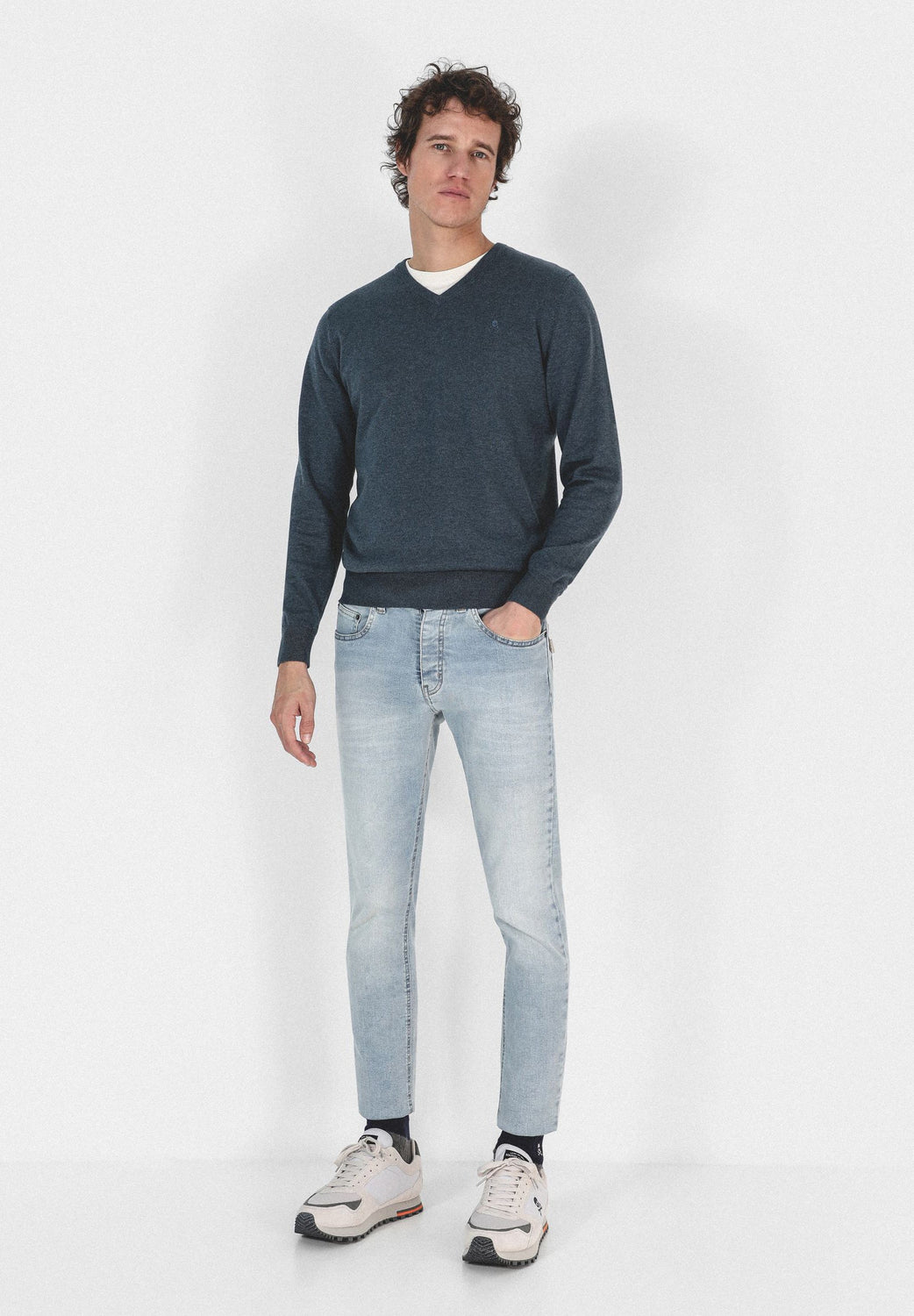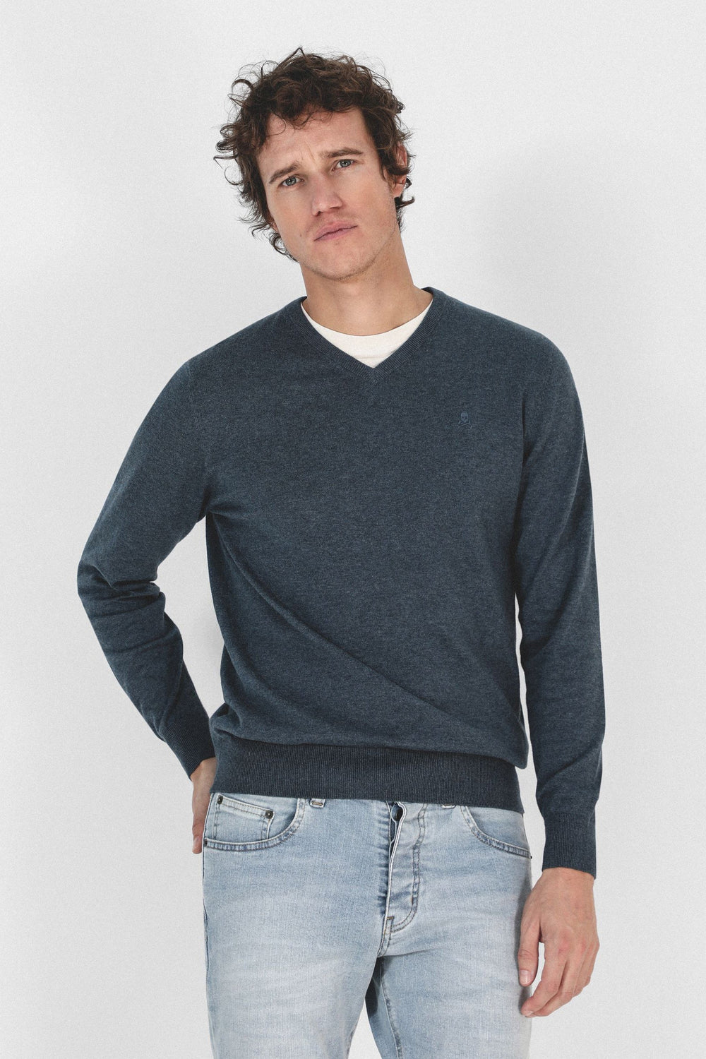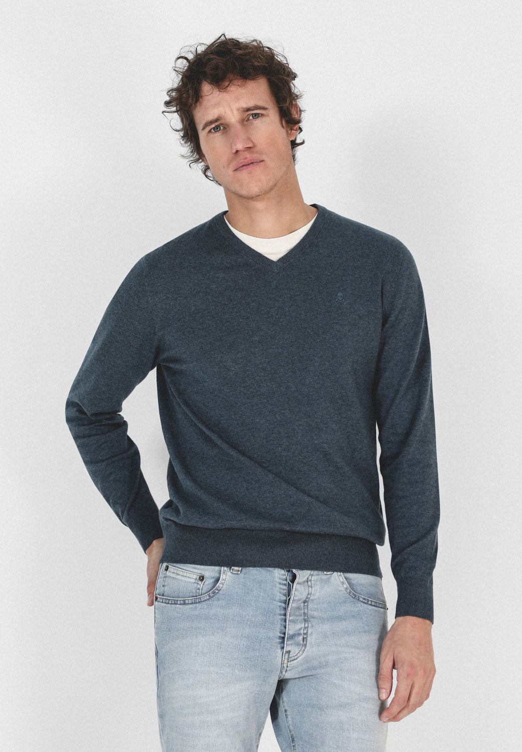 Jersey confeccionado en tejido 100% algodón supima. Corte Regular Fit, cuello de pico y manga larga. Detalle de calavera bordada a tono.