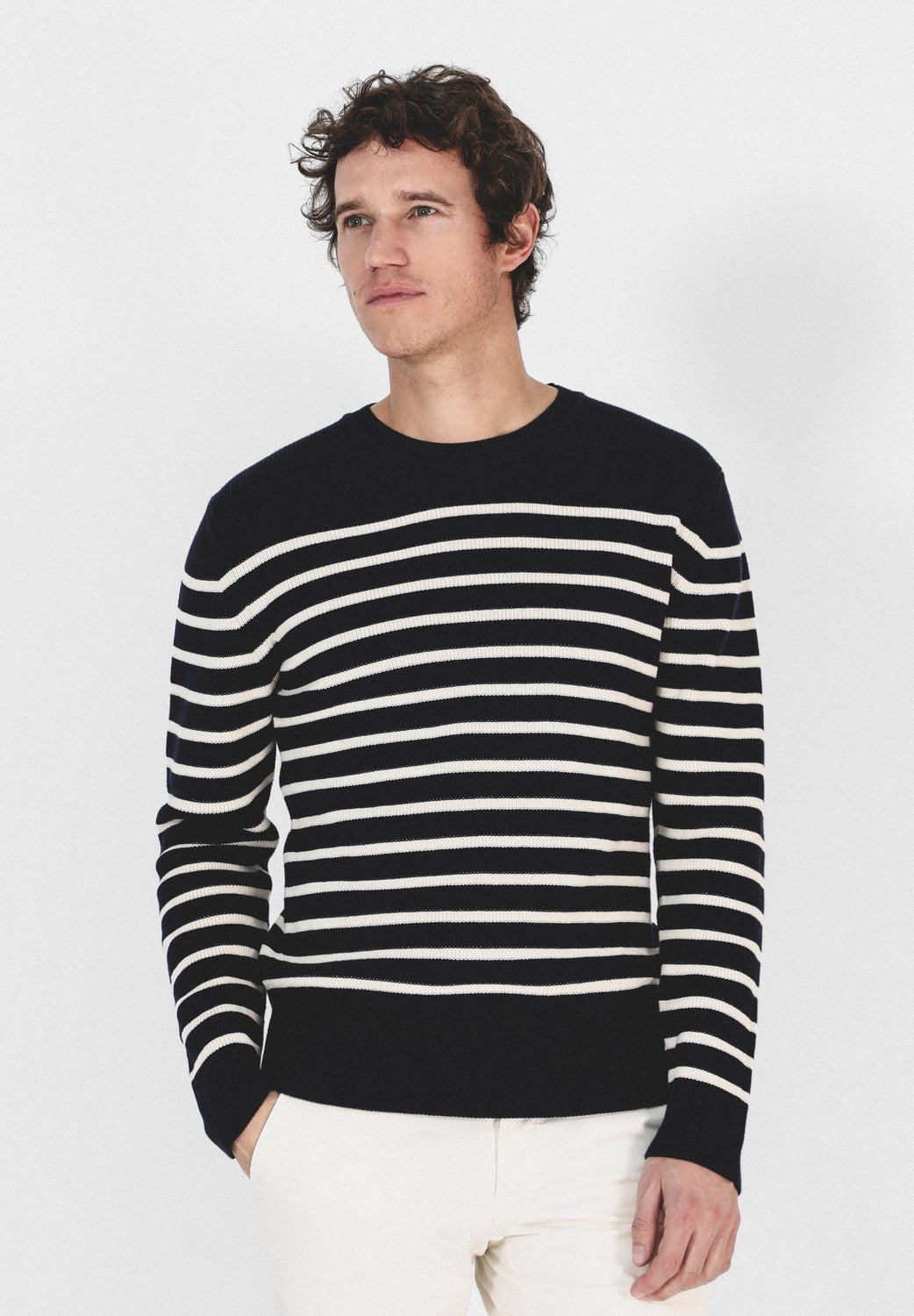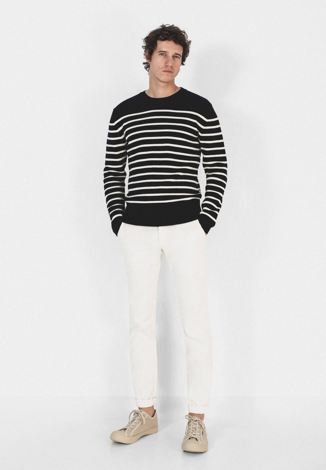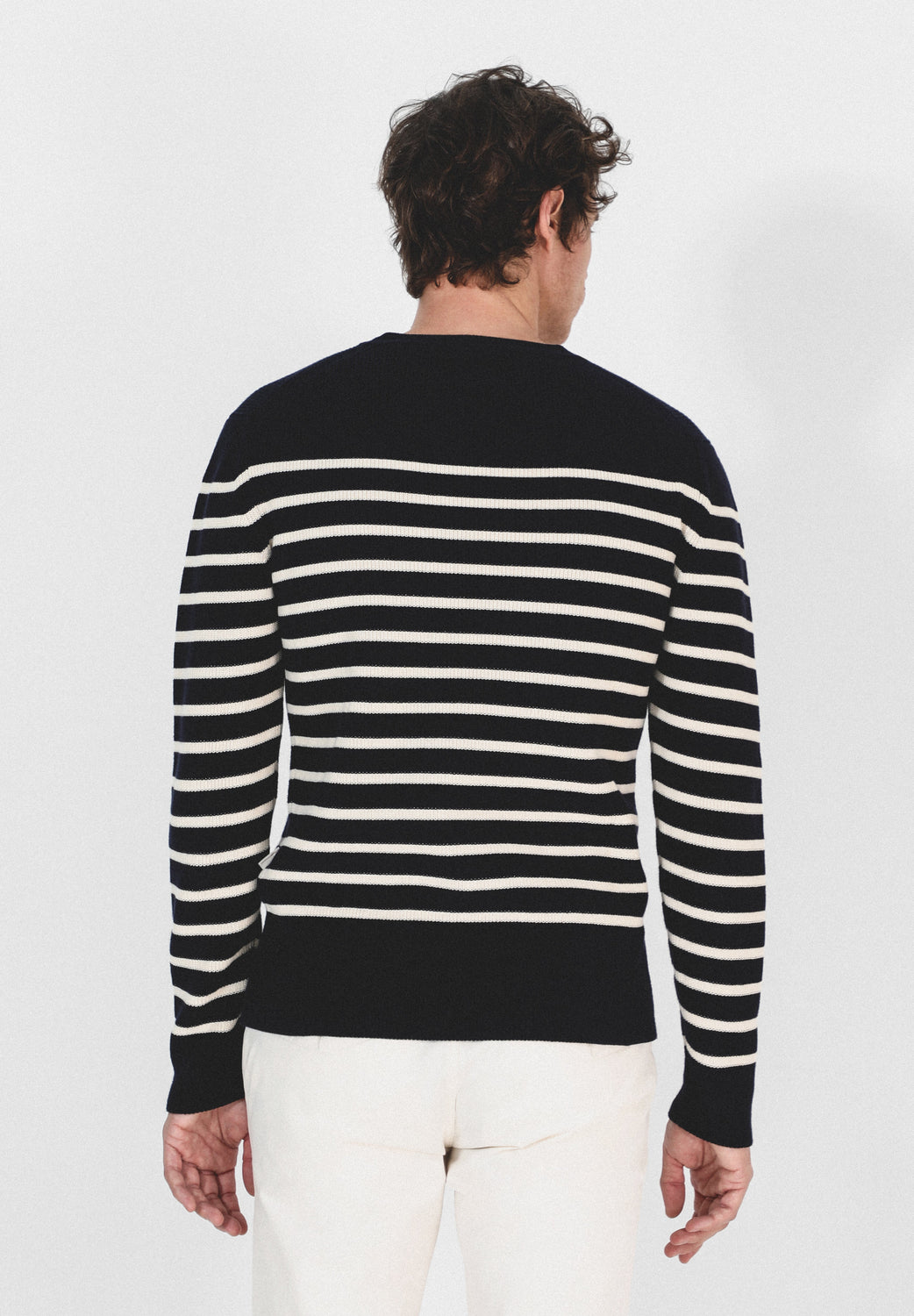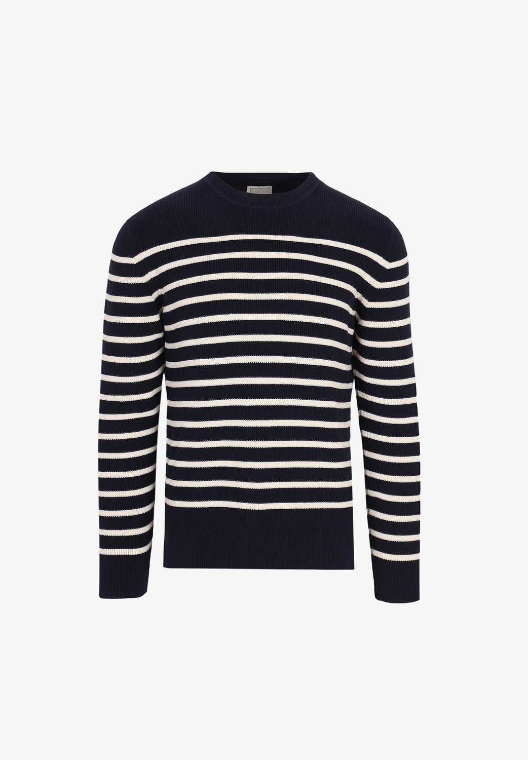 Jersey de rayas confeccionado en tejido 100% algodón. Corte Regular Fit, cuello redondo y manga larga.