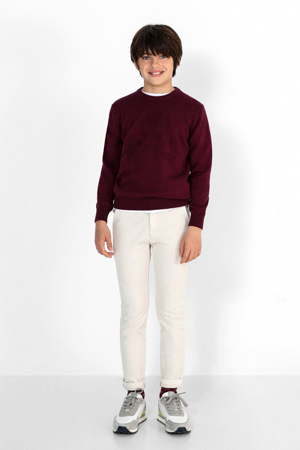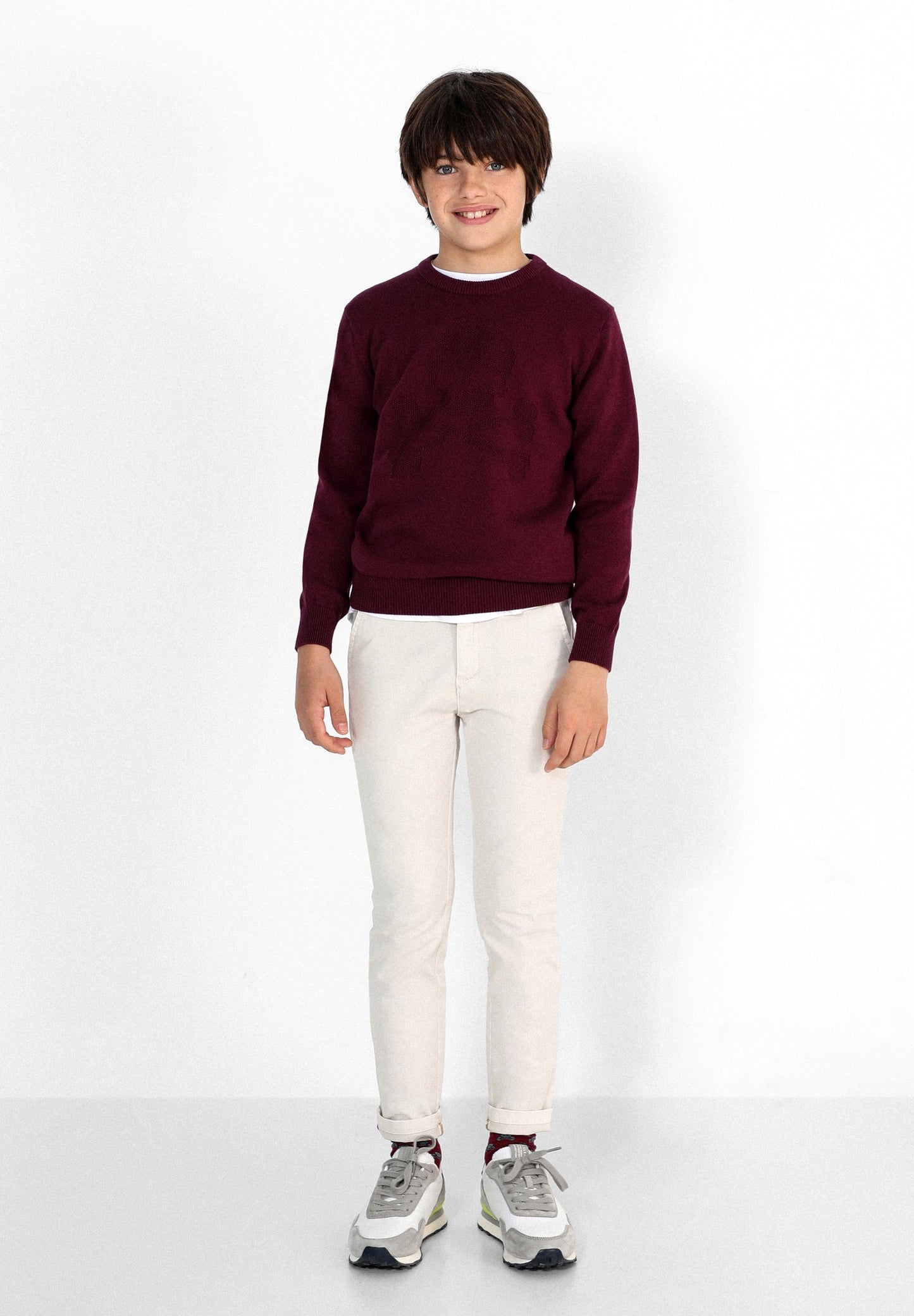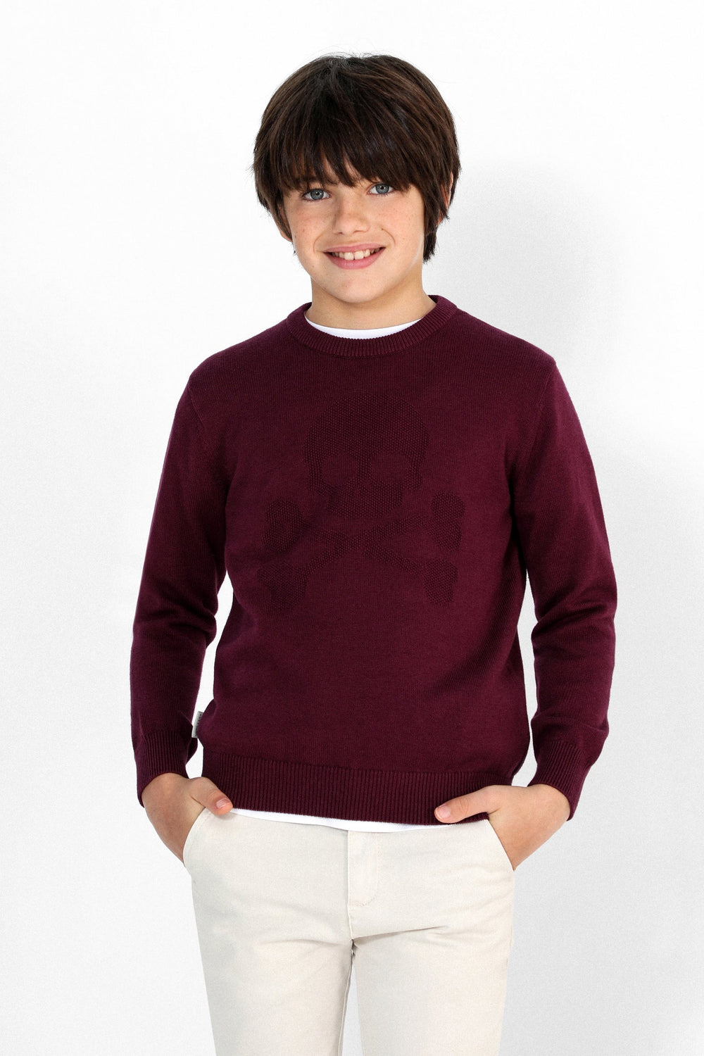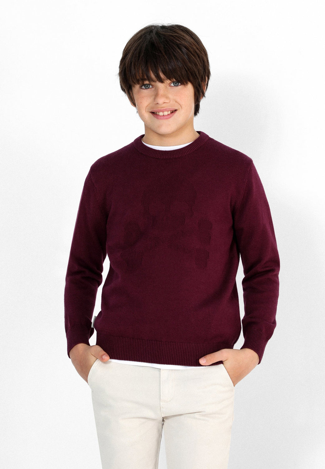 Jersey confeccionado en tejido algodón de estructura. Corte Regular Fit, cuello redondo y manga larga. Detalle de calavera en intarsia a tono.