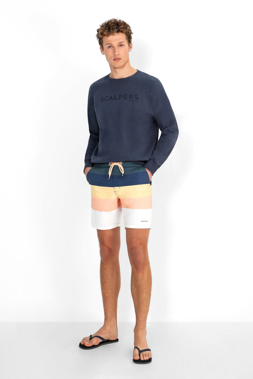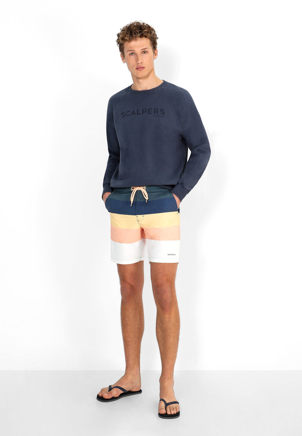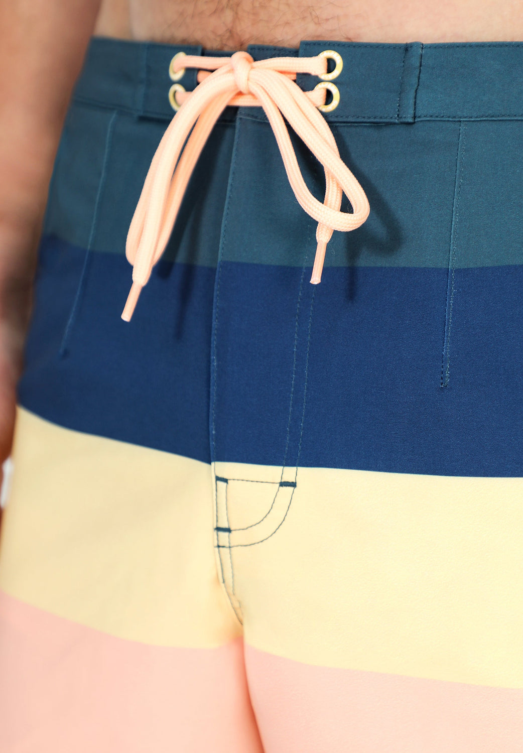 Bañador con rayas multicolor confeccionado en tejido de poliéster. Cierre con cordón y velcro y bolsillos. Detalle de logo en el bajo.
