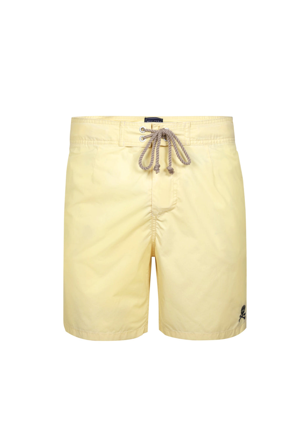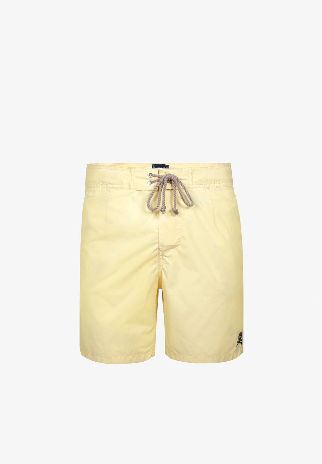 Traje de baño efecto lavado confeccionada en tejido de poliéster. Corte Regular Fit, cierre con cordón y velcro. Detalle de calavera bordada en el bajo.