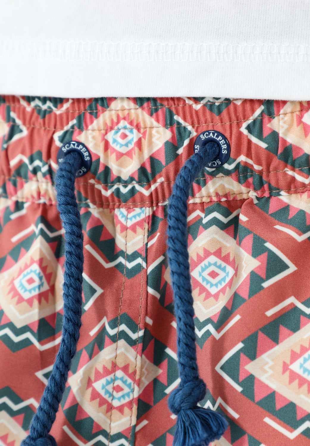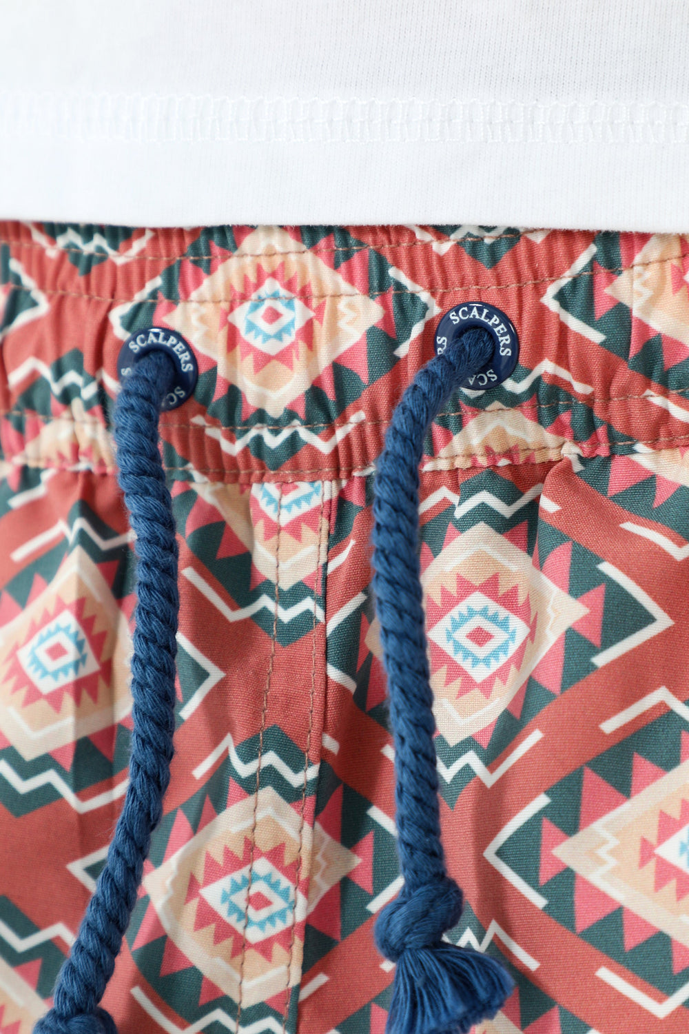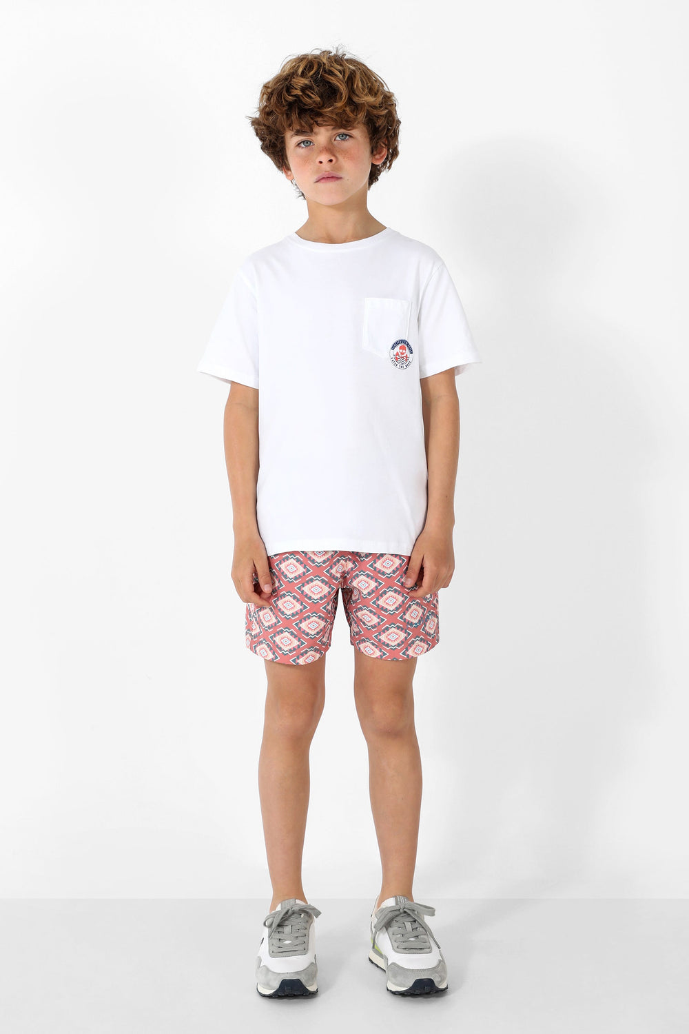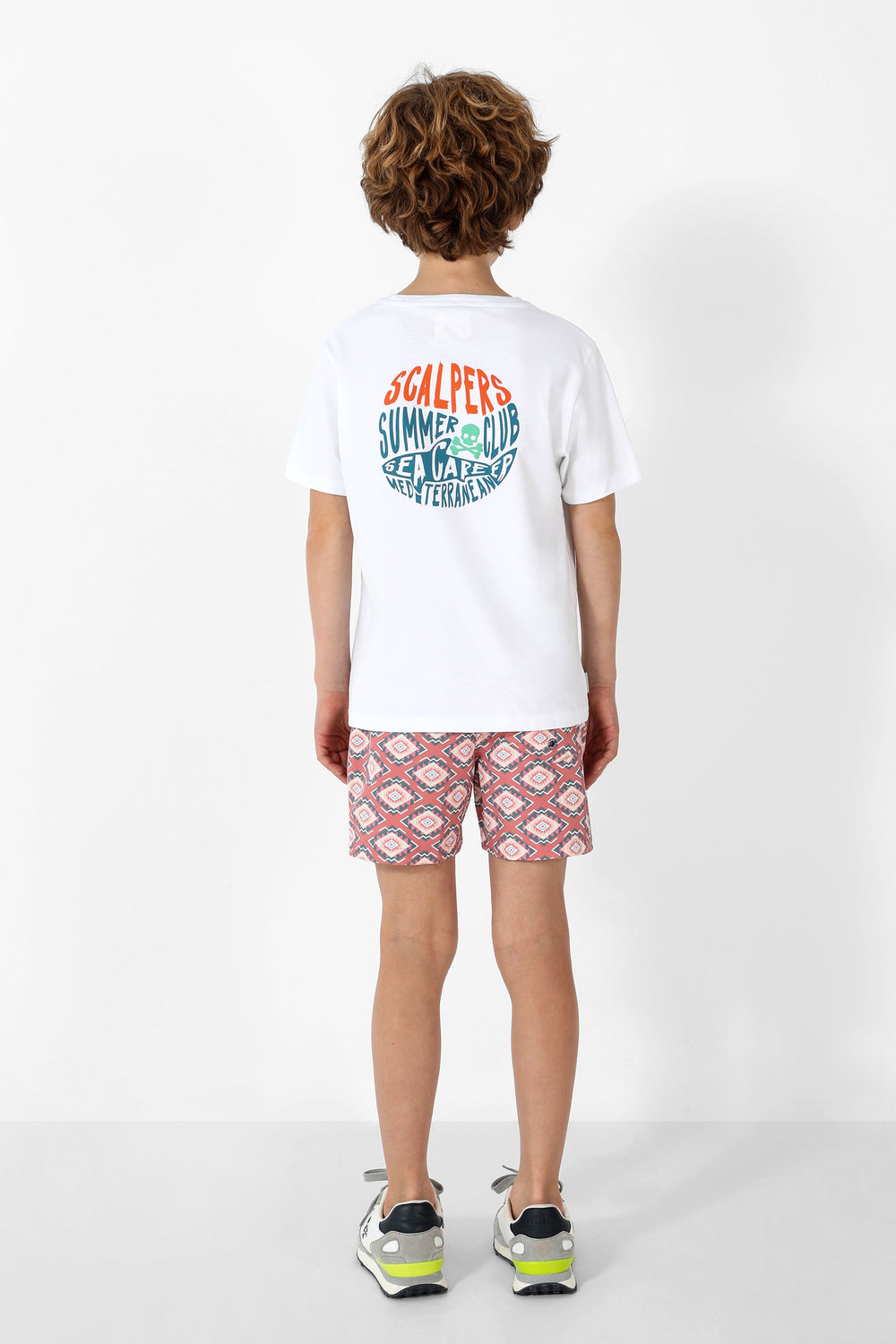 Bañador con estampado de ikat confeccionado en tejido de poliéster. Corte Regular Fit, cierre con cordón y detalle de calavera engomada en el bajo.