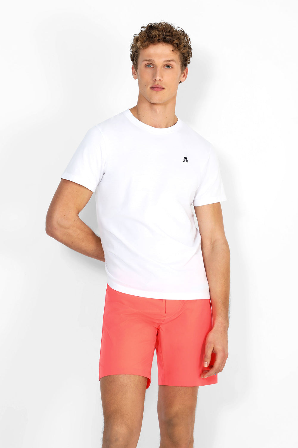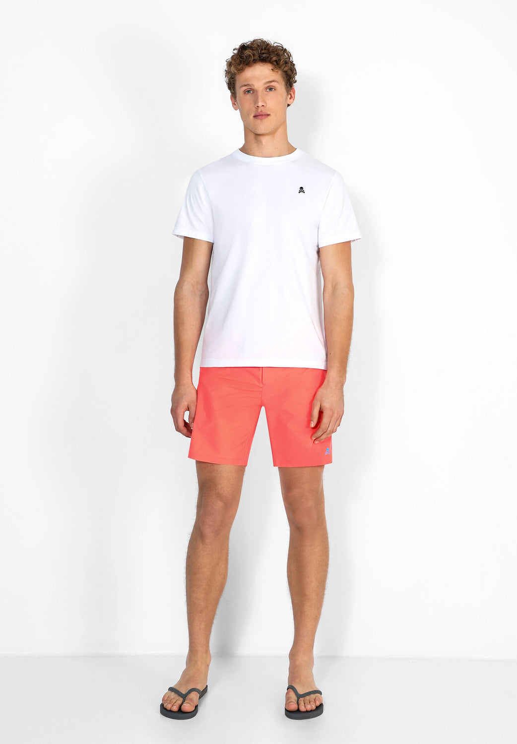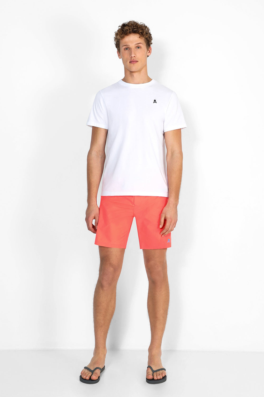 Bañador confeccionado en tejido de poliéster. Corte Regular Fit, cierre con lazada y velcro y bolsillo con cremallera. Detalle de calavera a contraste.