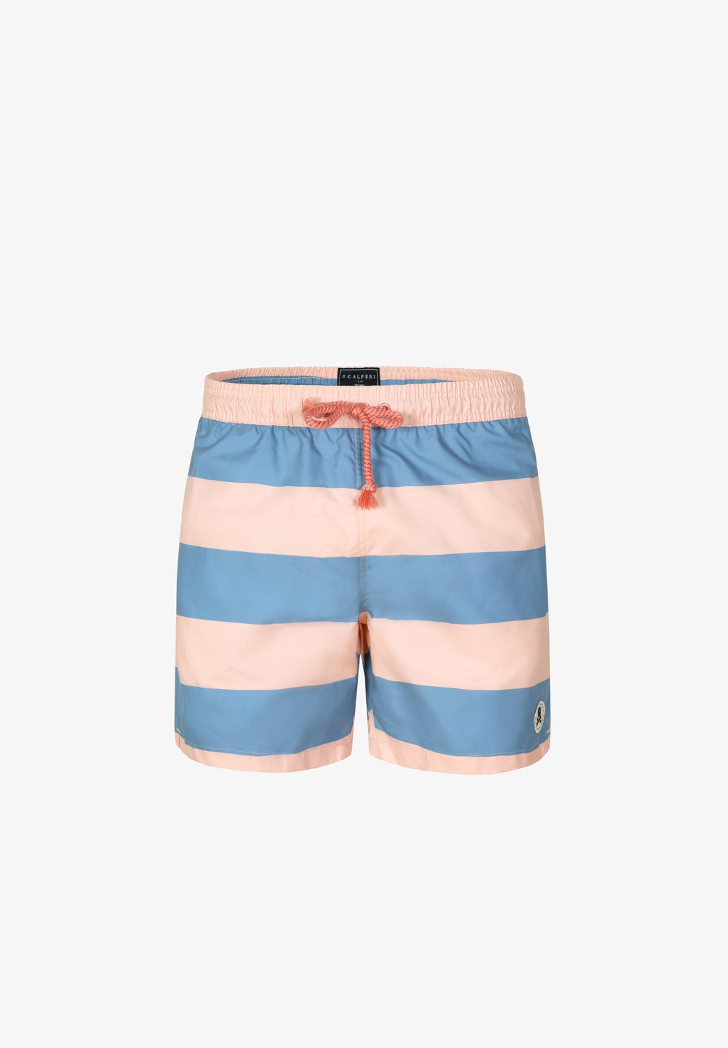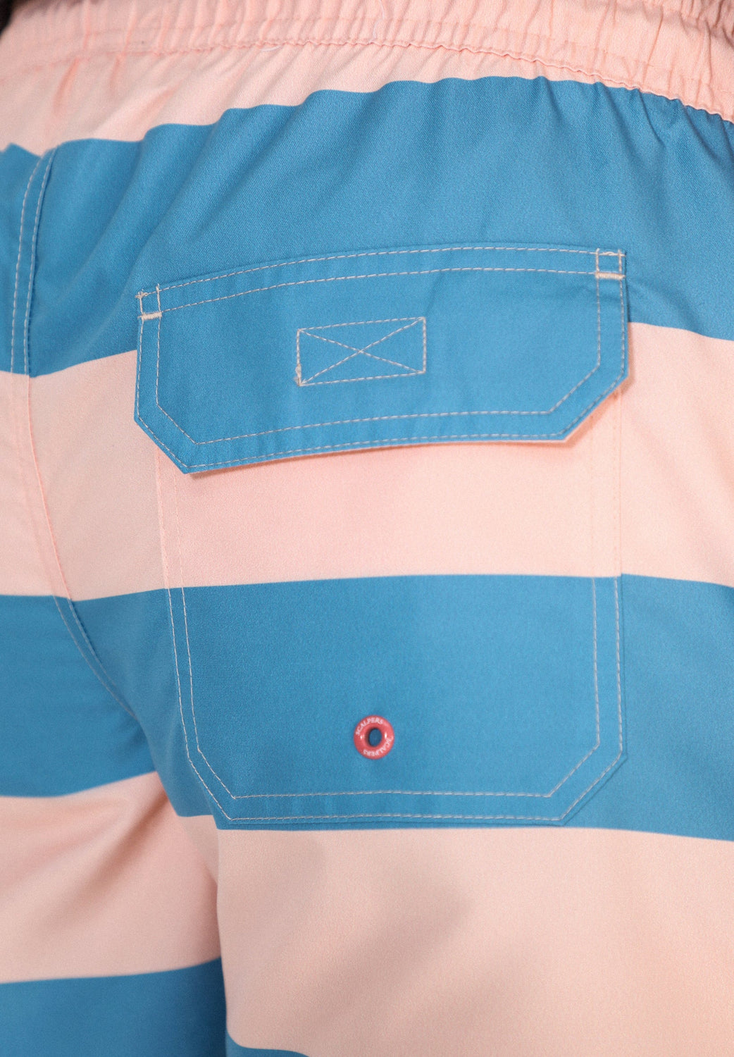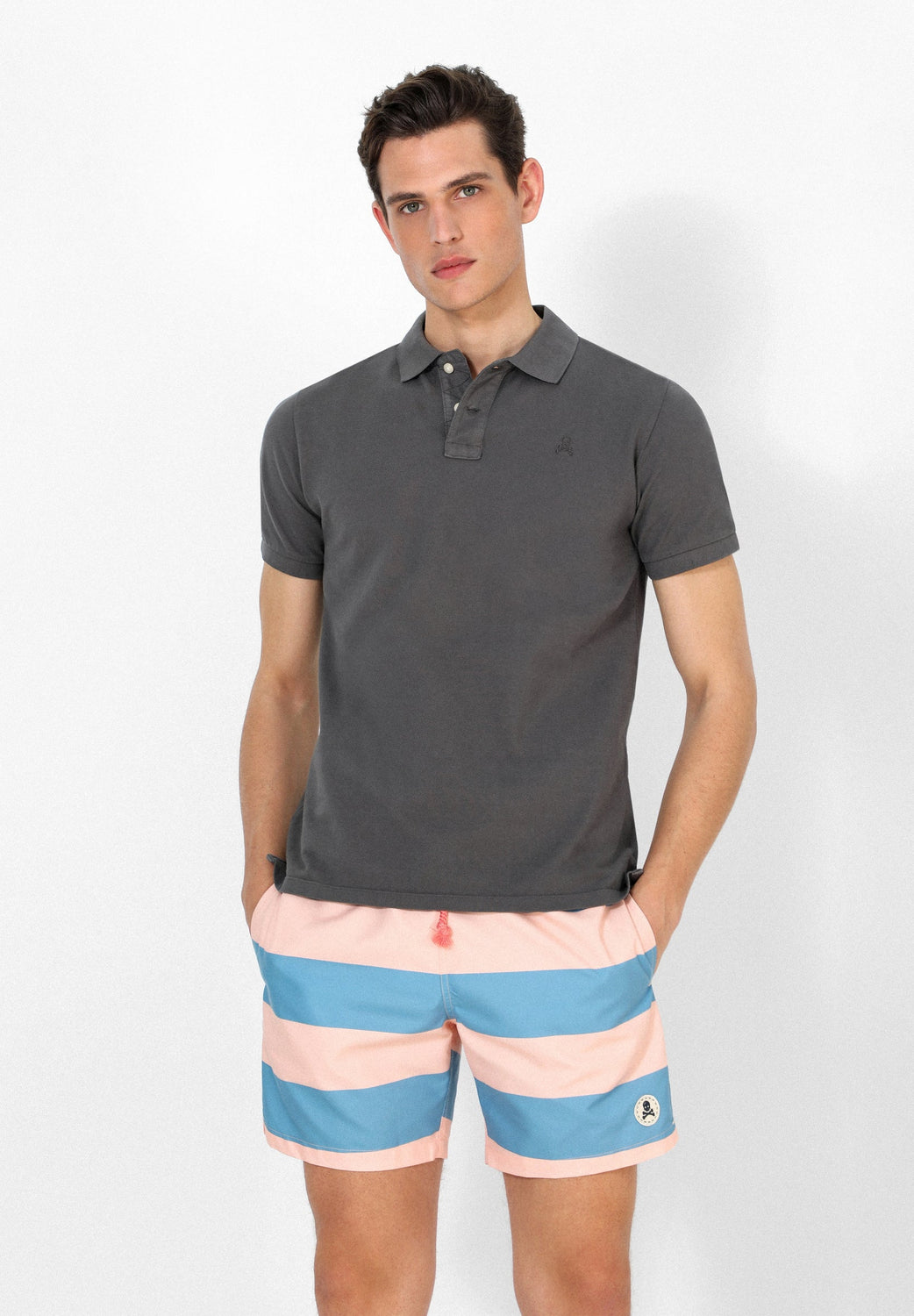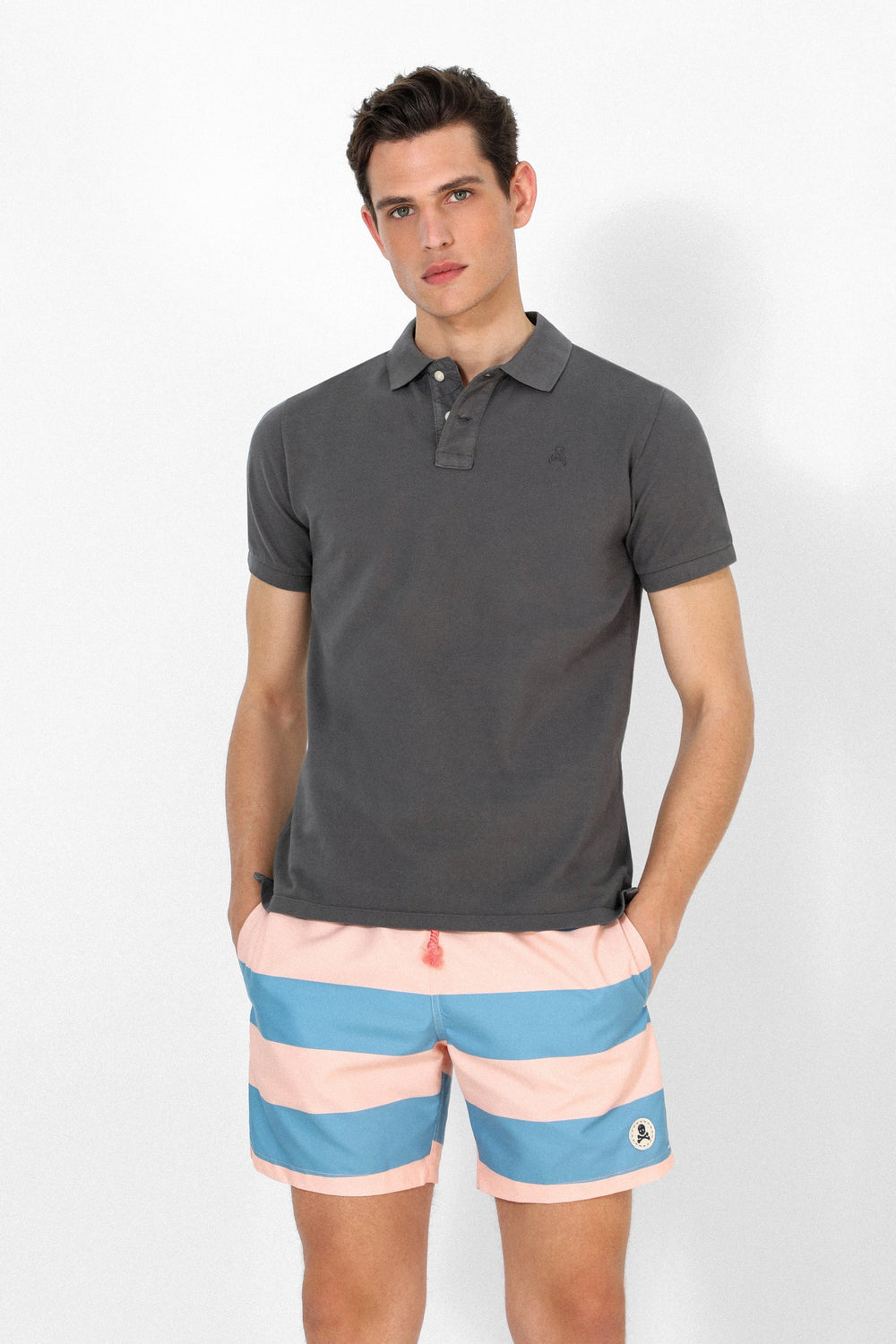 Bañador con estampado de rayas. Corte Regular Fit, cierre con cordón y cintura elástica. Bolsillos laterales y trasero y detalle de parche de calavera.